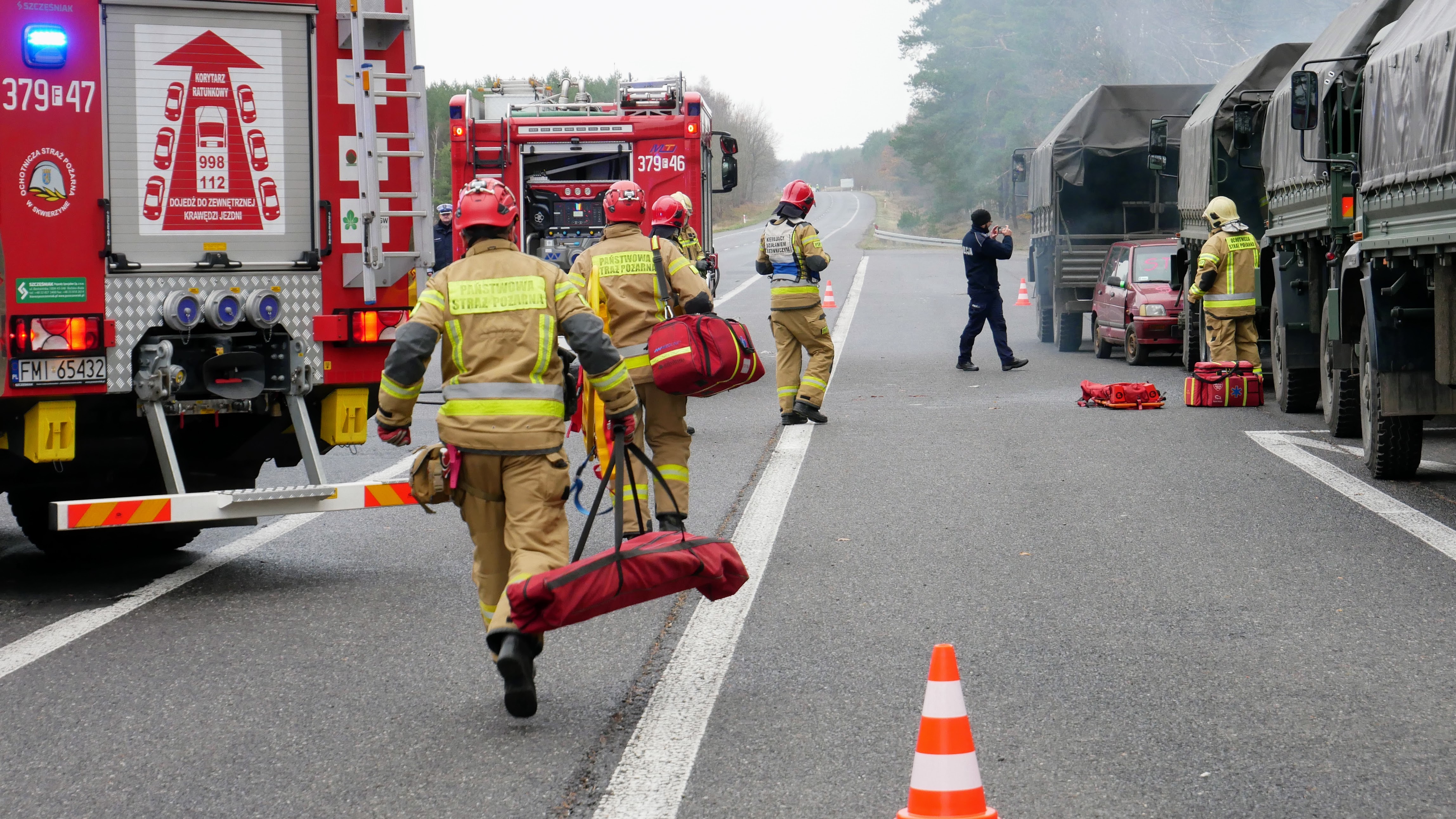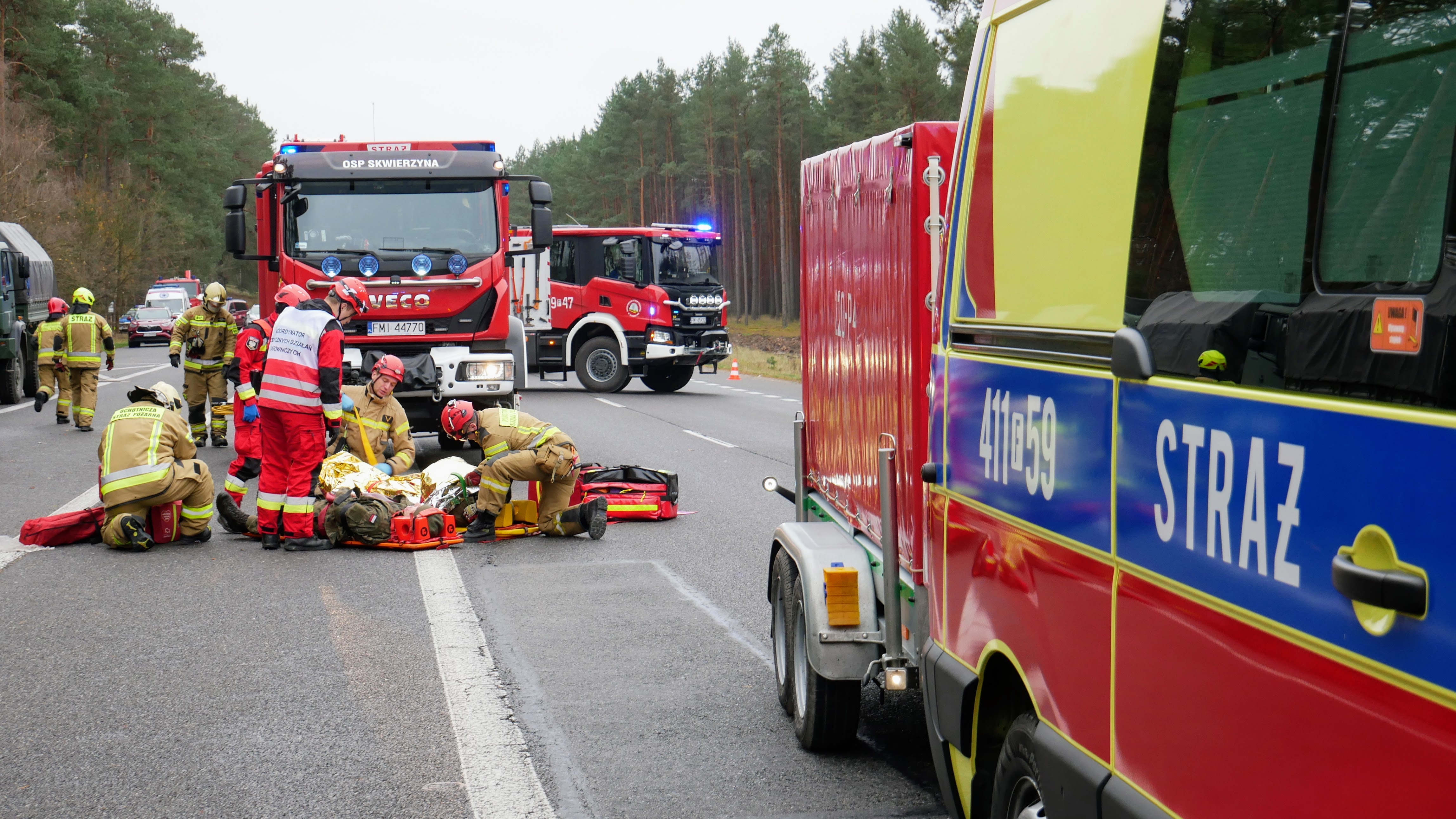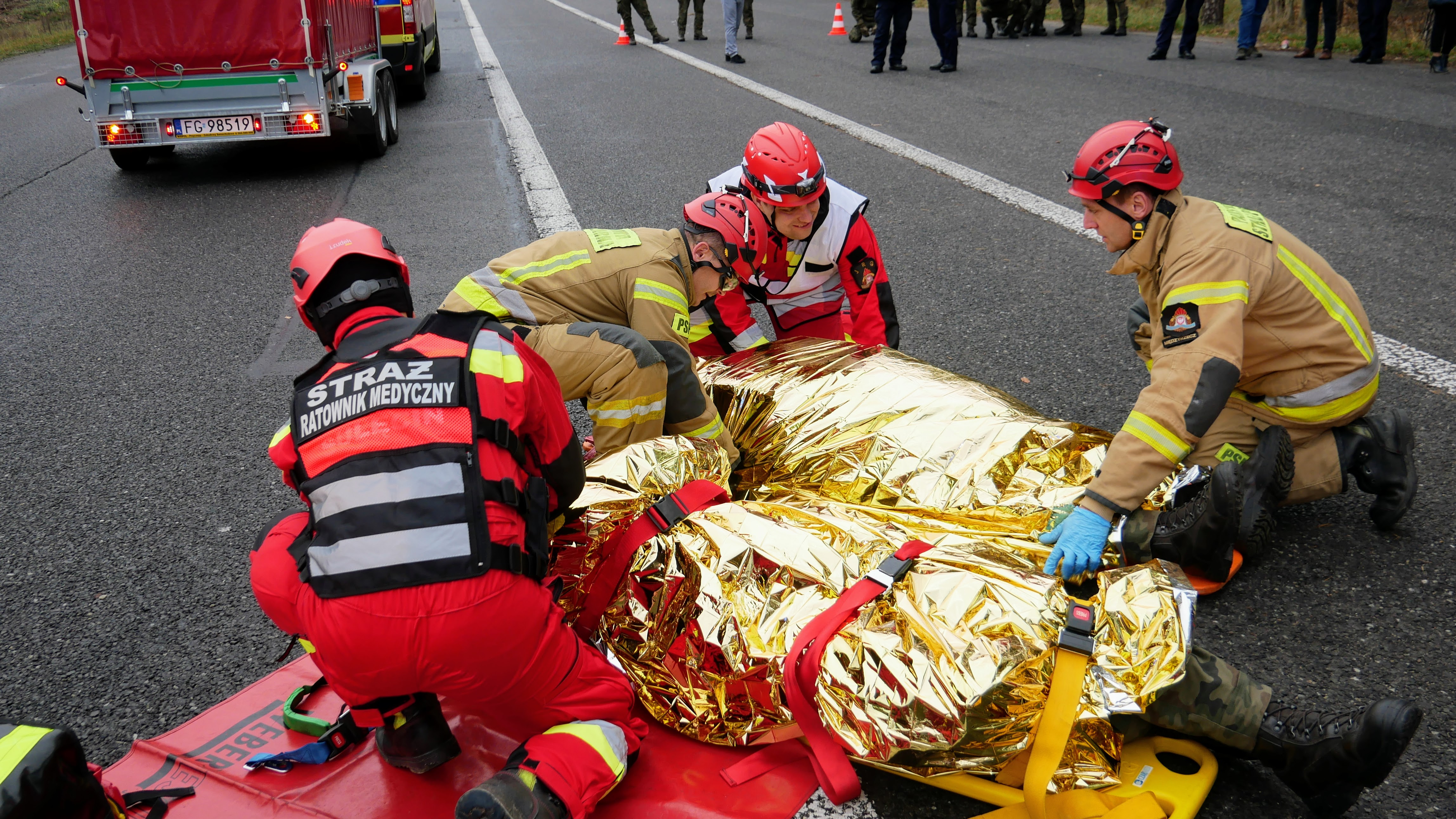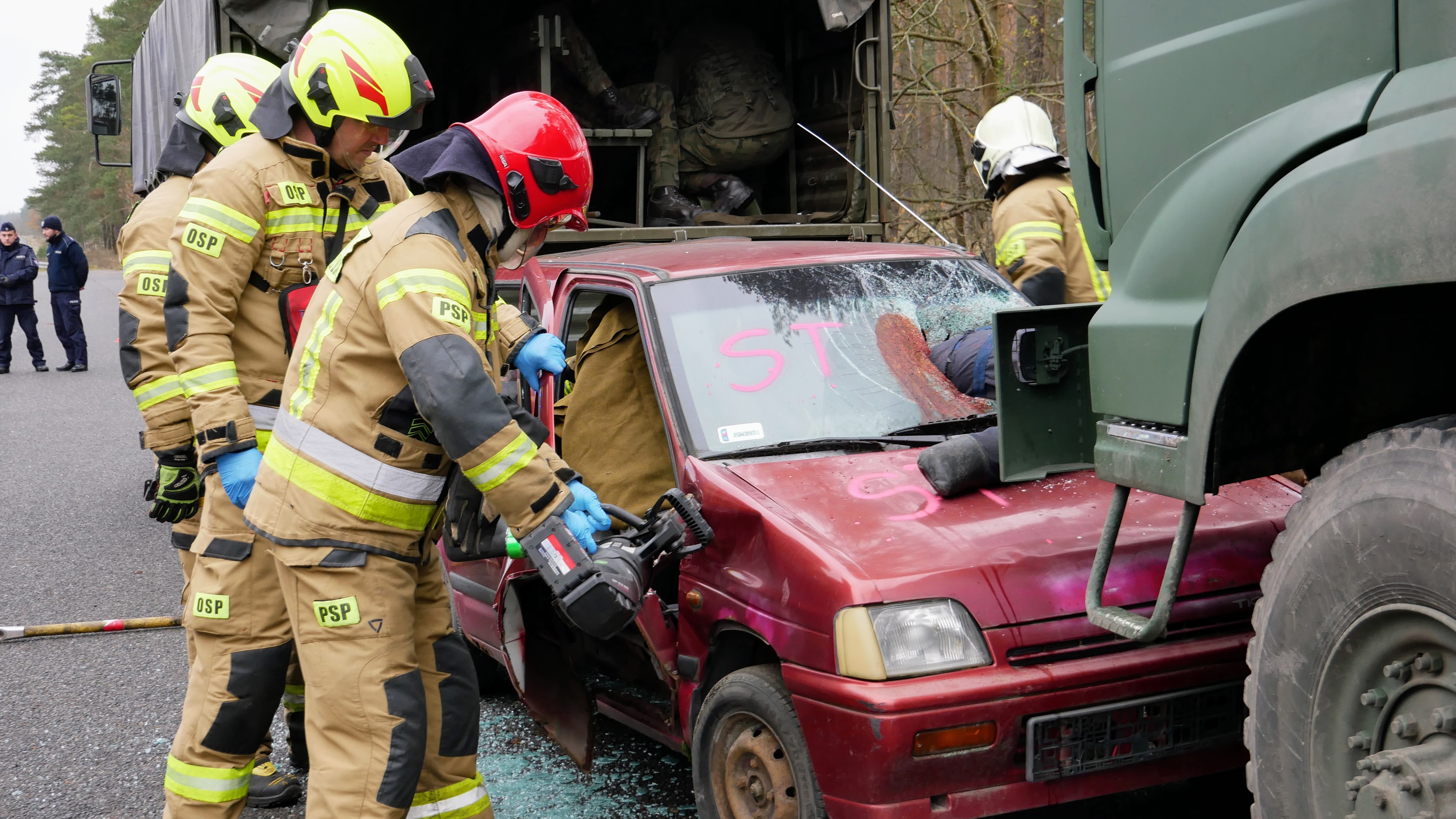 W drugim dniu, scenariusz zakładał wypadek komunikacyjny z udziałem samochodu osobowego i kolumny wojskowej transportującej żołnierzy. W wyniku zdarzenia doszło do pożaru jednego z pojazdów wojskowych. Przybyli na miejsce strażacy mieli za zadanie opanowanie pożaru, ewakuację osób poszkodowanych z pojazdów oraz zabezpieczenie medyczne rannych uczestników zdarzenia.