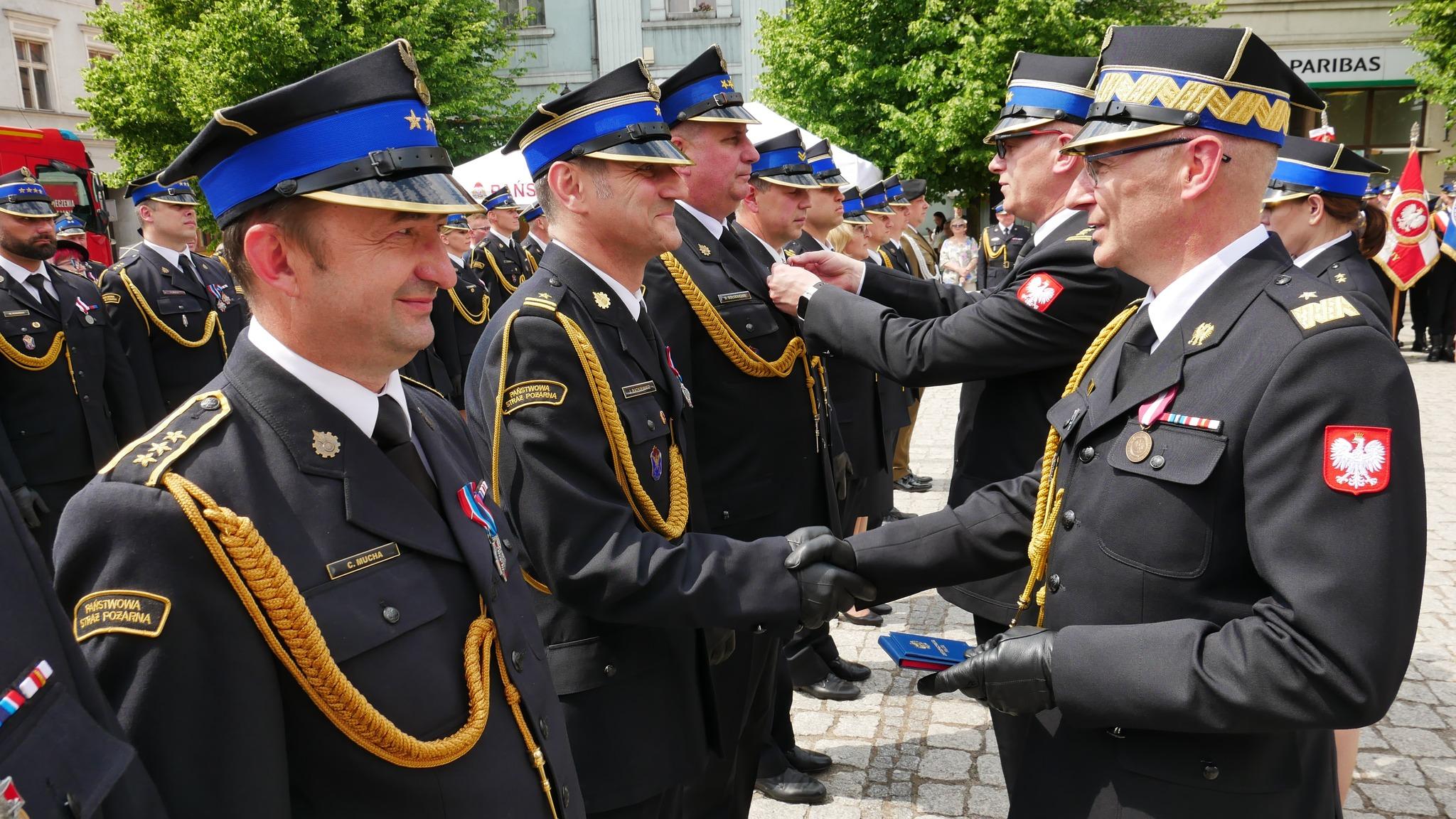 Dziękuję Wam za ciężką, rzetelną i pełną zaangażowania pracę i służbę. To dzięki Waszej determinacji wiedzy, umiejętnościom i wzorowej postawie z sukcesem realizujemy wspólnie zadania służbowe, a Lubuszanie mogą czuć się bezpiecznie. Jestem dumny, że w naszych jednostkach jest tylu wspaniałych i oddanych służbie strażaków co potwierdzają liczne dzisiejsze odznaczenia, awanse i wyróżnienia.” – powiedział do zgromadzonych na międzyrzeckim rynku strażaków nadbryg. Janusz Drozda.