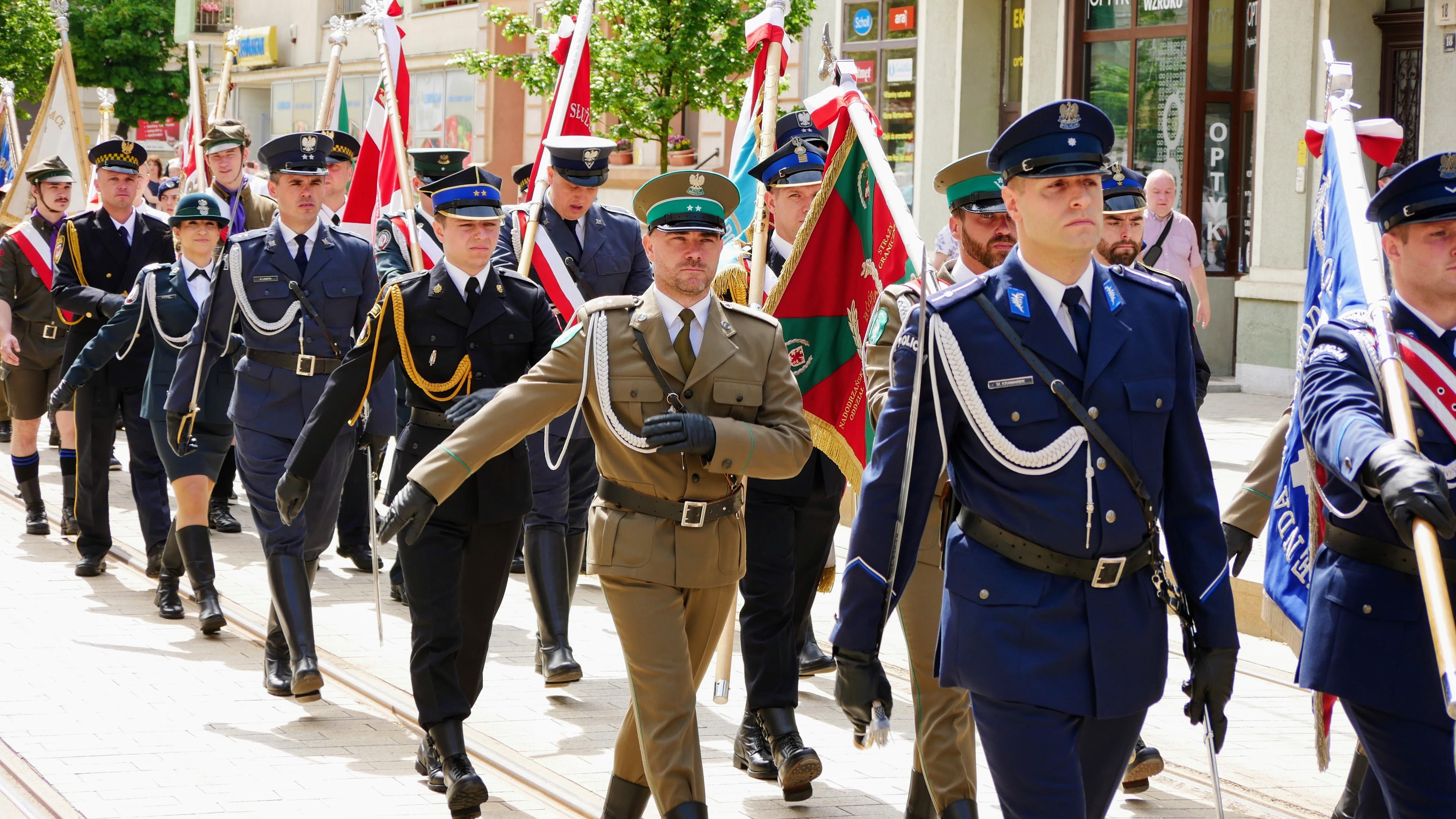 Uroczysty apel z ceremoniałem wojskowym na Placu Grunwaldzkim poprzedził przemarsz uczestników obchodów ulicami miasta.