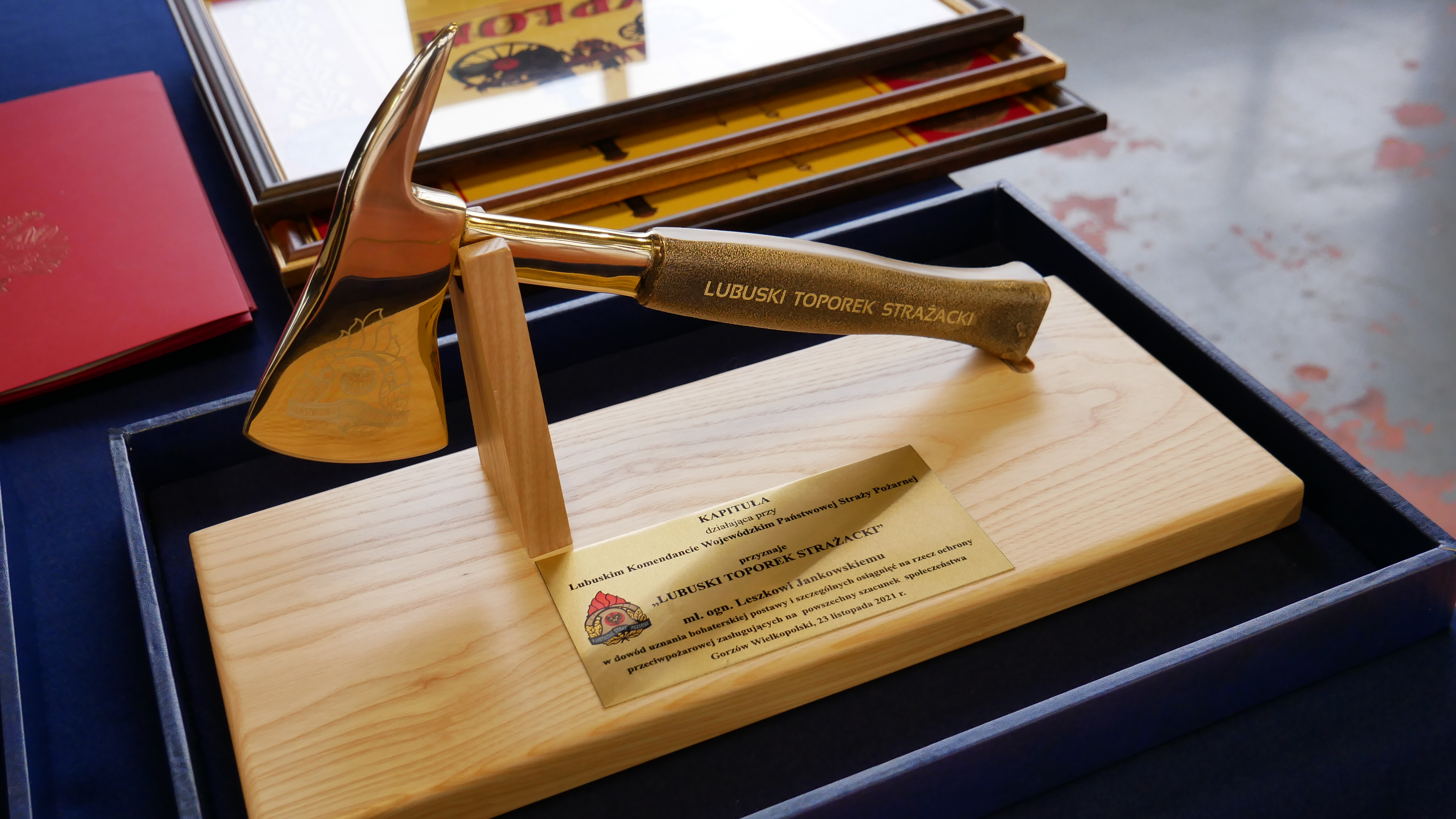 Funkcjonariusza mł. ogn. Leszka Jankowskiego z Komendy Powiatowej PSP w Strzelcach Kraj. uhonorowano 4. Lubuskim Toporkiem Strazackim. Jest to specjalne wyróznienie lubuskiego komendanta wojewódzkiego PSP za bohaterska postawę w ratowaniu życia ludzkiego. Pan ogniomistrz bedąc świadkiem wypadku drogowego bez wahania przystąpił do pomocy i dzięki temu zostało uratowane życie.