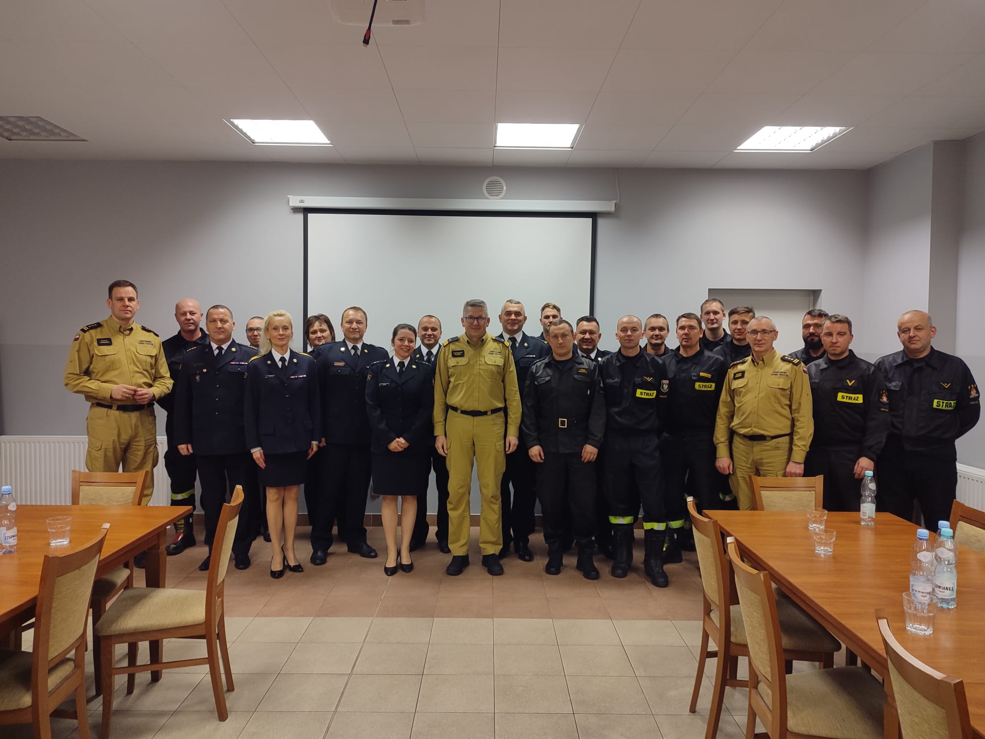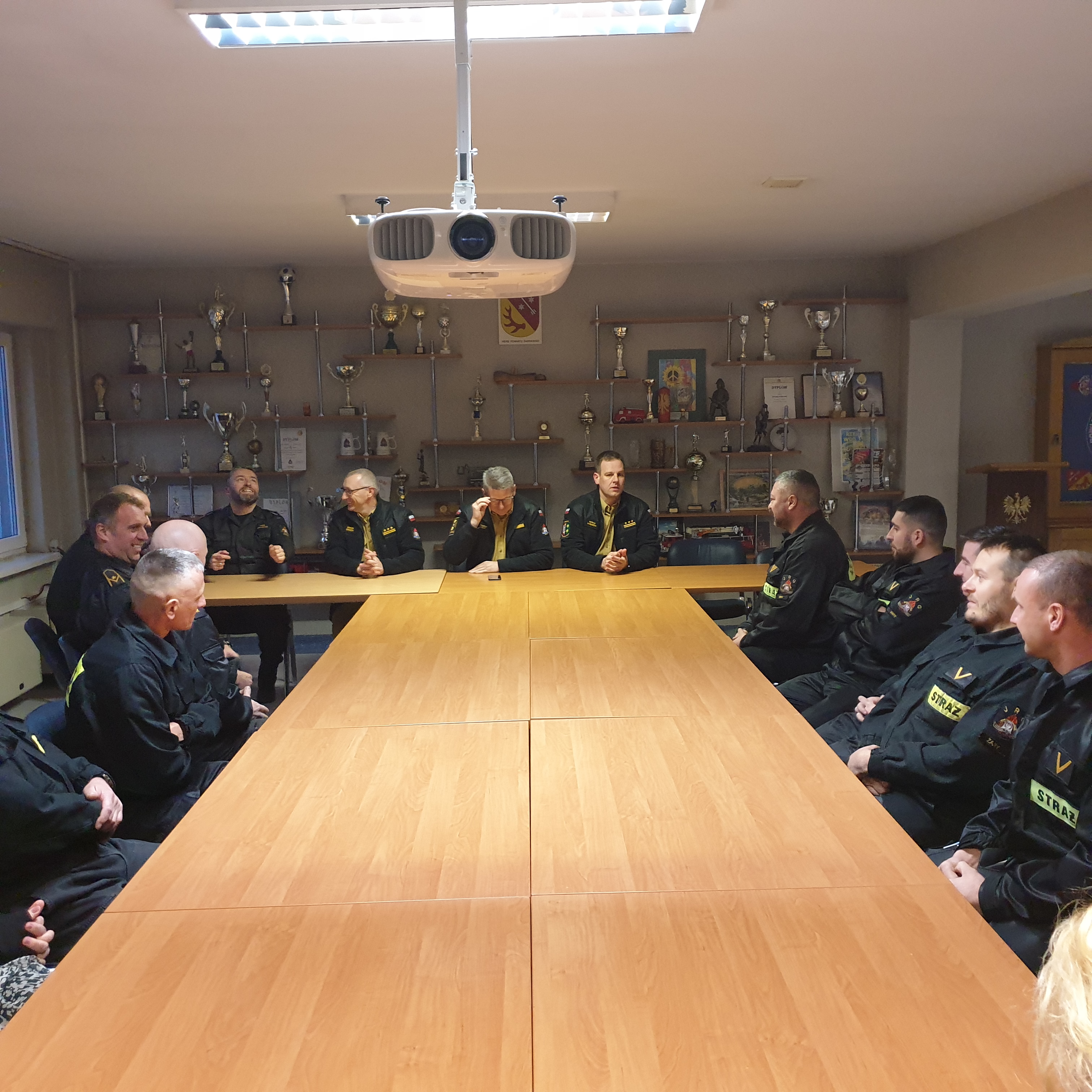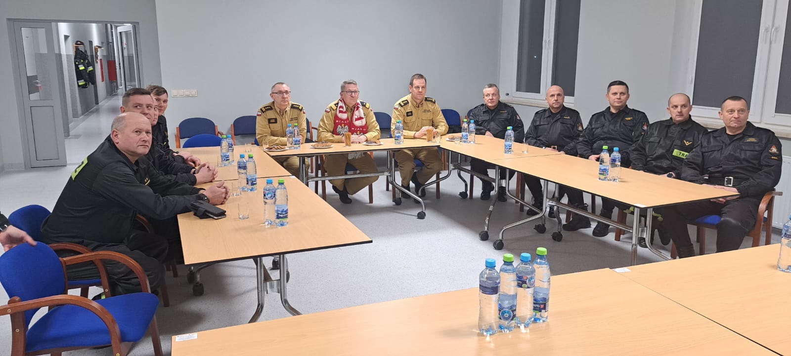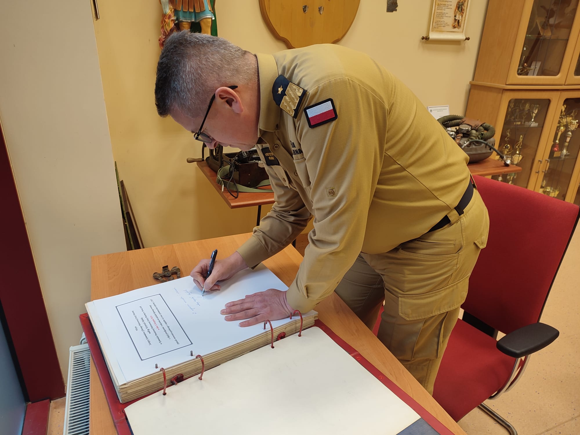 Po zakończonej uroczystości Zastępca Komendanta Głównego PSP nadbrygadier Krzysztof Hejduk spotkał się z funkcjonariuszami naszej Komendy w celu zapoznania się z bieżącymi sprawami i przekazał informacje dotyczące działalności Komendy Głównej PSP oraz kierunkami rozwoju naszej formacji, a następnie odwiedził wraz z Lubuskim Komendantem Wojewódzkim, st. bryg. Patrykiem Maruszakiem salę tradycji, gdzie dokonali wpisu w kronice Komendy.