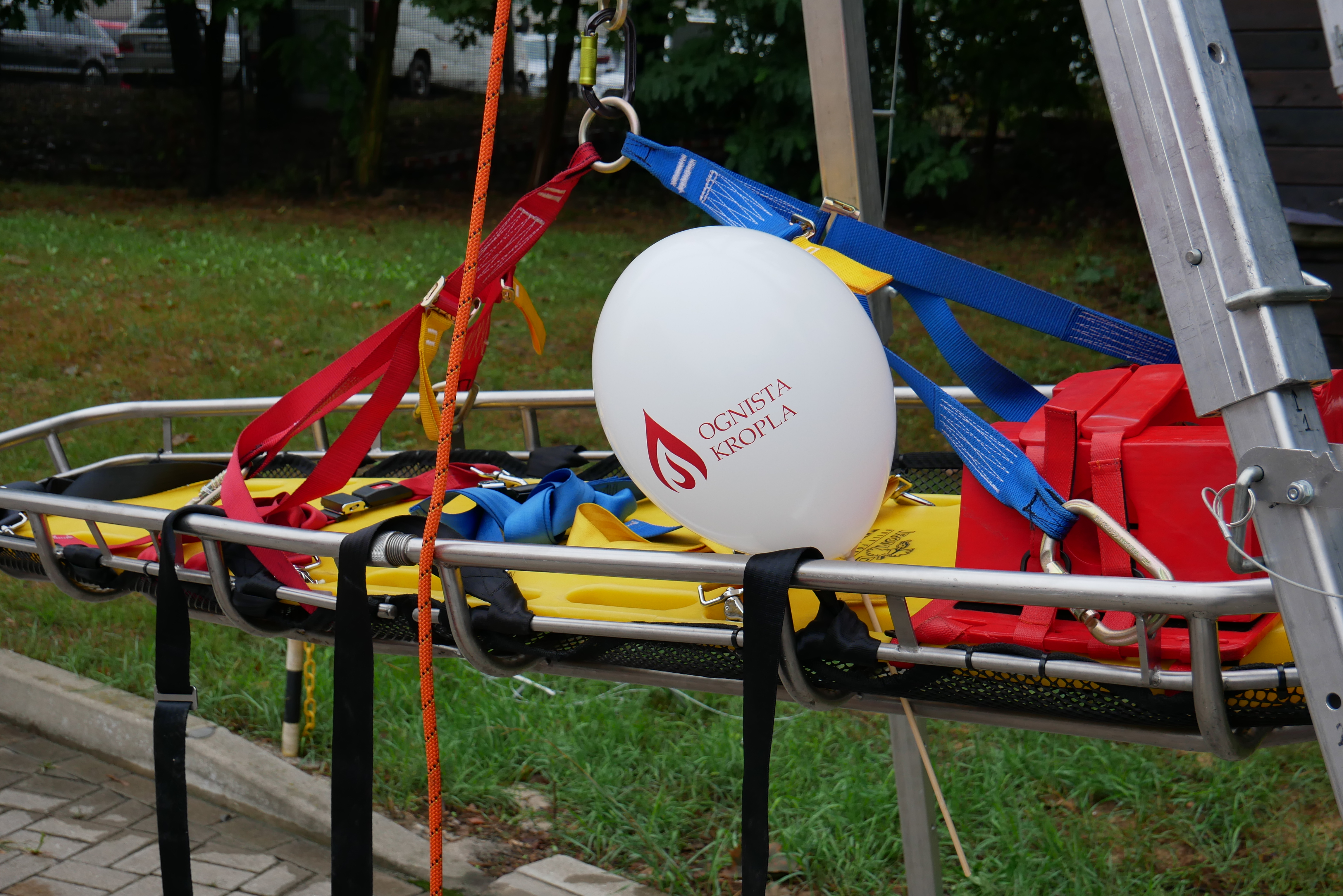Stanowisko Ratownictwa Wysokościowego wraz z ratownikami, gdzie można było zobaczyć pokaz na wspinalni oraz nauczyć się wiązania węzłów używanych przez strażaków ratowników.
