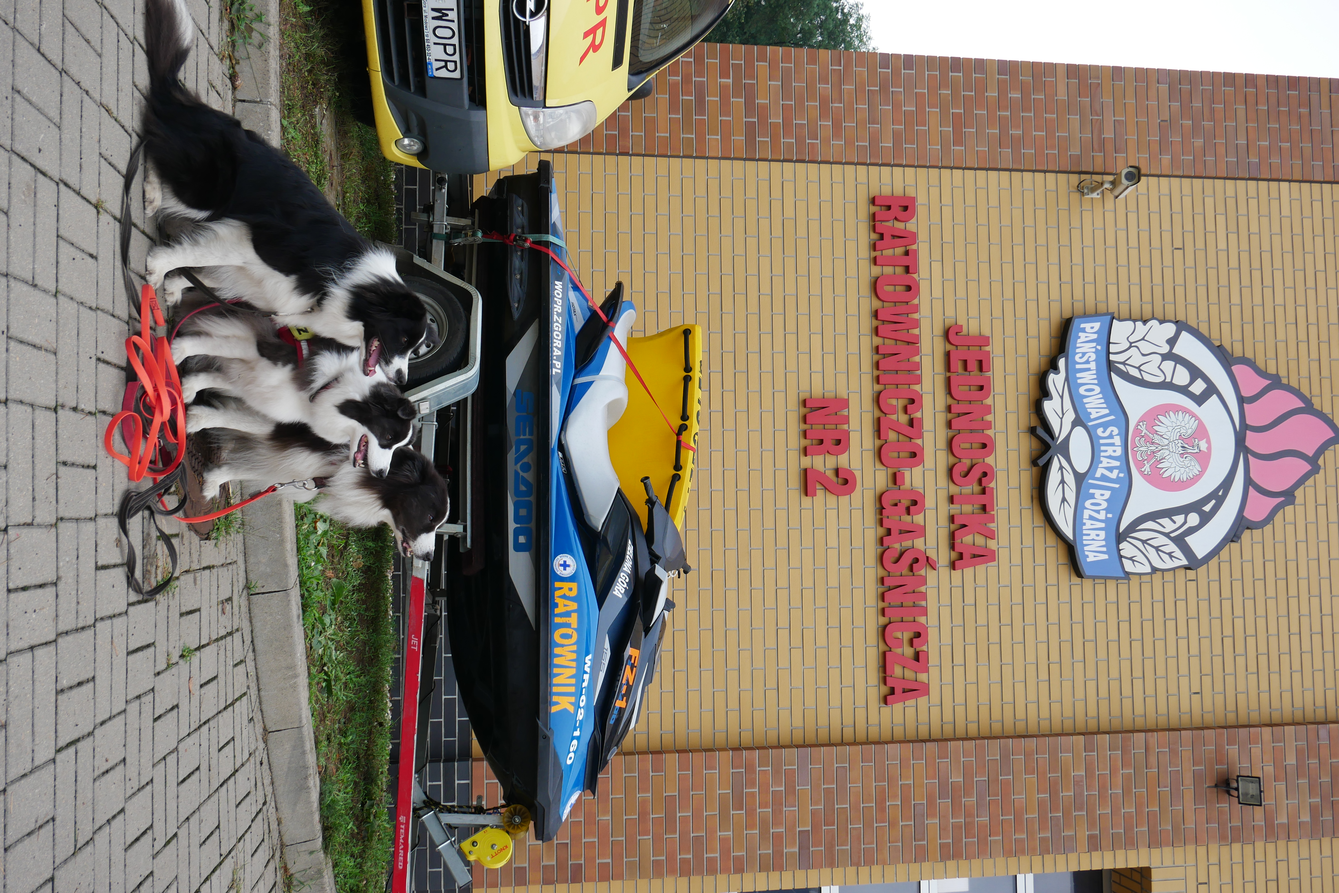 Stanowisko Grupy Poszukiwawczo- ratowniczej z jednostki Ochotniczej Straży Pożarnej Jarogniewice wraz z zaprezentowaniem 5 psów ratowniczych oraz drona wykorzystywanych przy działaniach.