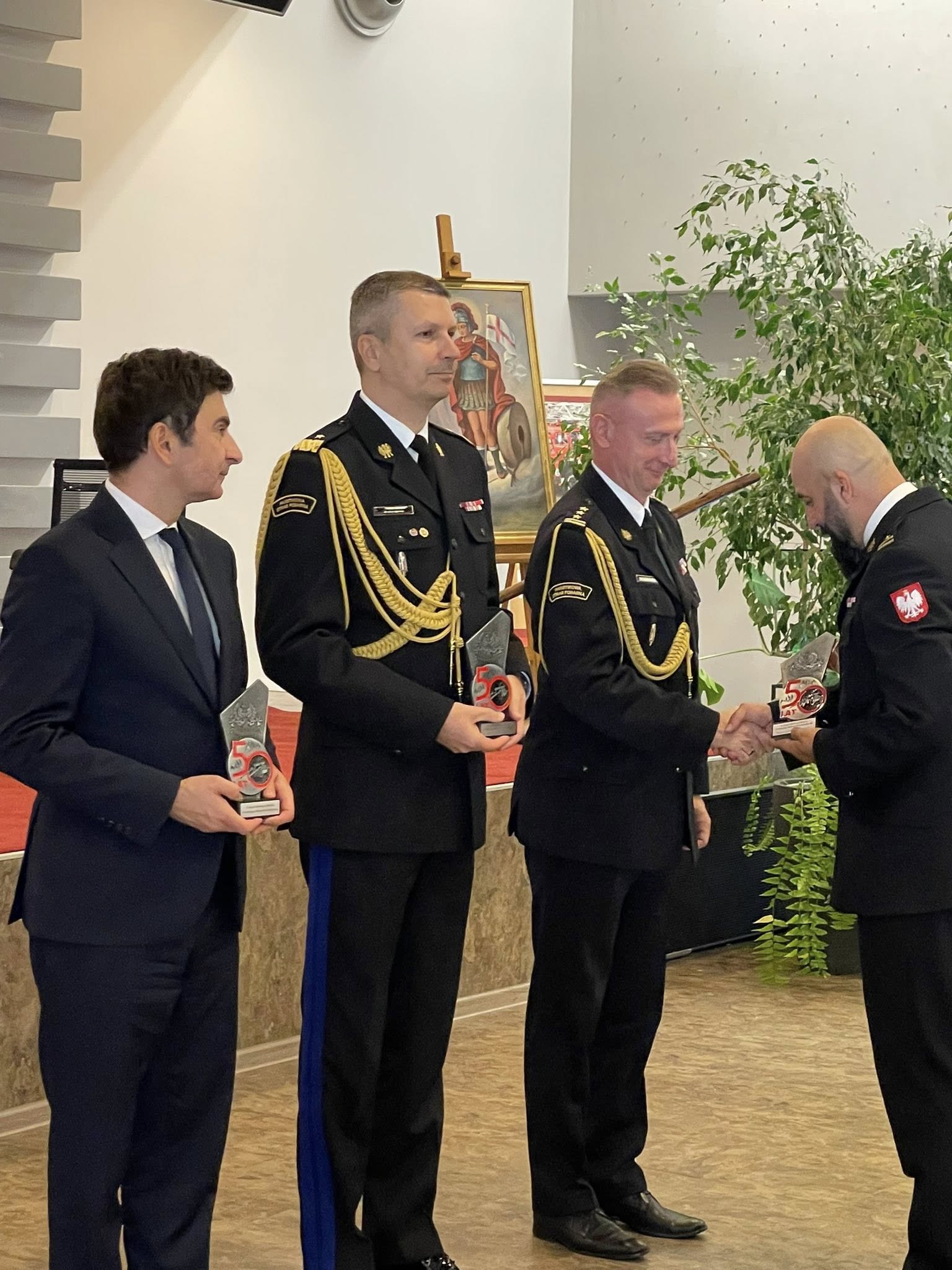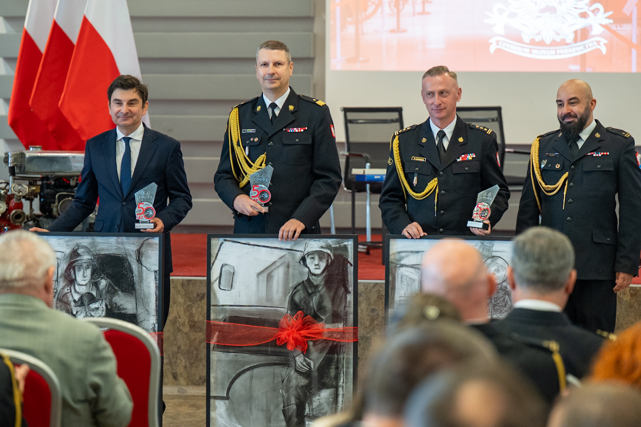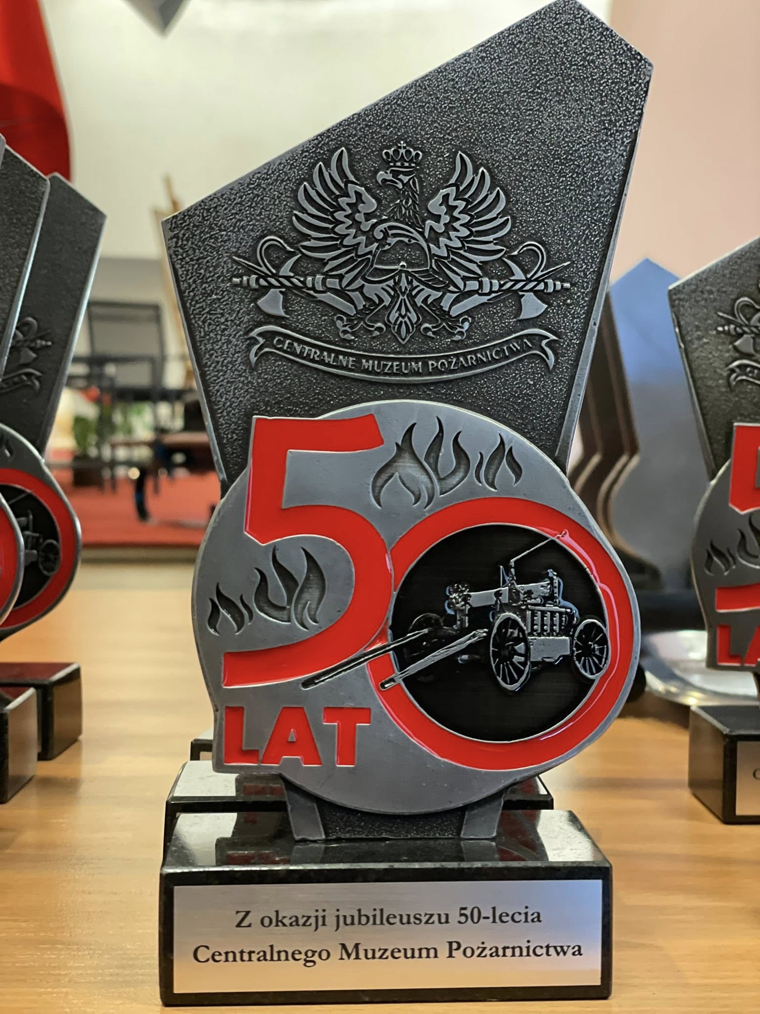 Z okazji 50 – lecia Centralnego Muzeum Pożarnictwa, dyrektor Muzeum - mł. bryg. dr inż. Artur Luzar, wręczył zaproszonym gościom oraz pracownikom Muzeum pamiątkowe statuetki.