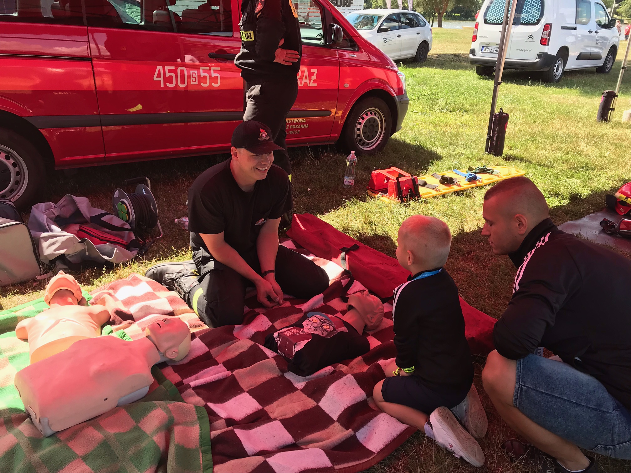 Na wszystkie dzieci przybyłe tego dnia nad jezioro pławnowickie czekało wiele atrakcji – każde z nich mogło wcielić się w rolę małego strażaka operując prądem wody, obejrzeć strażackie ubranie specjalne, czy wziąć udział w szkoleniu z zakresu pierwszej pomocy. Na każdego uczestnika czekały także strażackie gadżety i upominki.