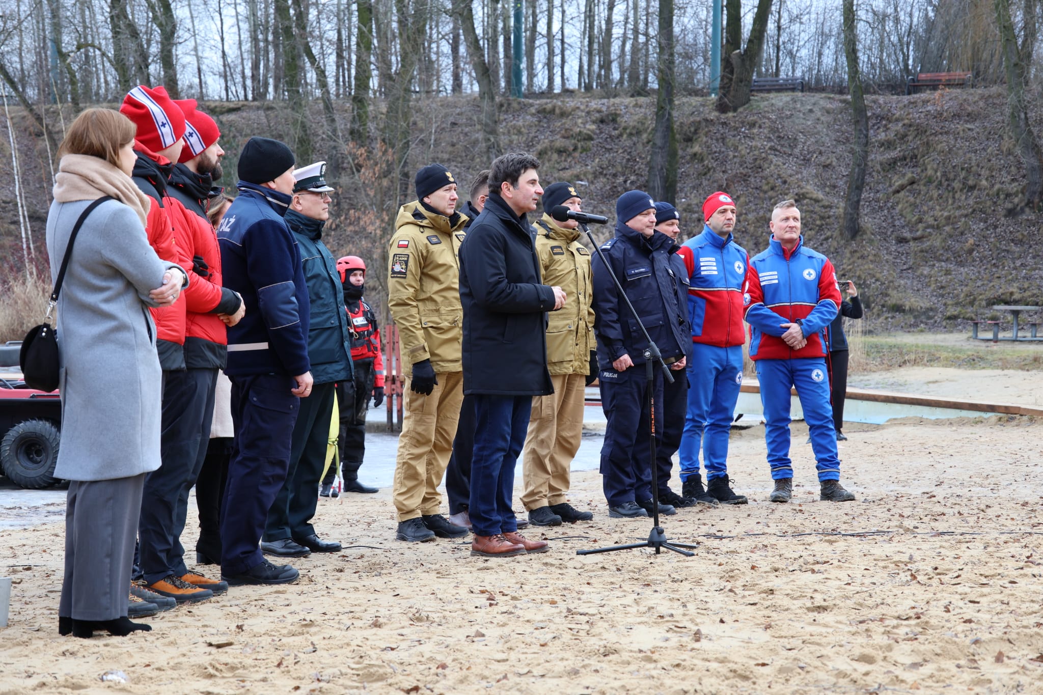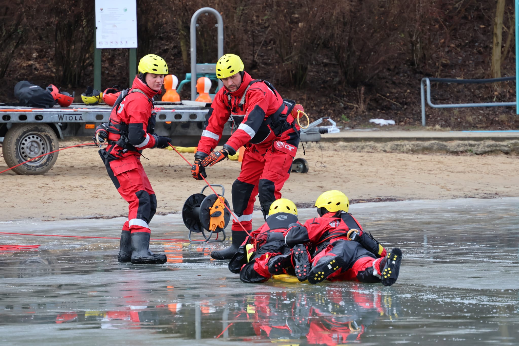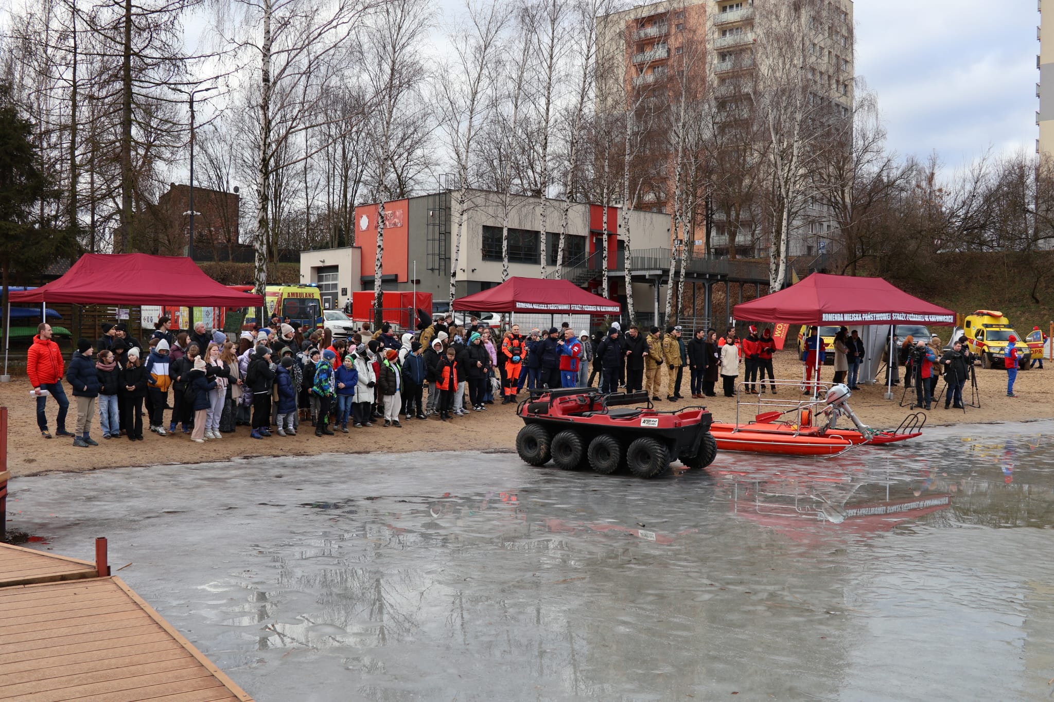 Przygotowany przez strażaków z JRG Szopienice PSP oraz ratowników WOPR. Zaprezentowano techniki działań na zamarzniętych akwenach oraz zasady udzielania pomocy osobom tonącym.