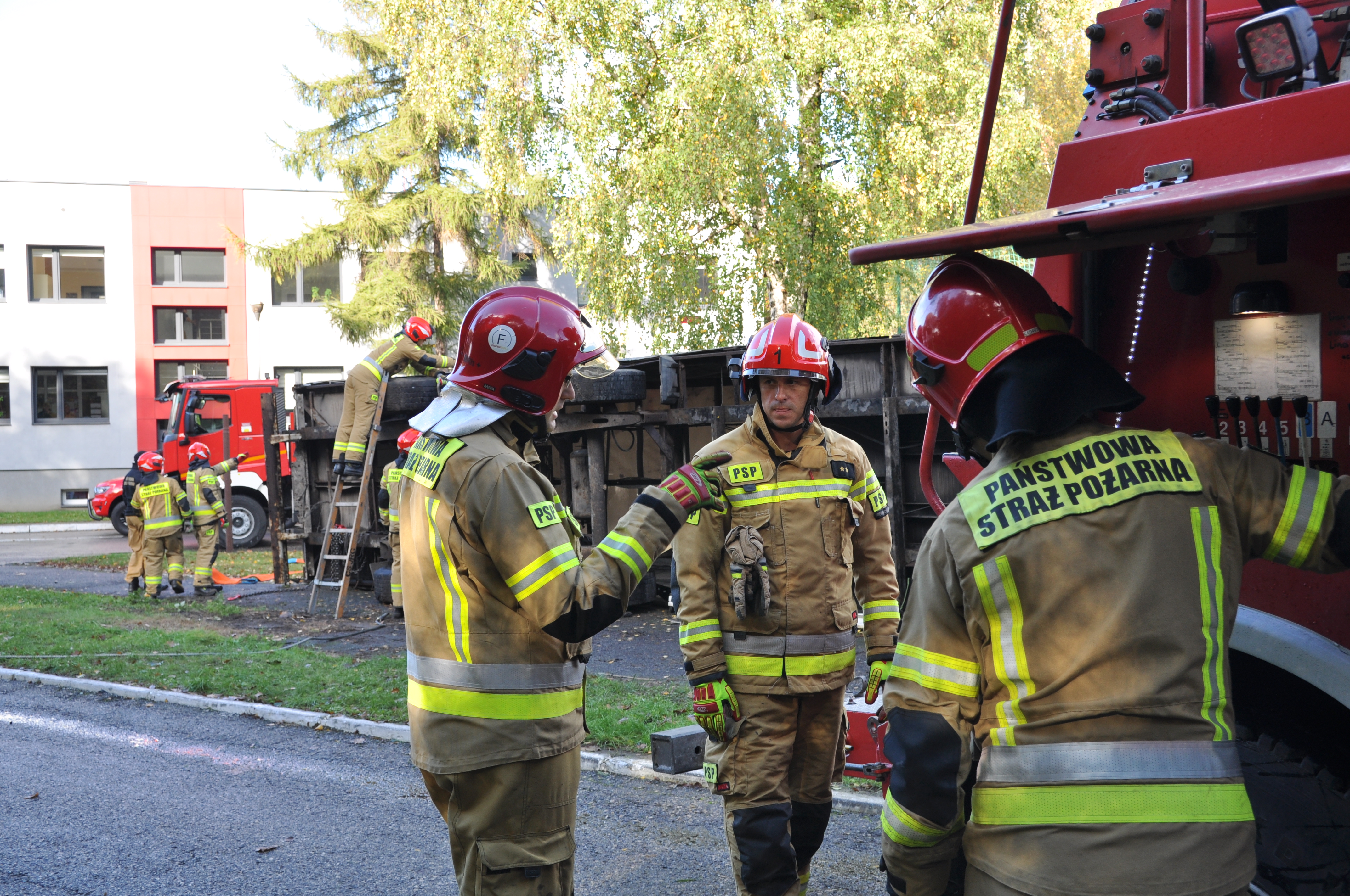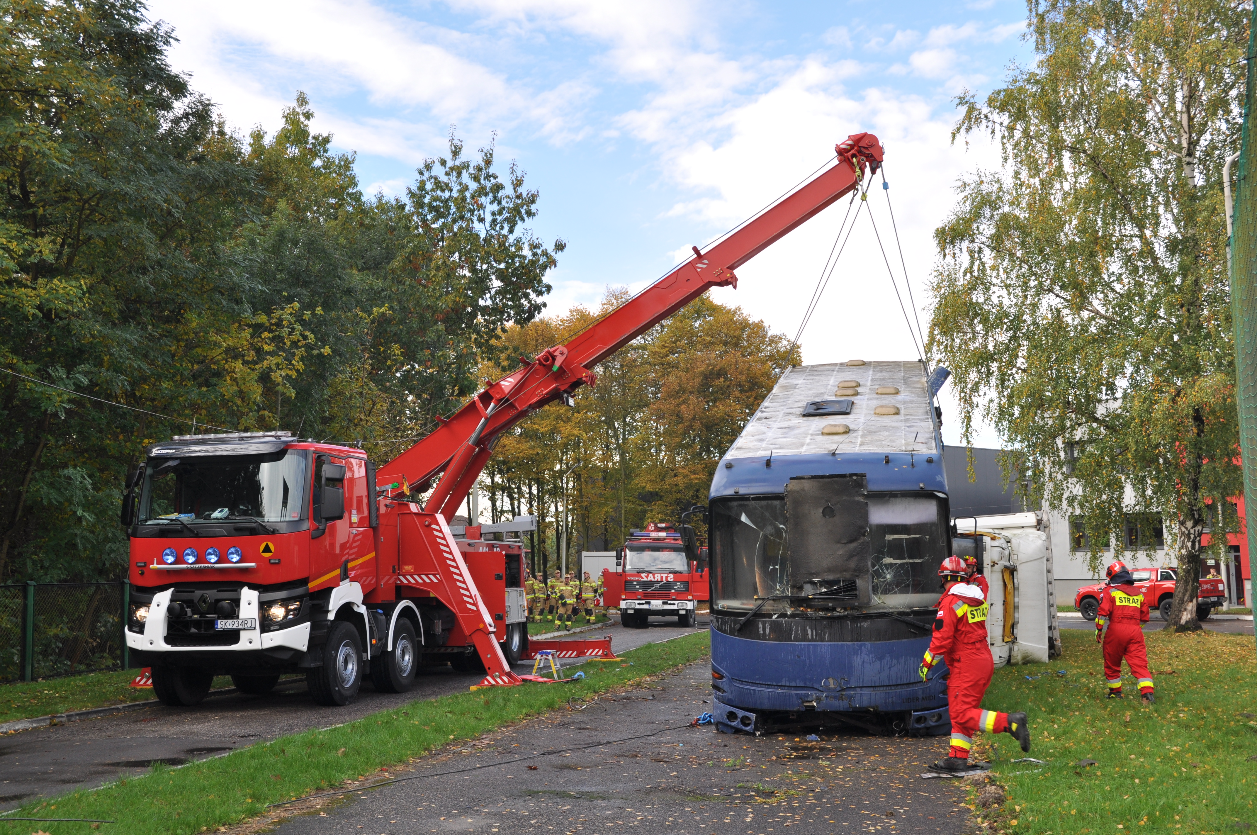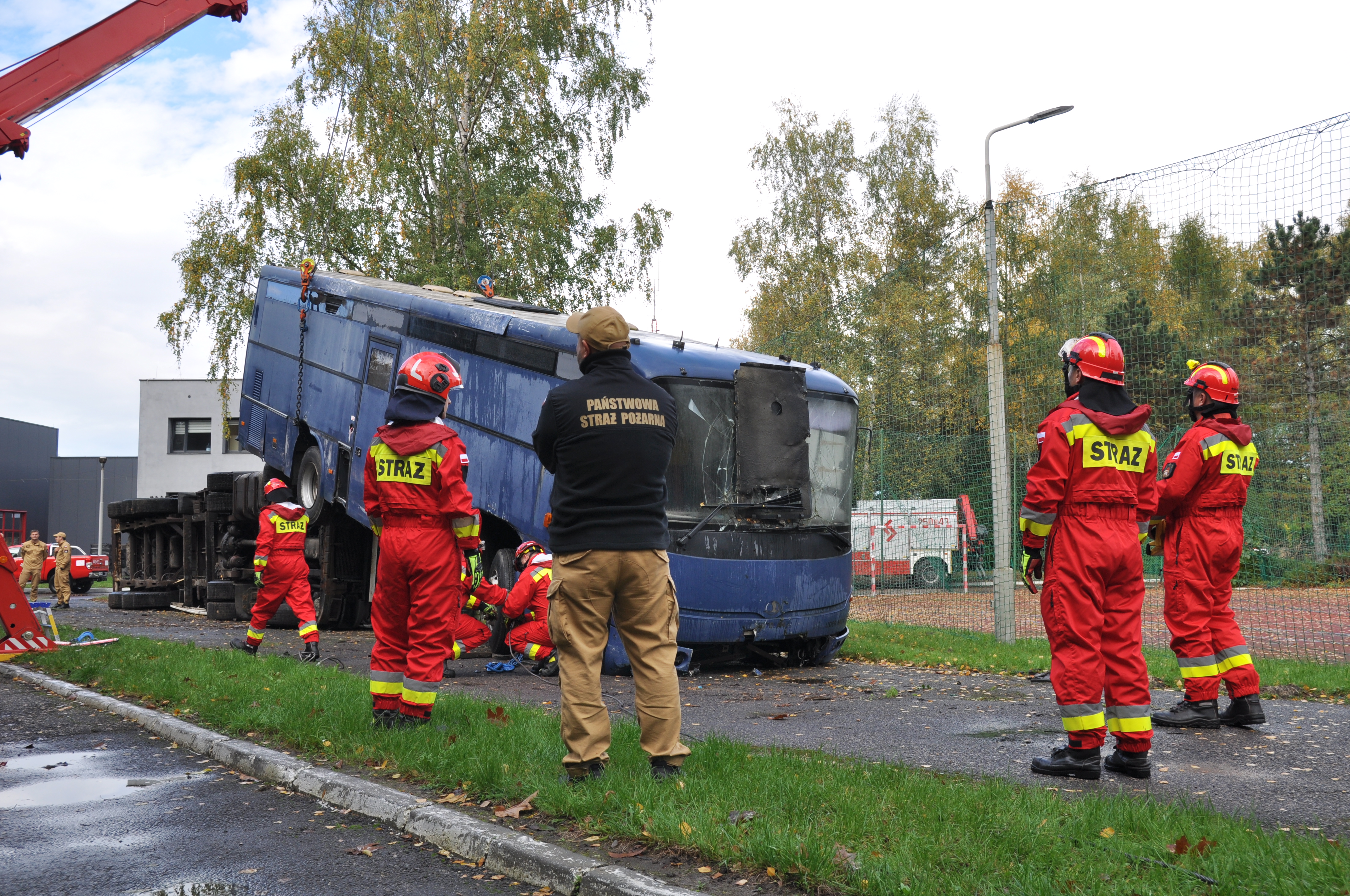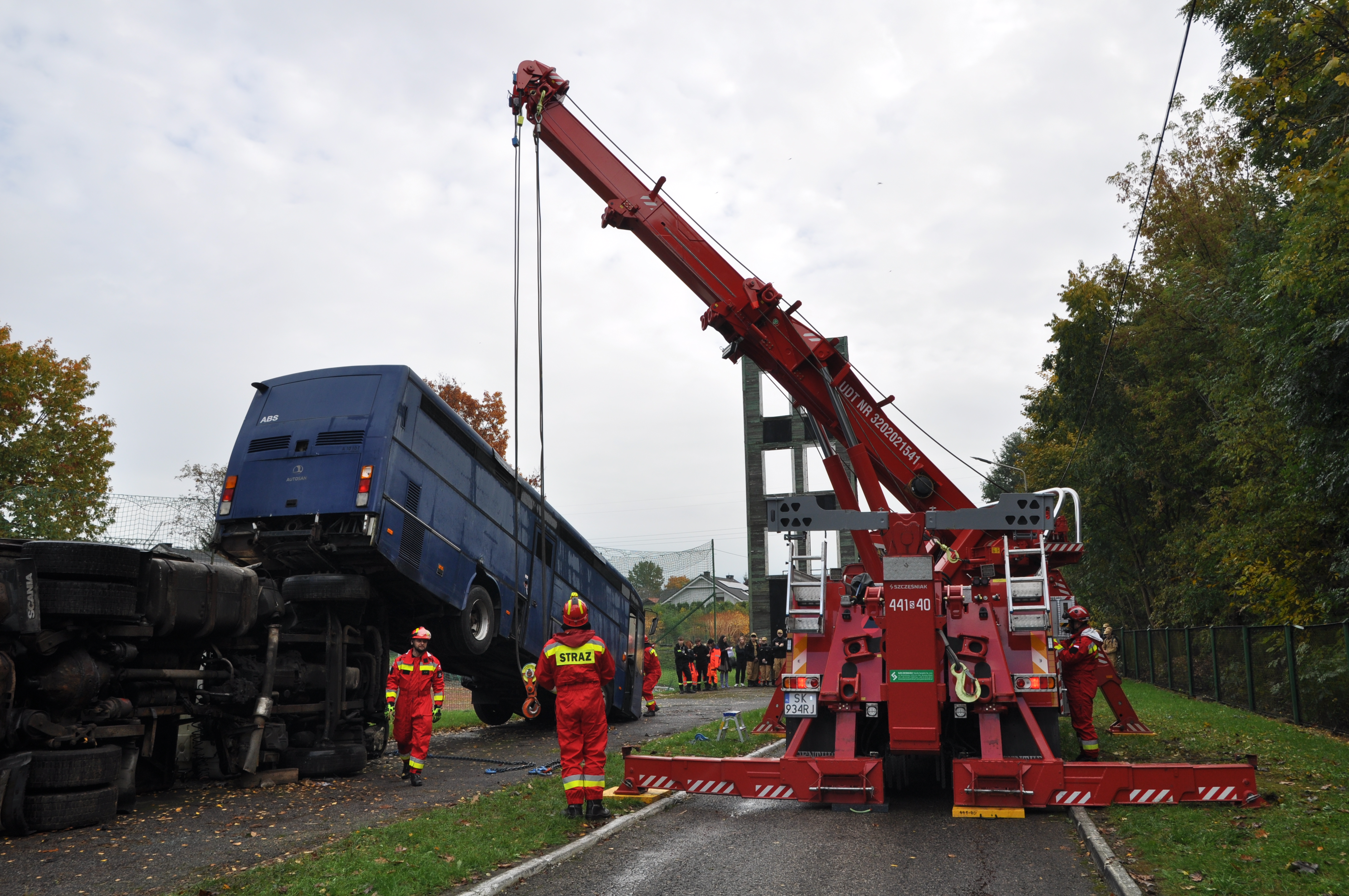 Założenie ćwiczenia polegało na doskonaleniu różnych technik stabilizacji i podnoszenia samochodów ciężarowych uczestniczących w wypadkach komunikacyjnych.
