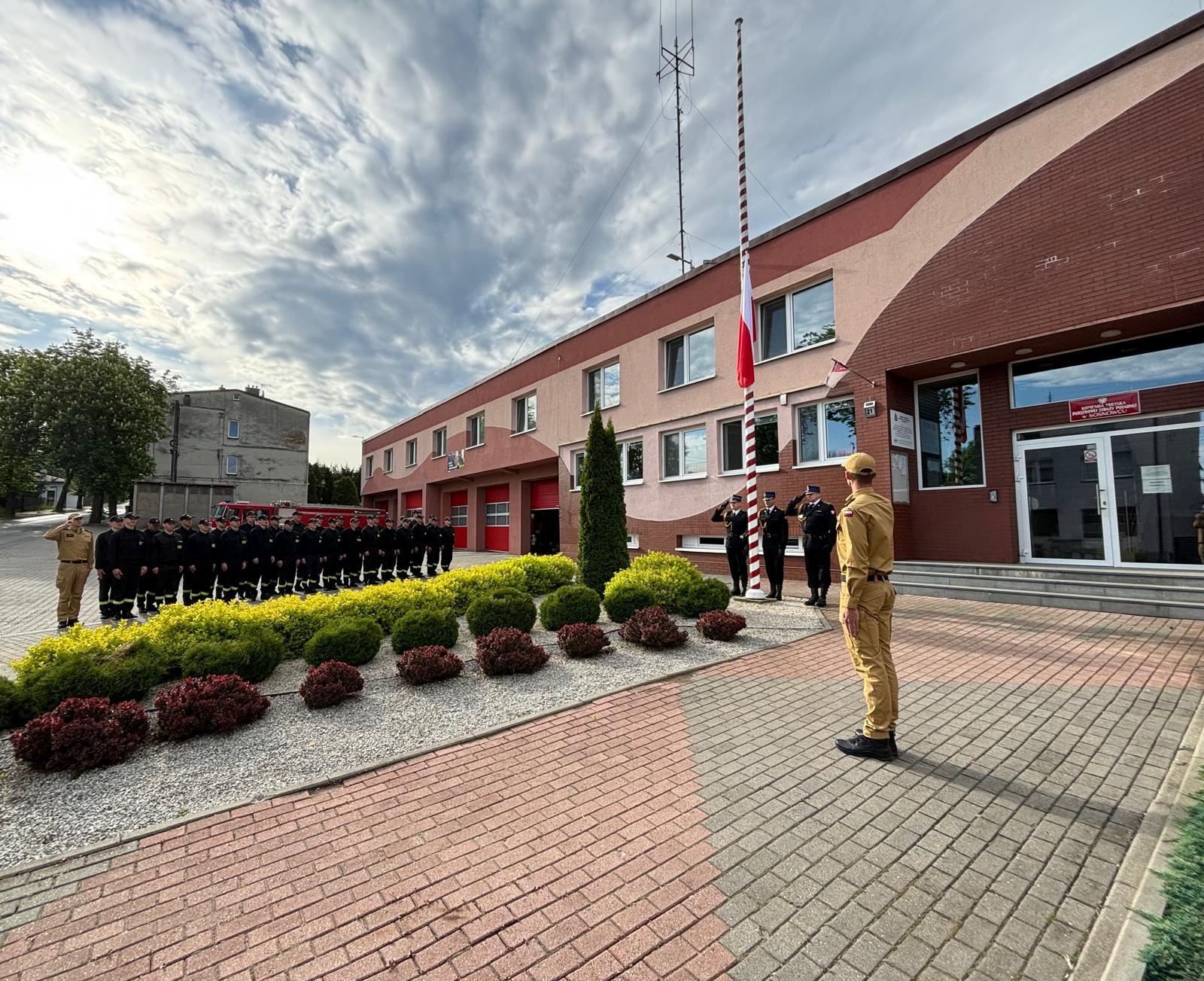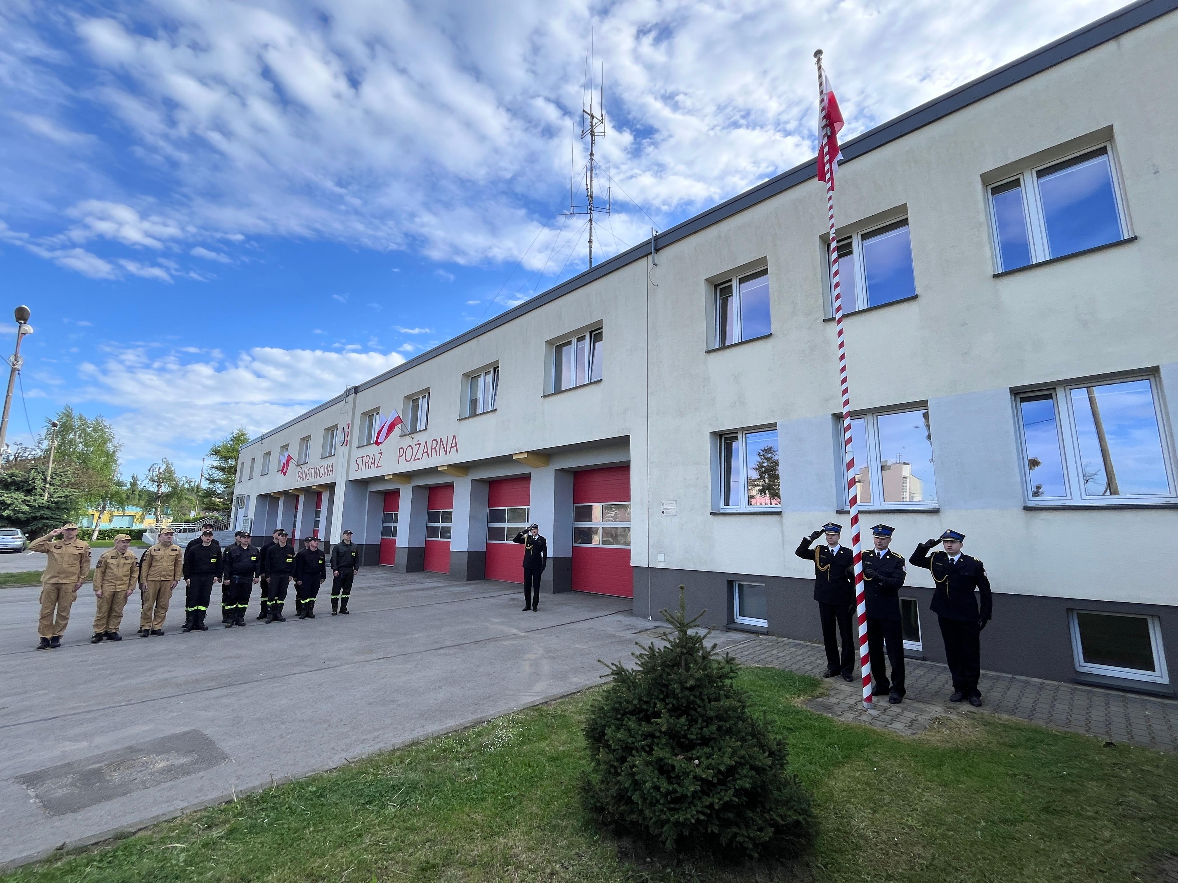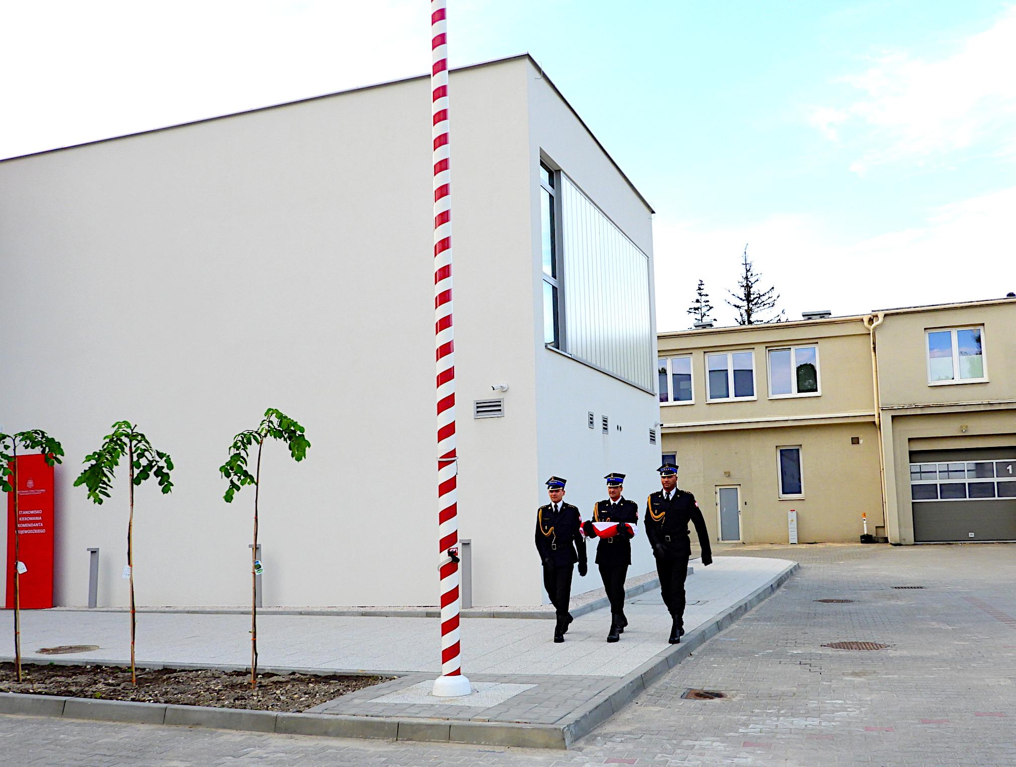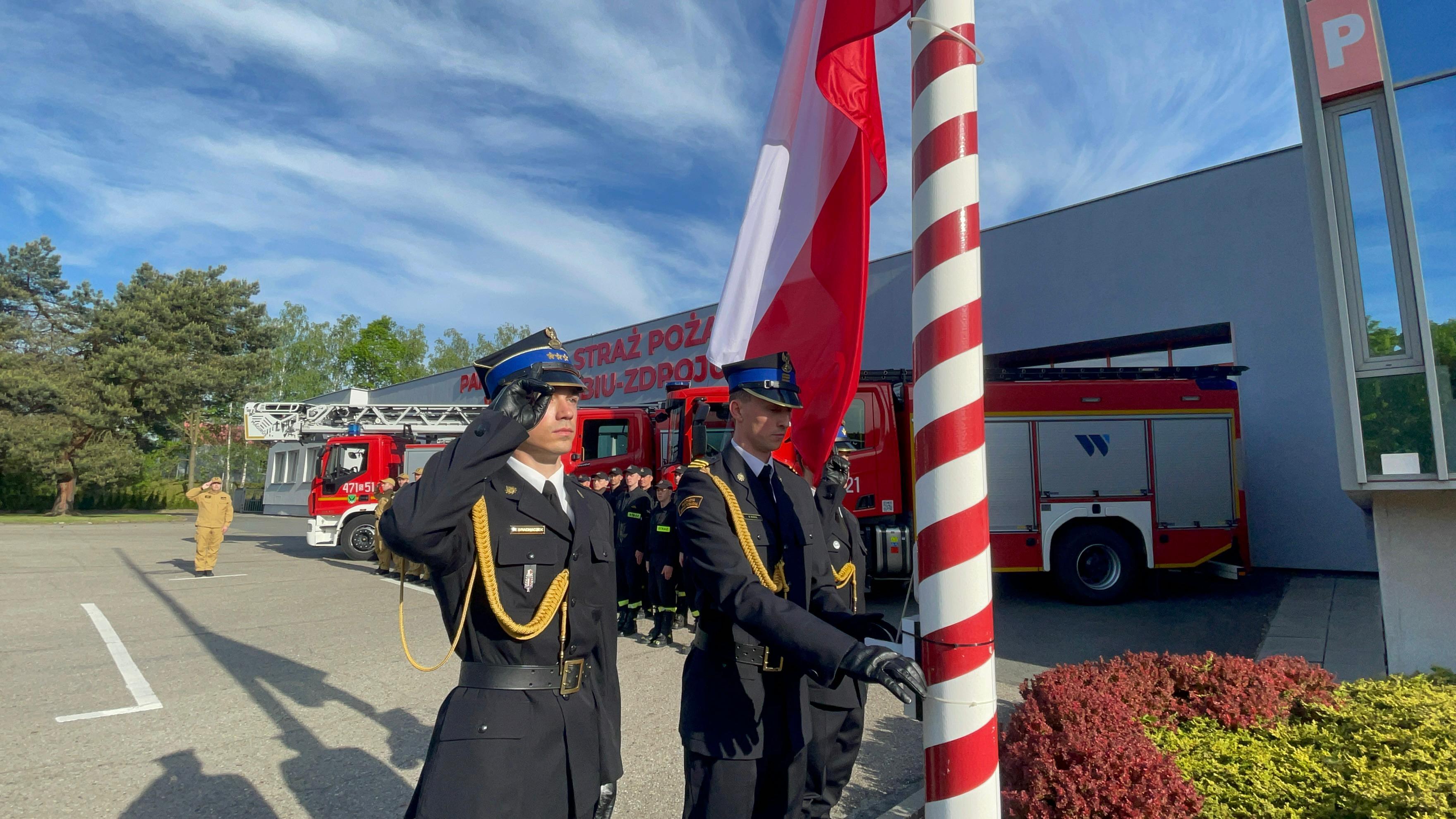 Podniesieniu na maszt flagi Rzeczypospolitej Polskiej towarzyszyło odegranie hymnu państwowego w wykonaniu Orkiestry Wojskowej w Bytomiu. Uroczystość uświetniły także poczty sztandarowe, w tym poczet Komendy Wojewódzkiej PSP w Katowicach.
