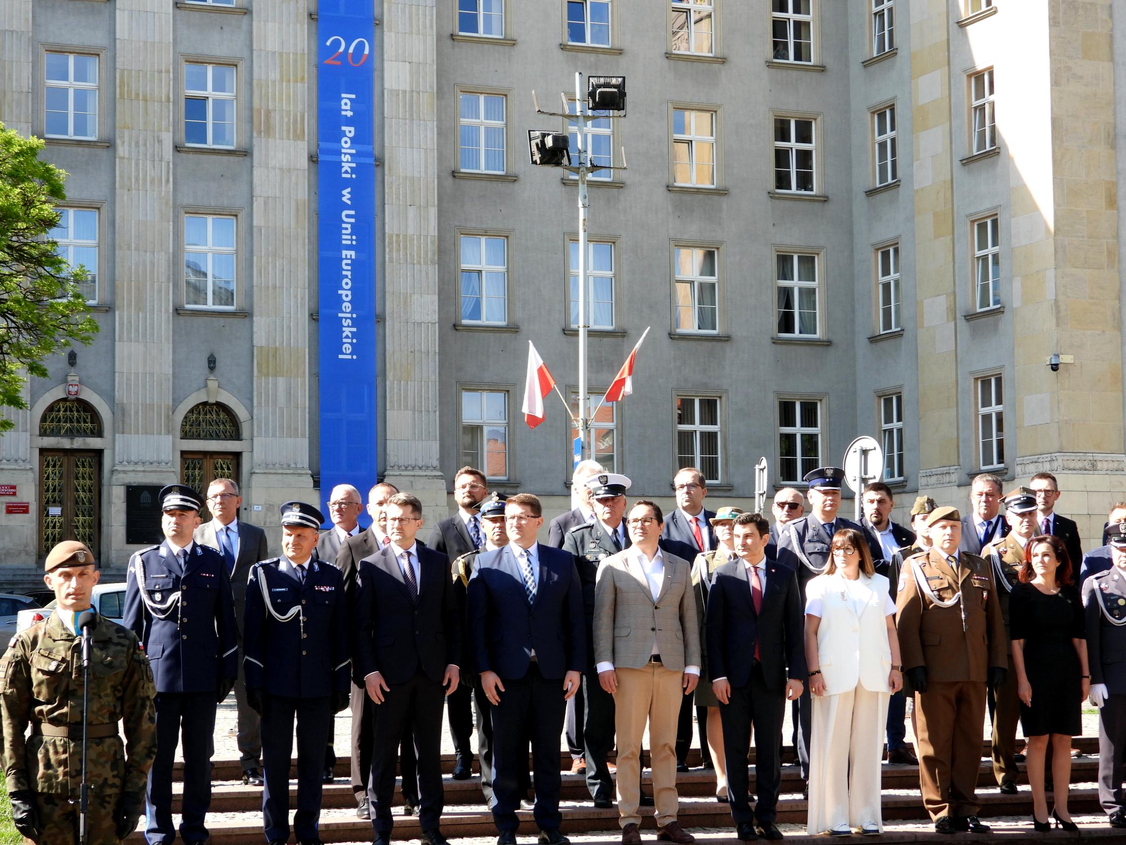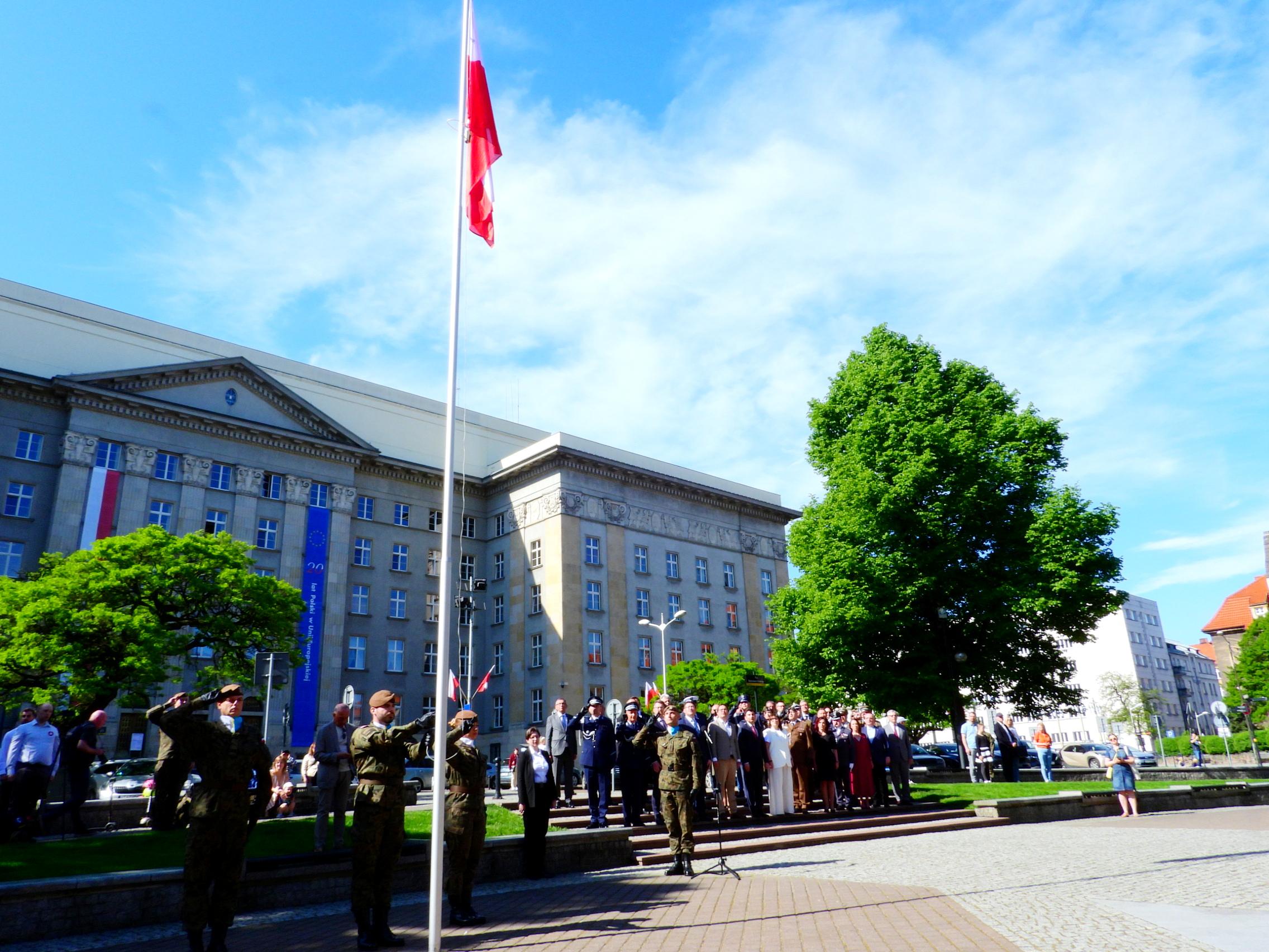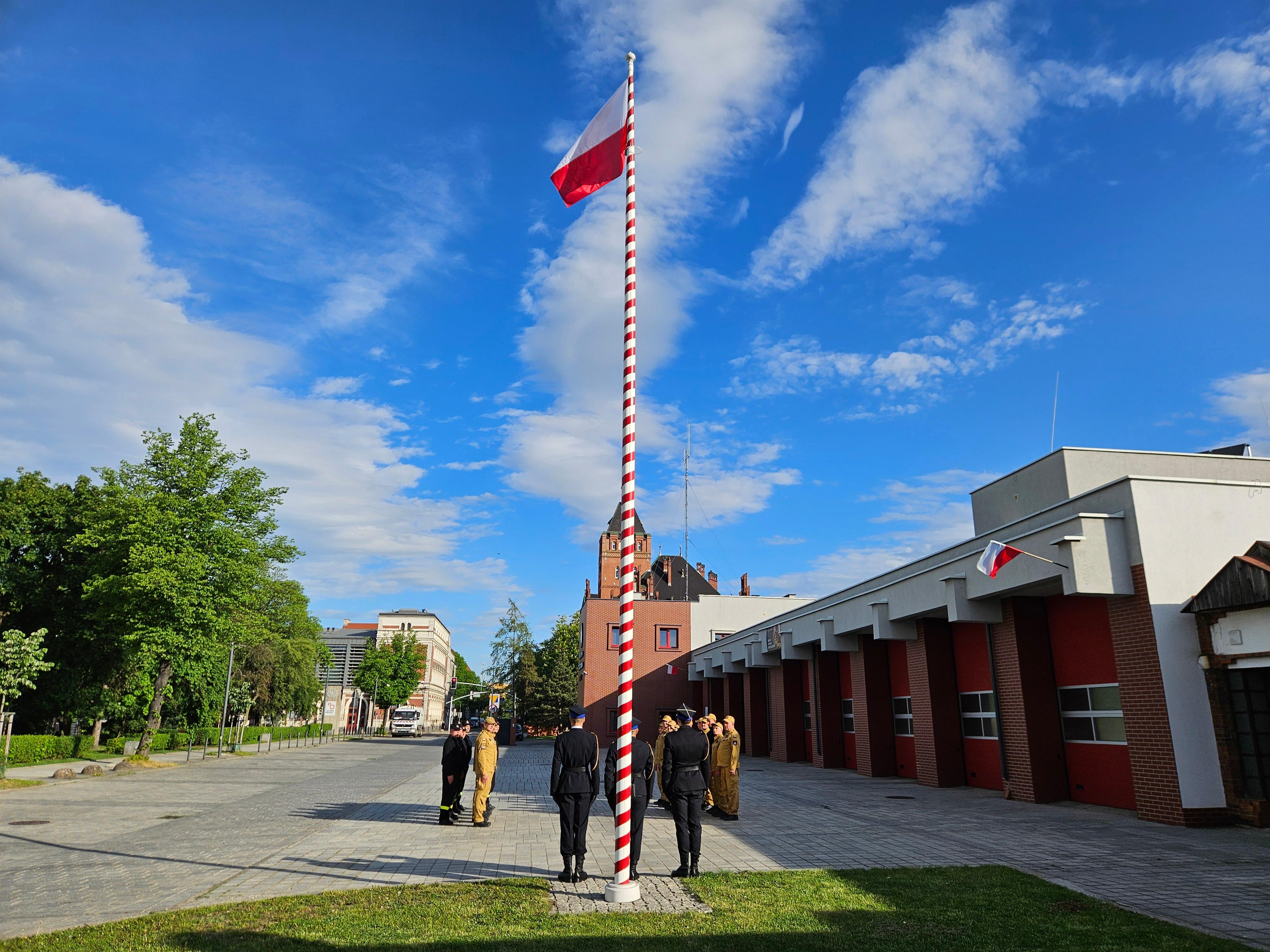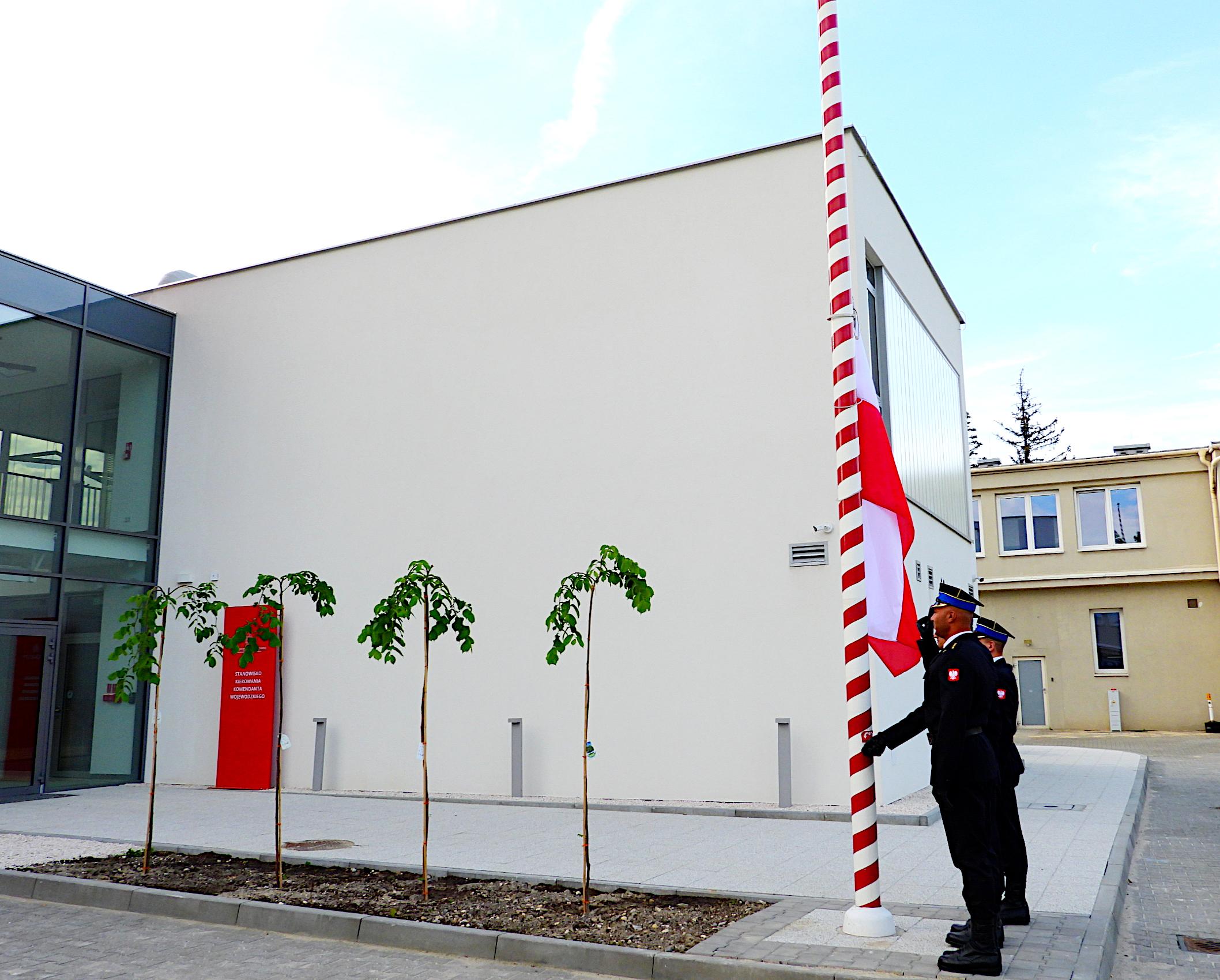 Podniesieniu na maszt flagi Rzeczypospolitej Polskiej towarzyszyło odegranie hymnu państwowego w wykonaniu Orkiestry Wojskowej w Bytomiu. Uroczystość uświetniły także poczty sztandarowe, w tym poczet Komendy Wojewódzkiej PSP w Katowicach.