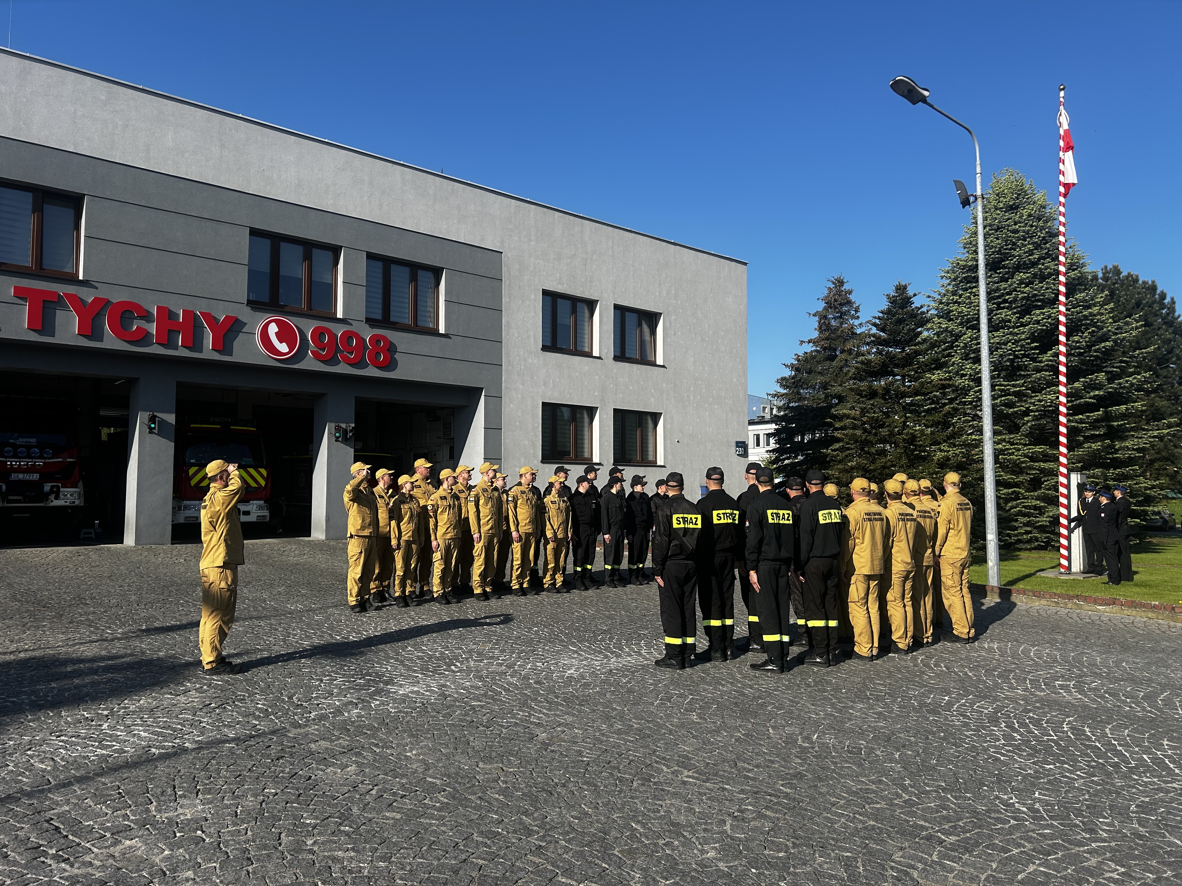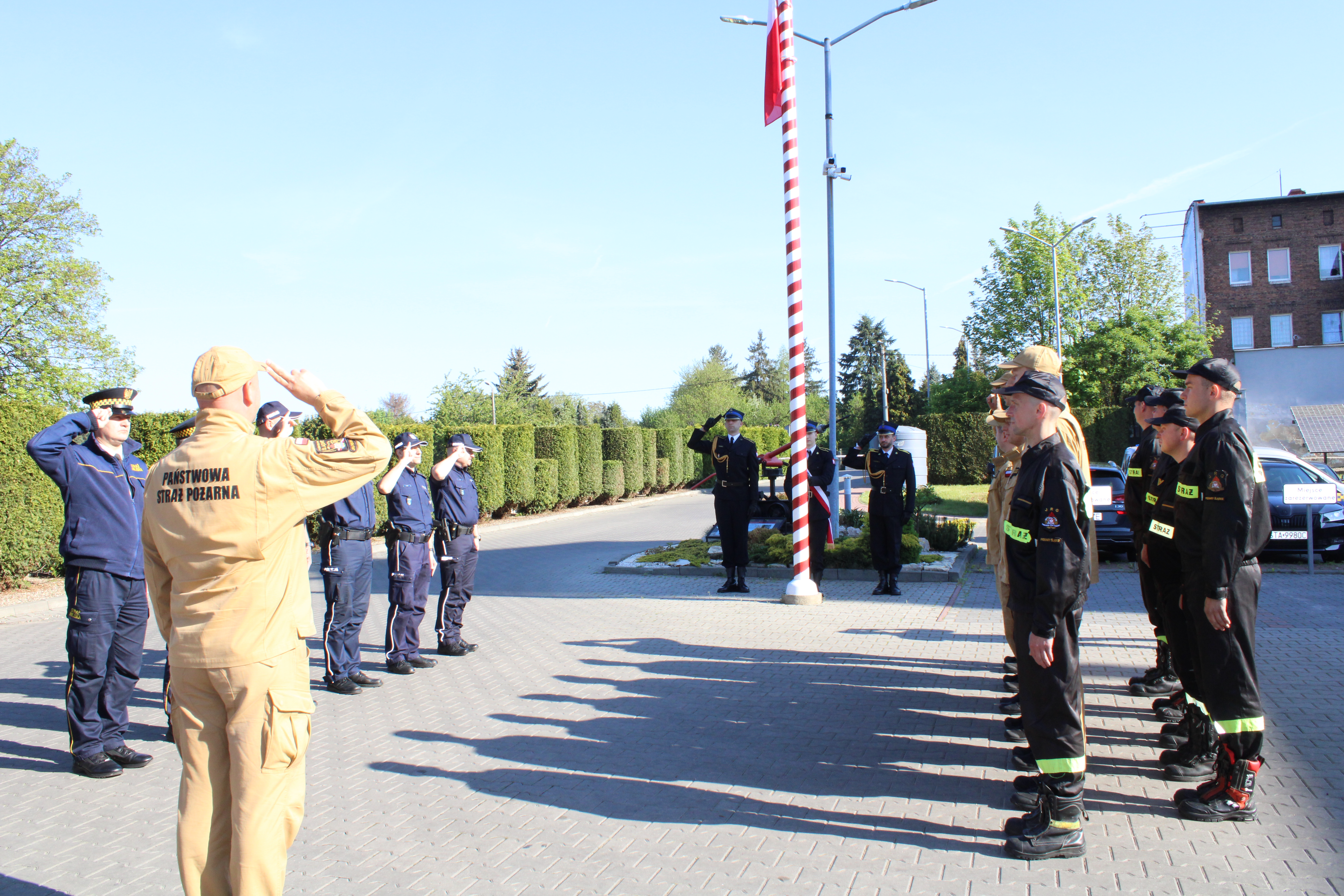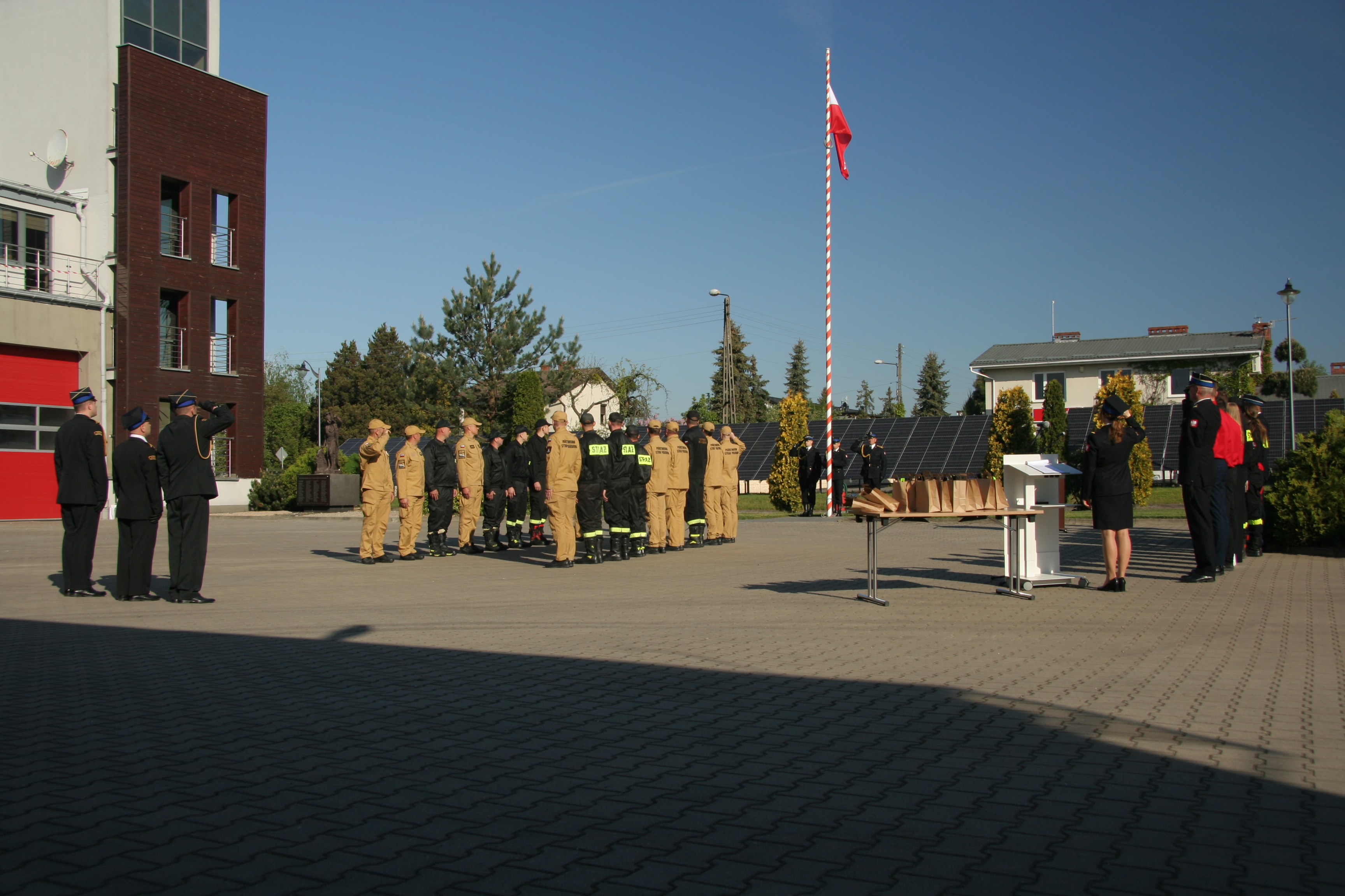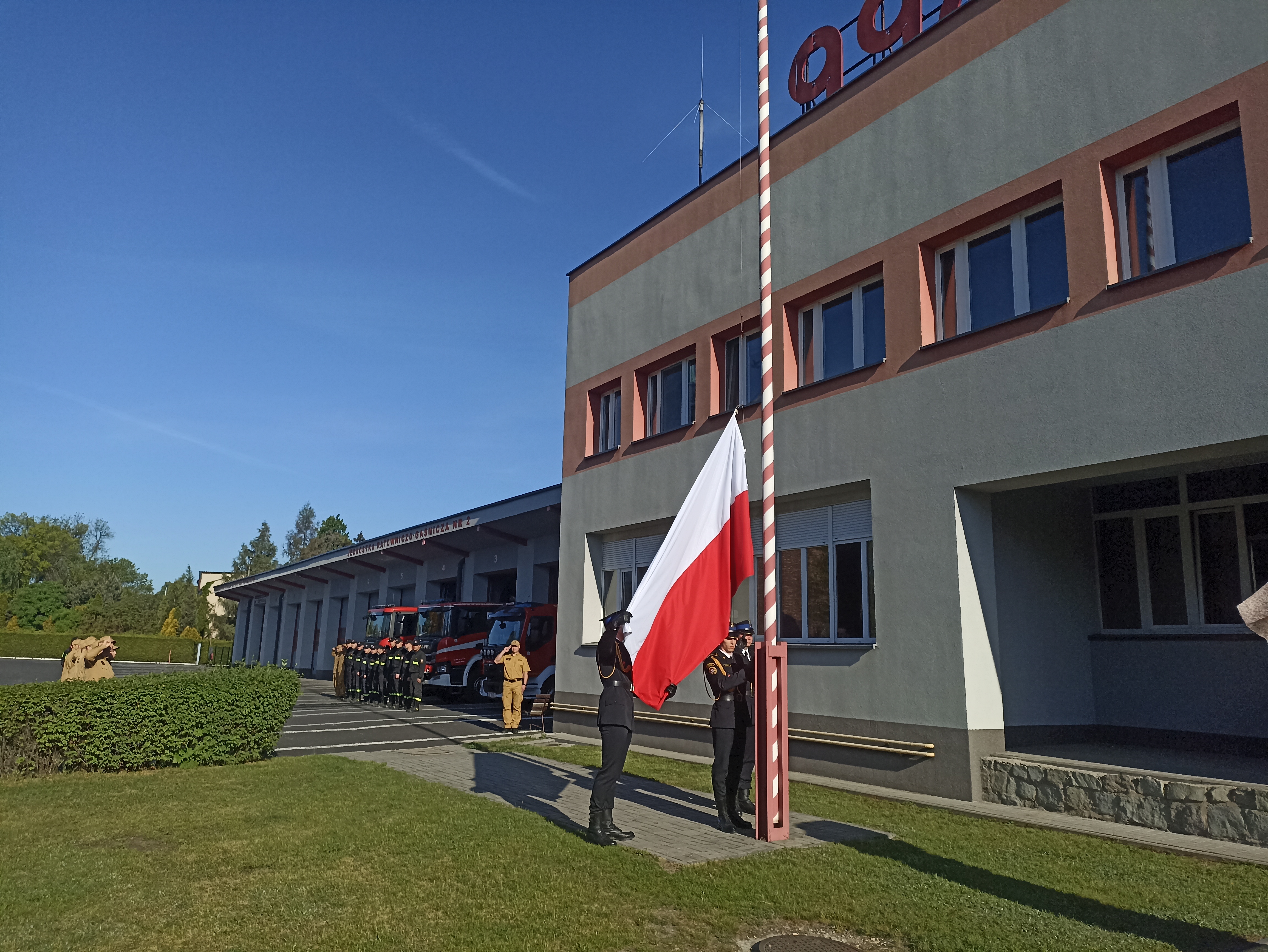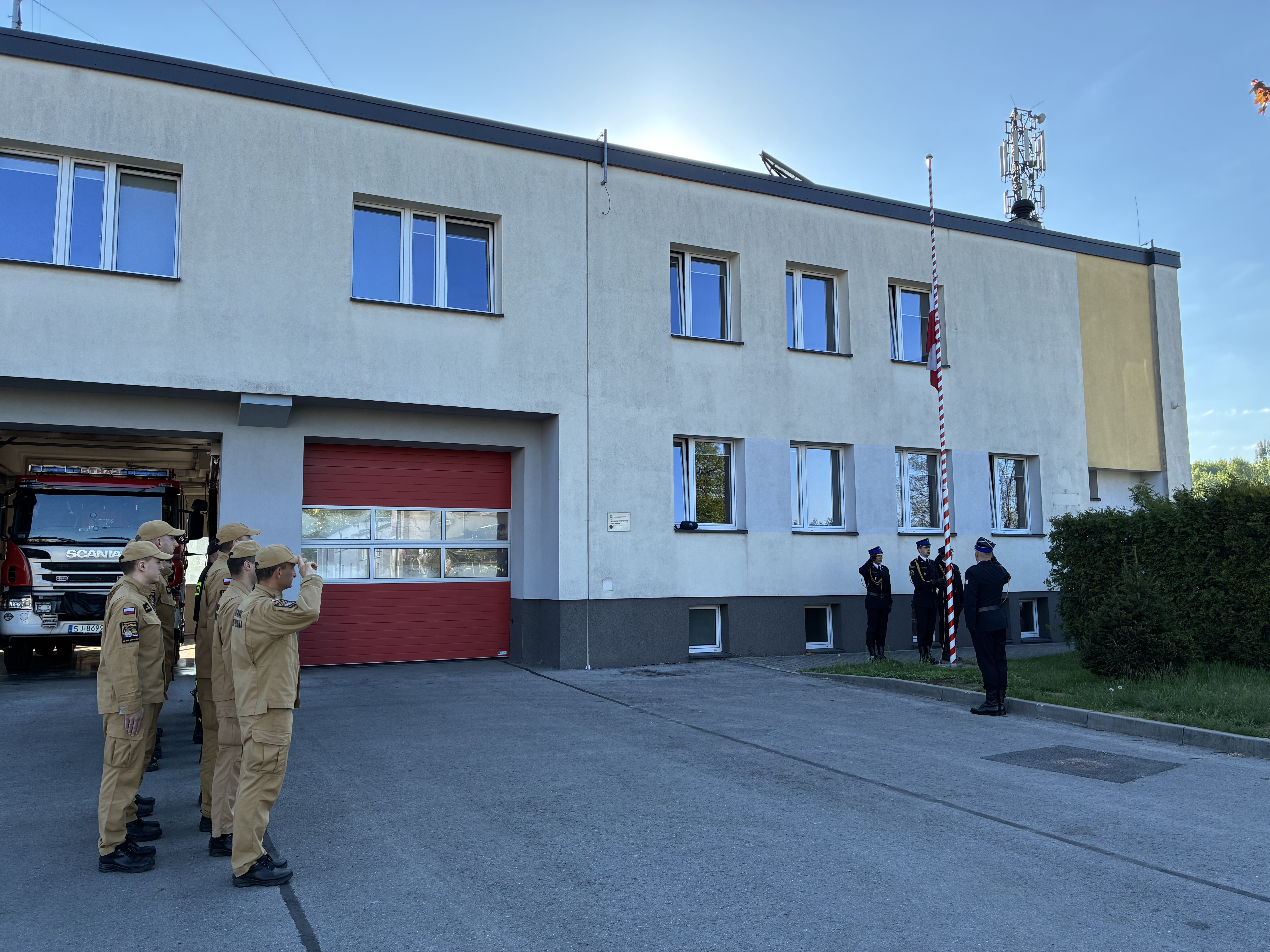 Podniesieniu na maszt flagi Rzeczypospolitej Polskiej towarzyszyło odegranie hymnu państwowego w wykonaniu Orkiestry Wojskowej w Bytomiu. Uroczystość uświetniły także poczty sztandarowe, w tym poczet Komendy Wojewódzkiej PSP w Katowicach.