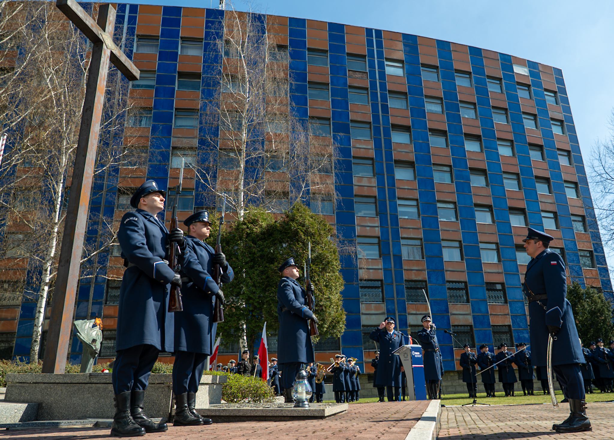 Uroczystości rozpoczęły się pod pomnikiem Ofiar Zbrodni Katyńskiej na placu Andrzeja w Katowicach, gdzie złożono wieniec oraz uczczono wspólną modlitwą pomordowanych wiosną 1940 roku przez sowieckie NKWD. Spod Pomnika wyruszył Katyński Marsz Pamięci - uczestnicy uroczystości, kompania honorowa Komendy Wojewódzkiej Policji w Katowicach oraz poczty sztandarowe w tym poczet Komendy Wojewódzkiej PSP w Katowicach przeszli ulicami Katowic pod Grób Policjanta Polskiego przy Komendzie Wojewódzkiej Policji w Katowicach, gdzie od odegrania hymnu państwowego i podniesienia flagi państwowej na maszt, rozpoczął się uroczysty apel.