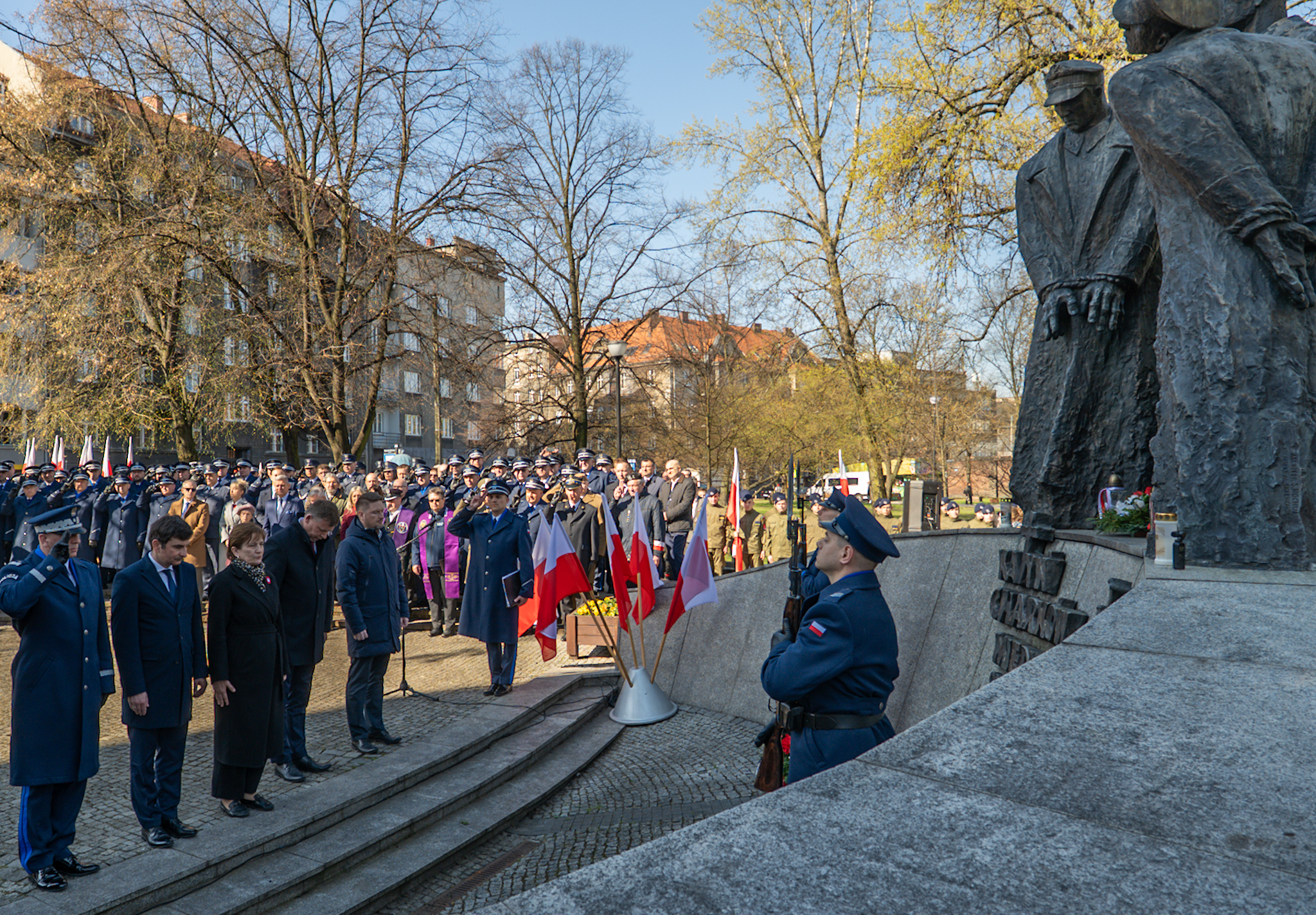 W 85. rocznicę zbrodni katyńskiej Śląski Komendant Wojewódzki PSP - st. bryg. Damian Legierski uczestniczył w III Katyńskim Marszu Pamięci Służb Mundurowych Województwa Śląskiego.