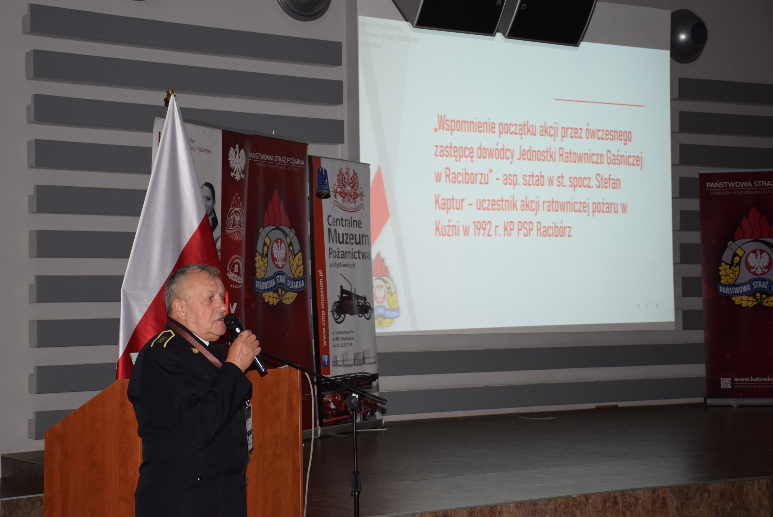 - „Wspomnienie początku akcji przez ówczesnego zastępcę dowódcy Jednostki Ratowniczo Gaśniczej w Raciborzu” - asp. sztab w st. spocz. Stefan Kaptur – uczestnik akcji ratowniczej pożaru w Kuźni w 1992 r. KP PSP Racibórz