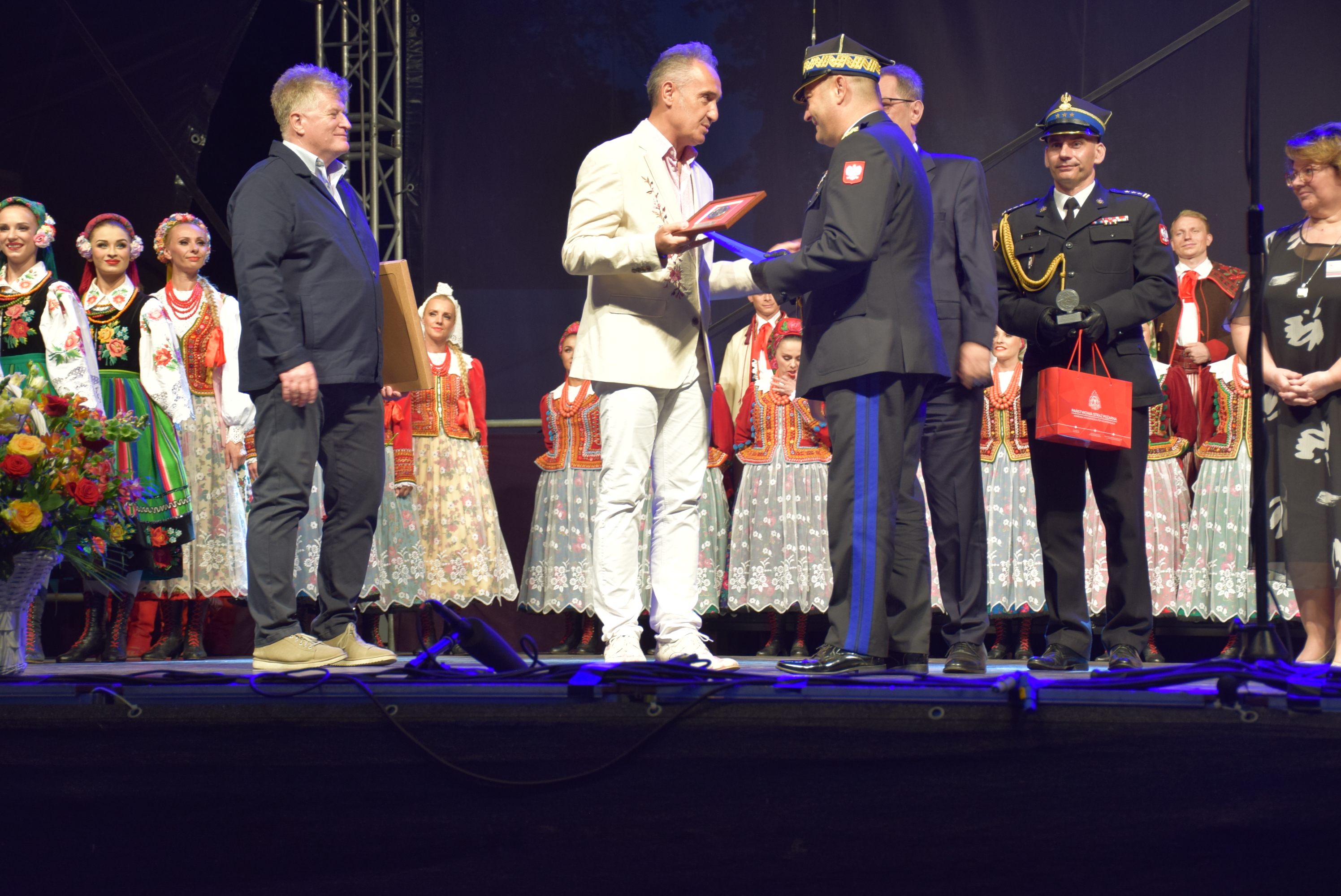 Na koszęcińskiej scenie nie zabrakło występów artystycznych - Orkiestry Koncertowej Reprezentacyjnego Zespołu Wojska Polskiego wraz z solistami, pokazu III Pułku Ułanów Śląskich oraz koncertu Katarzyny Suchary z zespołem w programie "Muzyka jest kobietą". Gwiazdą wieczoru był Zespół Pieśni i Tańca "Śląsk", prezentując swój repertuar. – W imieniu służ mundurowych mogę podziękować za tą wspaniałą ucztę. Wrażenia z koncertu Zespołu „Śląsk” za każdym razem są pierwotne – ciągle się widzi coś nowego, ale zawsze widzi się tą samą doskonałość – doskonałość wykonania. To artyzm tych wszystkich osób, którzy dają z siebie wszystko. Chylimy przed Wami czoła, przed Waszym profesjonalizmem. Jesteśmy dumni z Zespołu „Śląsk”, bo jesteście diamentem w koronie Rzeczpospolitej i najlepszym mecenasem sztuki polskiej na świecie – tymi słowami Śląski Komendant Wojewódzki PSP nadbryg. Jacek Kleszczewski podziękował za występ Zespołu, będący ukoronowaniem tegorocznych obchodów 30-lecia powstania Państwowej Straży Pożarnej.