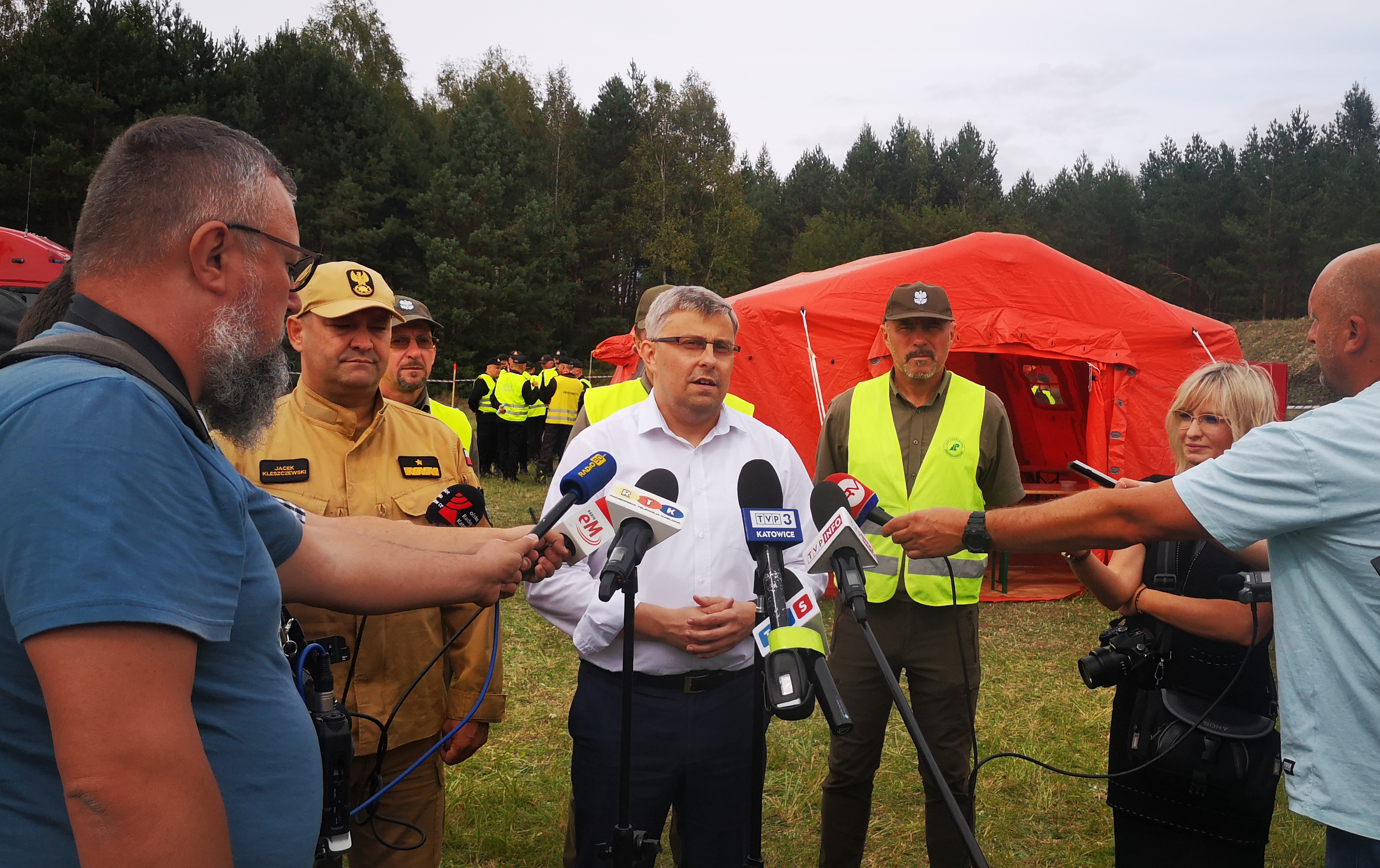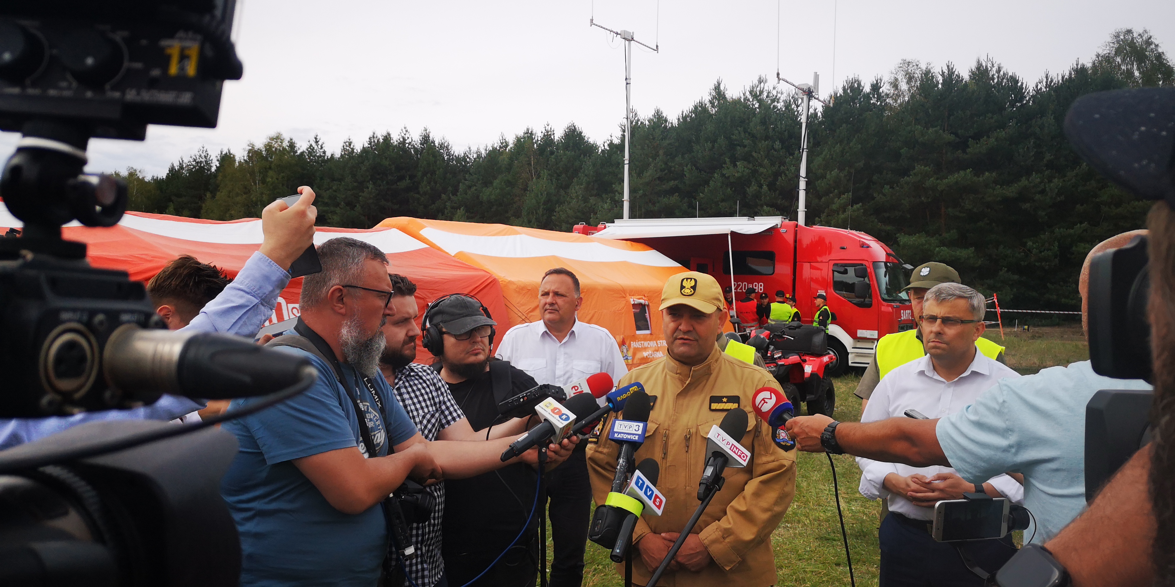 Następnie odbył się briefing prasowy z udziałem wojewody śląskiego Pana Jarosława Wieczorka i śląskiego komendanta wojewódzkiego PSP nadbryg. Jacka Kleszczewskiego, po którym obaj udali na poszczególne odcinki bojowe, gdzie zapoznali się działaniami strażaków.
