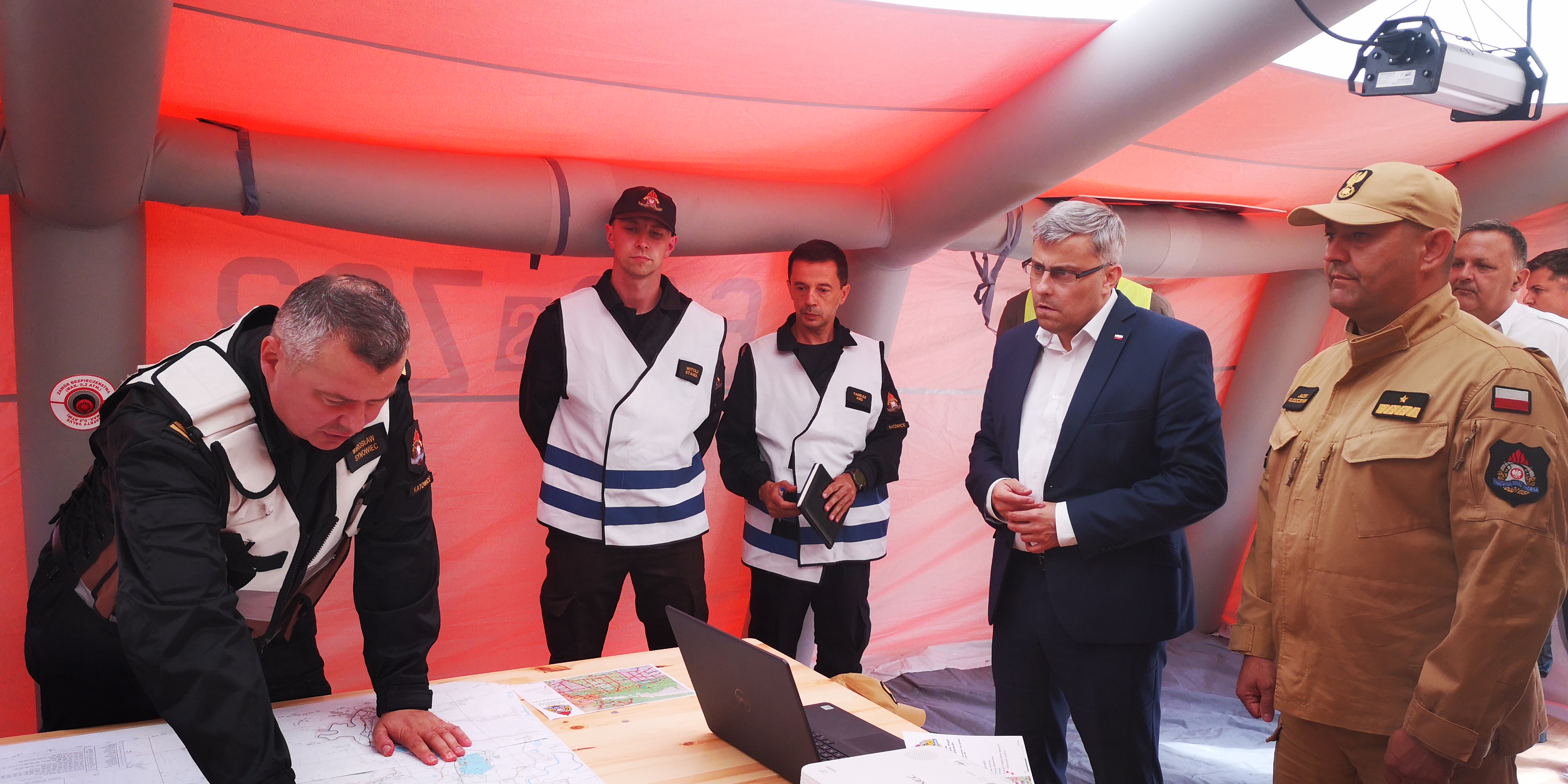 W pierwszym dniu manewrów, na teren ćwiczeń przybył wojewoda śląski Pan Jarosław Wieczorek. Na miejscu kierujący działaniami ratowniczymi - zastępca śląskiego komendanta wojewódzkiego st. bryg. Mirosław Synowiec zapoznał go z założeniami ćwiczeń oraz pracą sztabu.