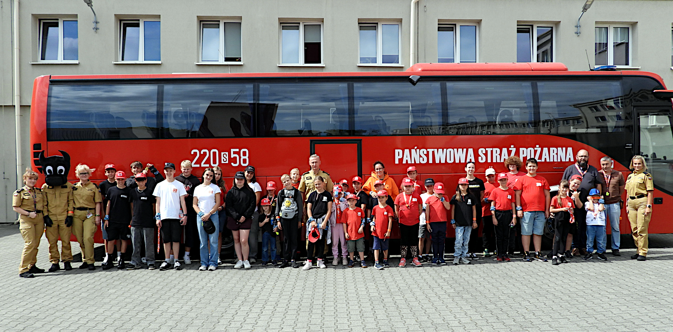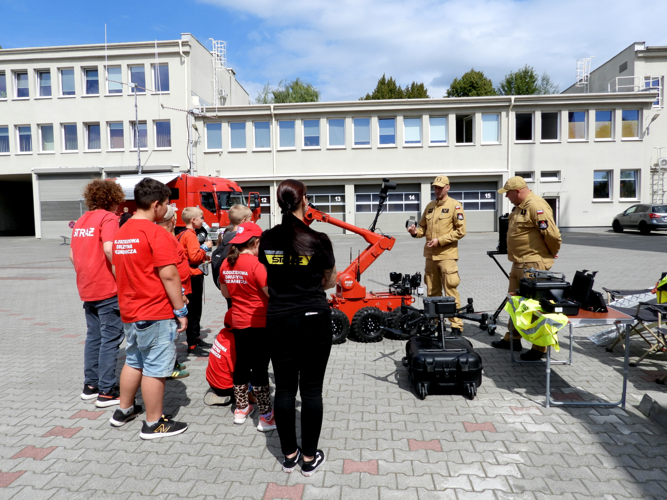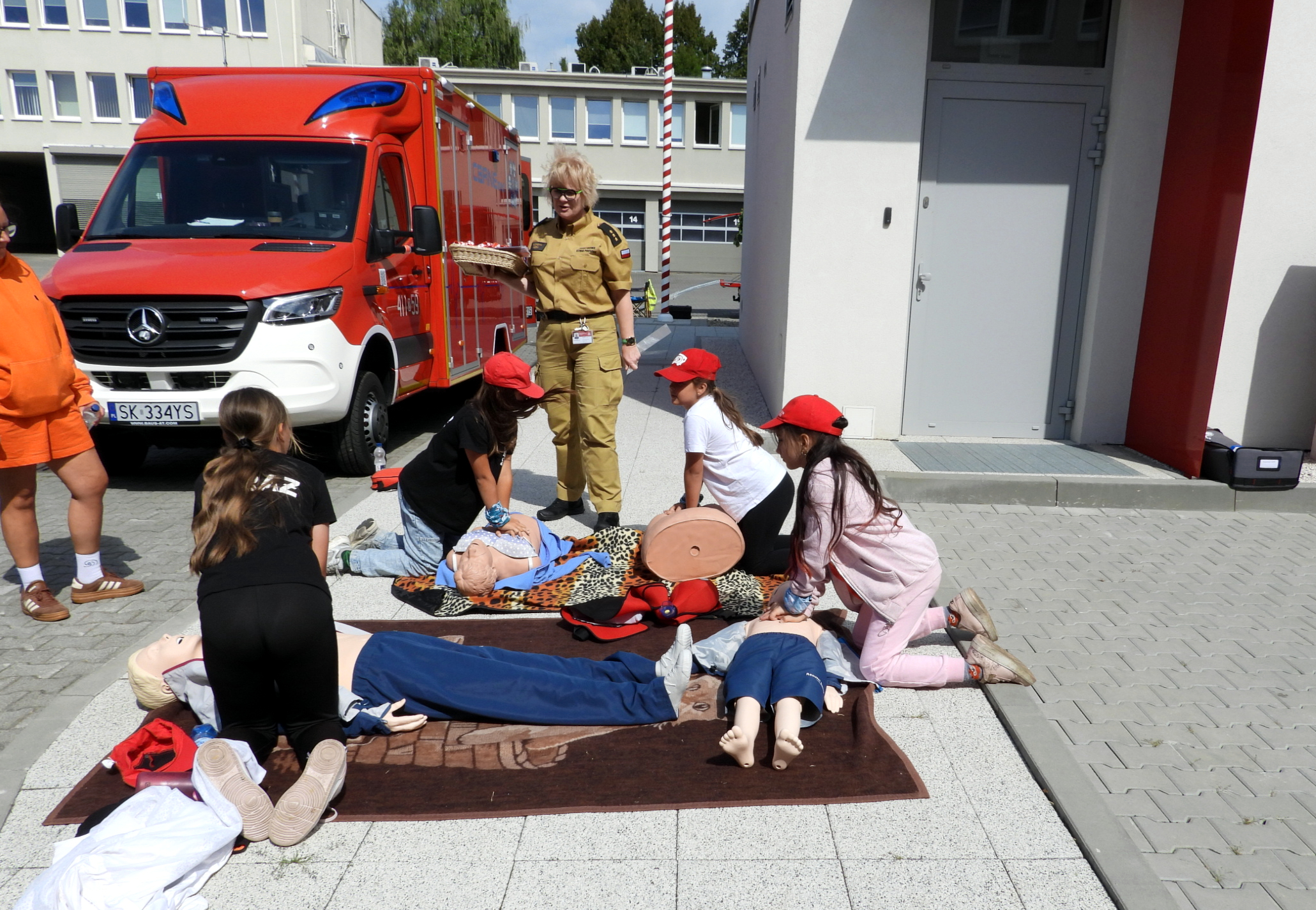 Następnie uczestnicy wysłuchali prelekcji „Bezpieczne wakacje”, podczas której przypomniano najważniejsze zasady dotyczące bezpieczeństwa podczas letniego wypoczynku. Na zakończenie tej części wizyty z uczestnicy poznali Beboka Floriana - fikcyjną postać śląskiej straży pożarnej, która edukuje o bezpieczeństwie. W dalszej częsci wizyty młodzież udała się na plac wewnętrzny komendy, gdzie przygotowano pokaz specjalistycznego sprzętu wykorzystywanego przez strażaków – m.in. sztabowy samochód dowodzenia i łączności (SDŁ) z Komendy Wojewódzkiej PSP w Katowicach, lekki samochód ratownictwa medycznego SLRMed z Komendy Miejskiej PSP w Bytomiu, służący do zabezpieczania medycznego długotrwałych działań ratowniczych lub zabezpieczania lądowań śmigłowców Lotniczego Pogotowia Ratunkowego (LPR) oraz robota do działań rozpoznawczych IBIS z Komendy Miejskiej PSP w Katowicach. Zaprezentowała się również Specjalistyczna Grupa Ratownictwa Wodno-Nurkowego z Bytomia. Dużym zainteresowaniem cieszył się także pokaz udzielania pierwszej pomocy przeprowadzony przez funkcjonariuszy z Ośrodka Szkolenia PSP w Katowicach.
