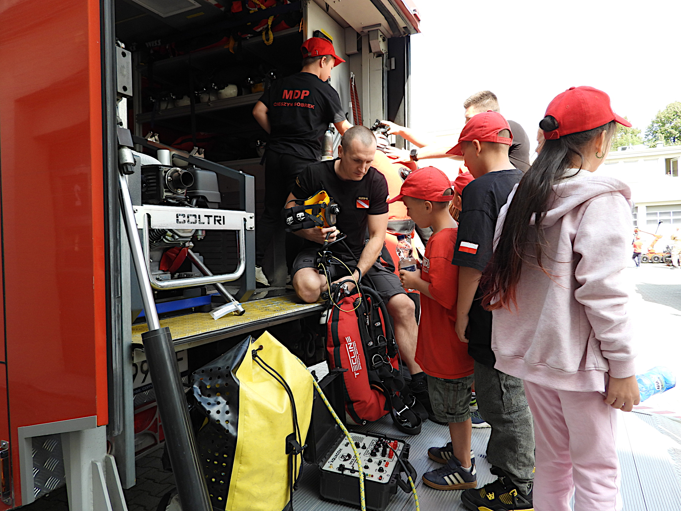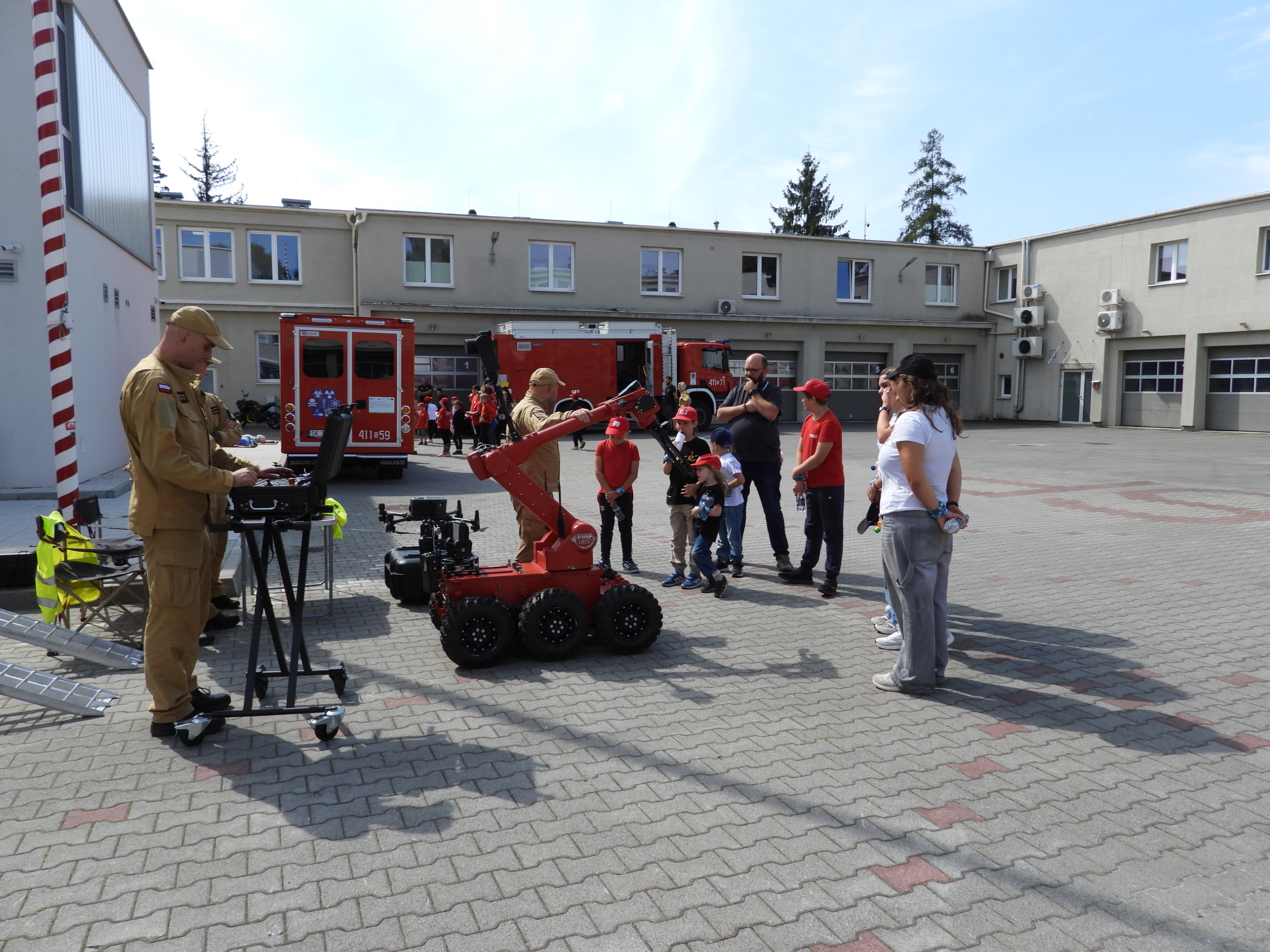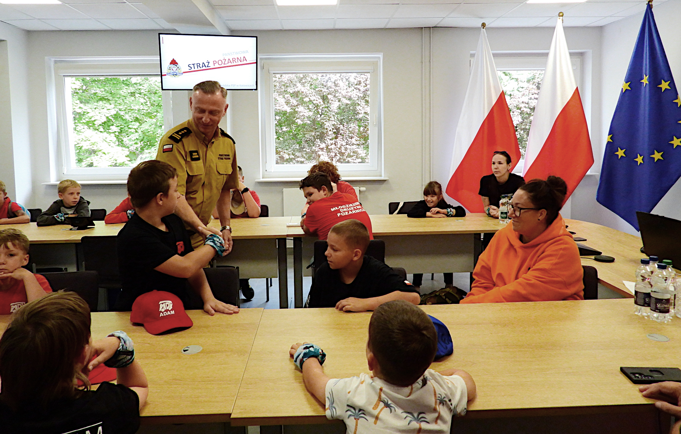 Następnie uczestnicy wysłuchali prelekcji „Bezpieczne wakacje”, podczas której przypomniano najważniejsze zasady dotyczące bezpieczeństwa podczas letniego wypoczynku. Na zakończenie tej części wizyty z uczestnicy poznali Beboka Floriana - fikcyjną postać śląskiej straży pożarnej, która edukuje o bezpieczeństwie. W dalszej częsci wizyty młodzież udała się na plac wewnętrzny komendy, gdzie przygotowano pokaz specjalistycznego sprzętu wykorzystywanego przez strażaków – m.in. sztabowy samochód dowodzenia i łączności (SDŁ) z Komendy Wojewódzkiej PSP w Katowicach, lekki samochód ratownictwa medycznego SLRMed z Komendy Miejskiej PSP w Bytomiu, służący do zabezpieczania medycznego długotrwałych działań ratowniczych lub zabezpieczania lądowań śmigłowców Lotniczego Pogotowia Ratunkowego (LPR) oraz robota do działań rozpoznawczych IBIS z Komendy Miejskiej PSP w Katowicach. Zaprezentowała się również Specjalistyczna Grupa Ratownictwa Wodno-Nurkowego z Bytomia. Dużym zainteresowaniem cieszył się także pokaz udzielania pierwszej pomocy przeprowadzony przez funkcjonariuszy z Ośrodka Szkolenia PSP w Katowicach.