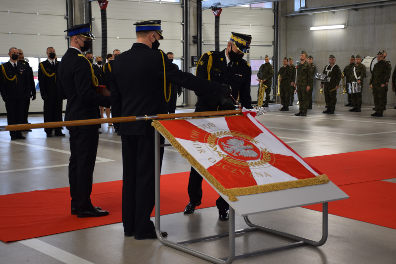 Uroczystość uświetnili: Śląska Kompania Honorowa Państwowej Straży Pożarnej, poczet sztandarowy Komendy Wojewódzkiej Państwowej Straży Pożarnej w Katowicach oraz Orkiestra Wojskowa w Bytomiu.