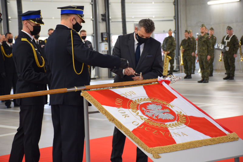 Głos zabrał także śląski komendant wojewódzki PSP, który na wstępie swojego wystąpienia podziękował wszystkim życzliwym osobom i instytucjom za wspieranie straży pożarnej oraz Komitetowi za zaangażowanie w ufundowanie sztandaru.
