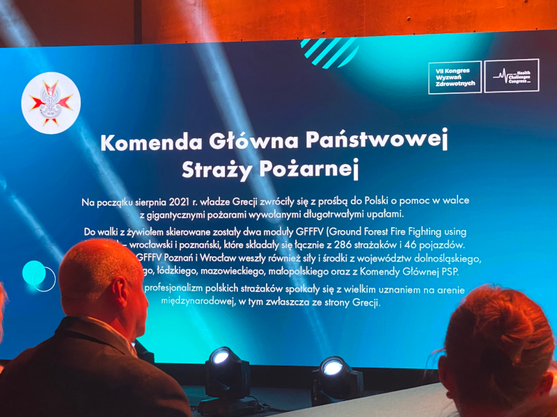 W czwartek, 3 marca 2021 roku podczas VII Kongresu Wyzwań Zdrowotnych w Katowicach wręczono Nagrody ANIMUS FORTIS (MĘŻNY DUCH) 2021. W kategorii instytucjonalnej Kapituła Nagrody przyznała wyróżnienie Komendzie Głównej Państwowej Straży Pożarnej za udział polskich strażaków w akcji gaszenia pożarów lasów w Grecji. W imieniu Komendanta Głównego PSP nadbryg. Andrzeja Bartkowiaka Dyplom Honorowy odebrał Śląski Komendant Wojewódzki PSP nadbryg. Jacek Kleszczewski.
