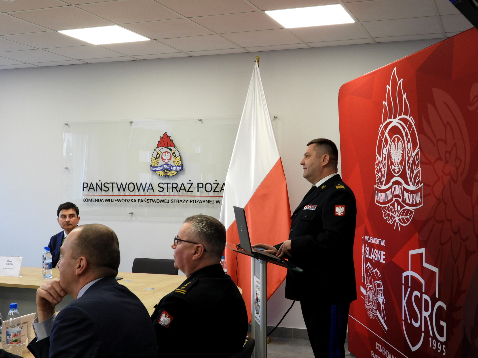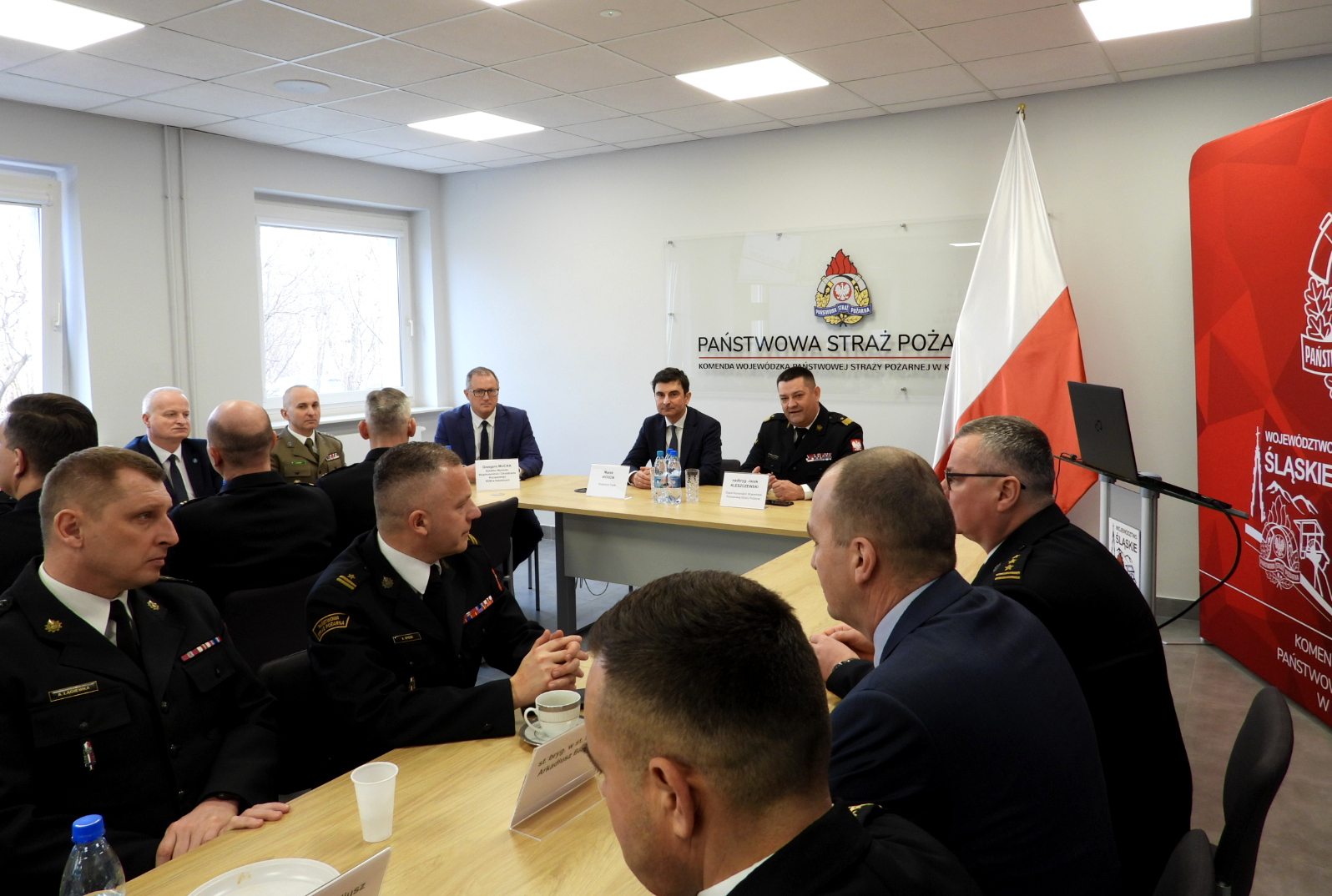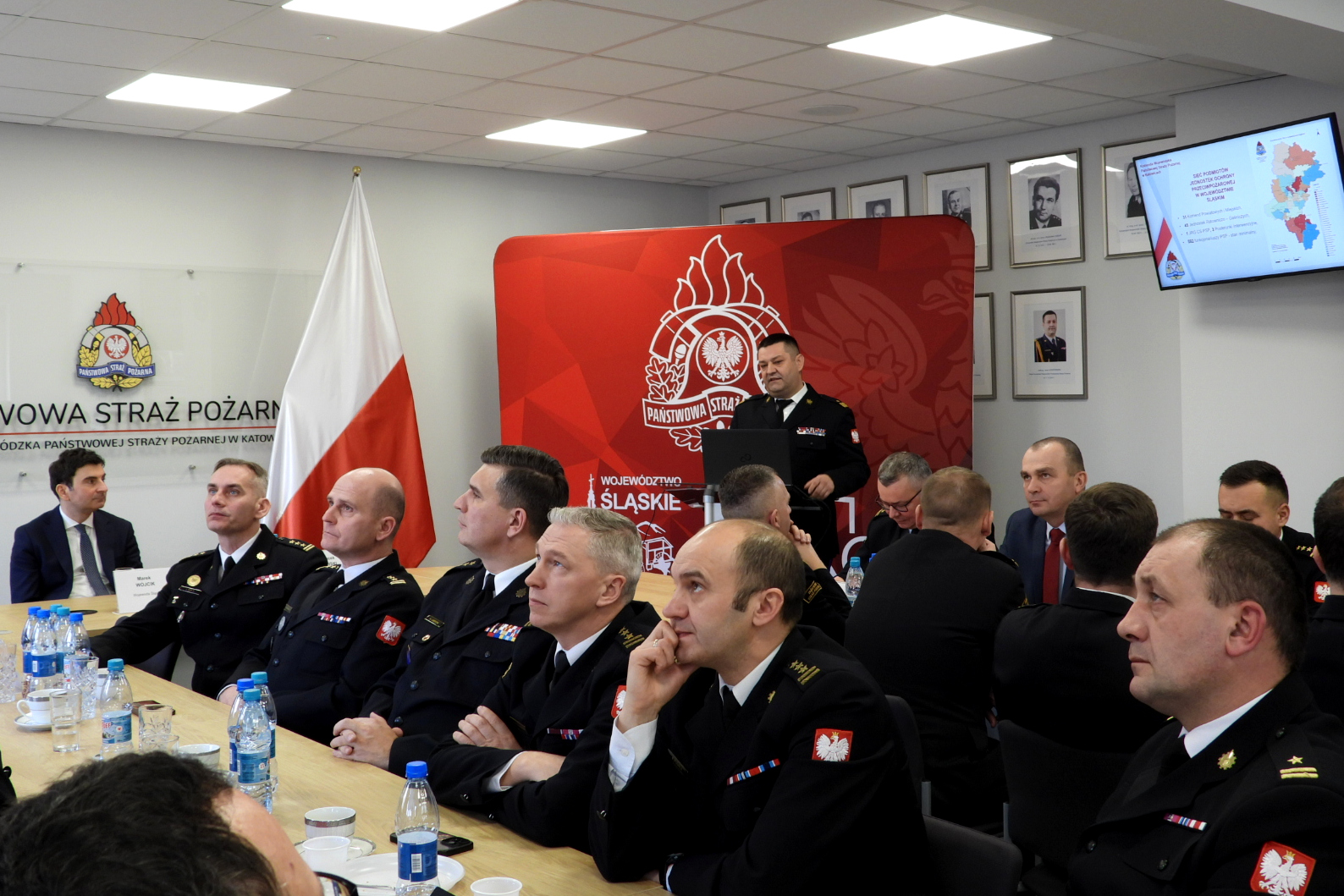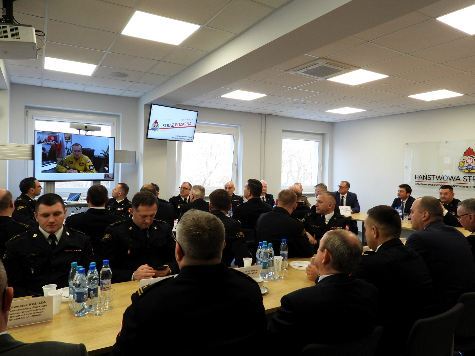 W naradzie udział wzięli: Zastępca Komendanta Głównego Państwowej Straży Pożarnej nadbryg. dr inż. Adam Konieczny (udział poprzez połączenie wideokonferencyjne), Wojewoda Śląski Pan Marek Wójcik, kadra kierownicza Komendy Wojewódzkiej PSP w Katowicach, członkowie kolegium Śląskiego Komendanta Wojewódzkiego PSP, komendanci powiatowi i miejscy Państwowej Straży Pożarnej woj. śląskiego oraz zaproszeni goście.
