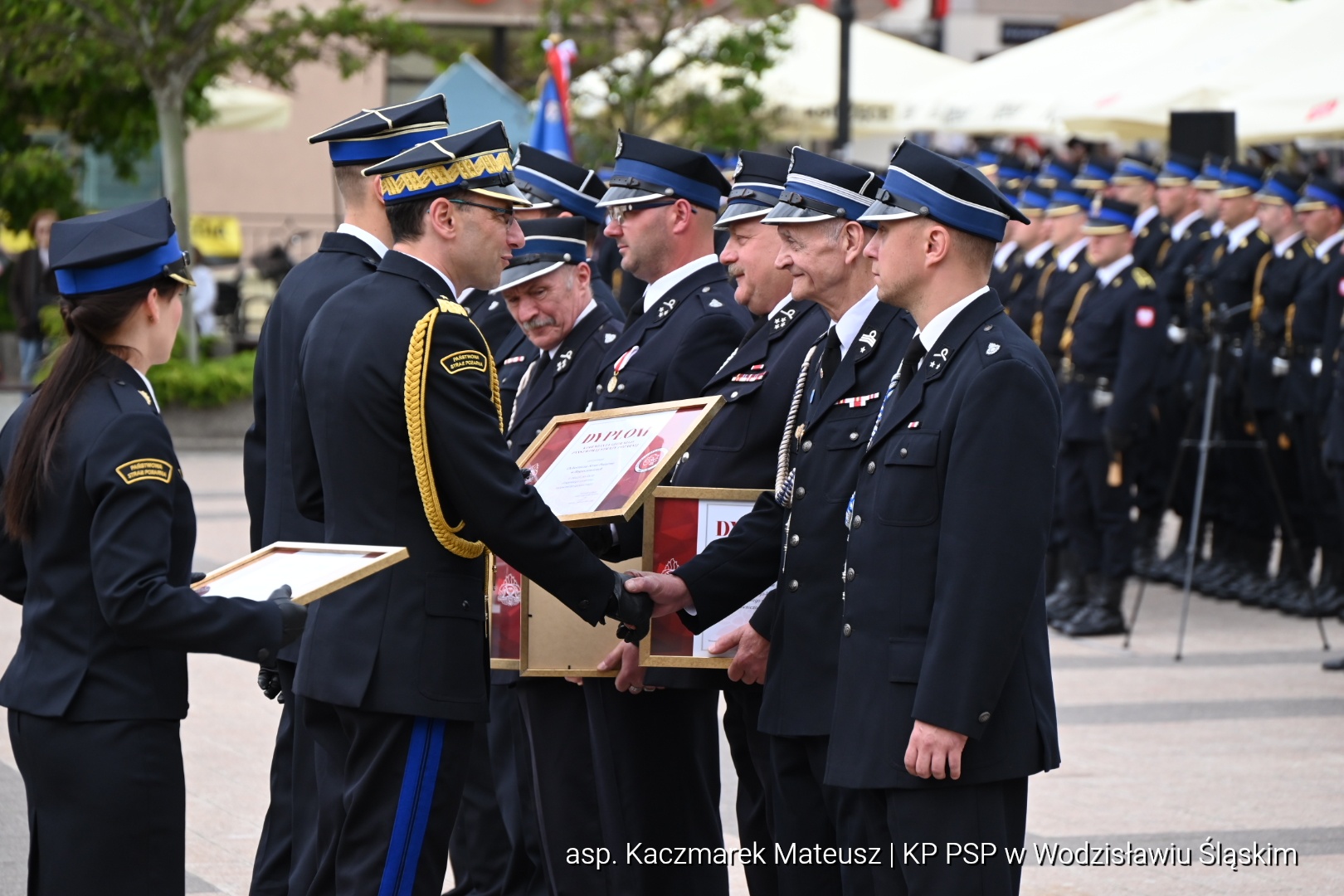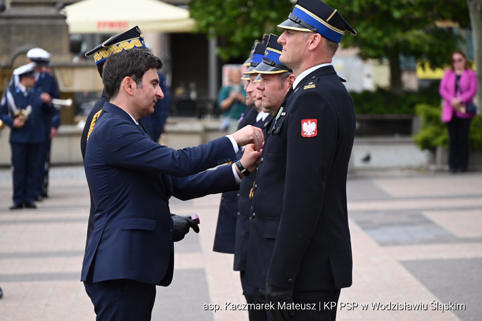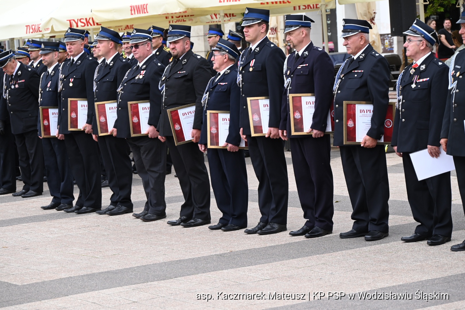 Kolejną częścią uroczystości było wyróżnienie 3 funkcjonariuszy PSP odznakami „Zasłużony dla Ochrony Przeciwpożarowej" oraz 3 osób odznakami Świętego Floriana „Za Zasługi dla Społeczności Lokalnej”. Odznaki, w imieniu Ministra Spraw Wewnętrznych i Administracji, wręczyli Komendant Główny PSP nadbryg. Wojciech Kruczek oraz Śląski Komendant Wojewódzki PSP st. bryg. Damian Legierski.