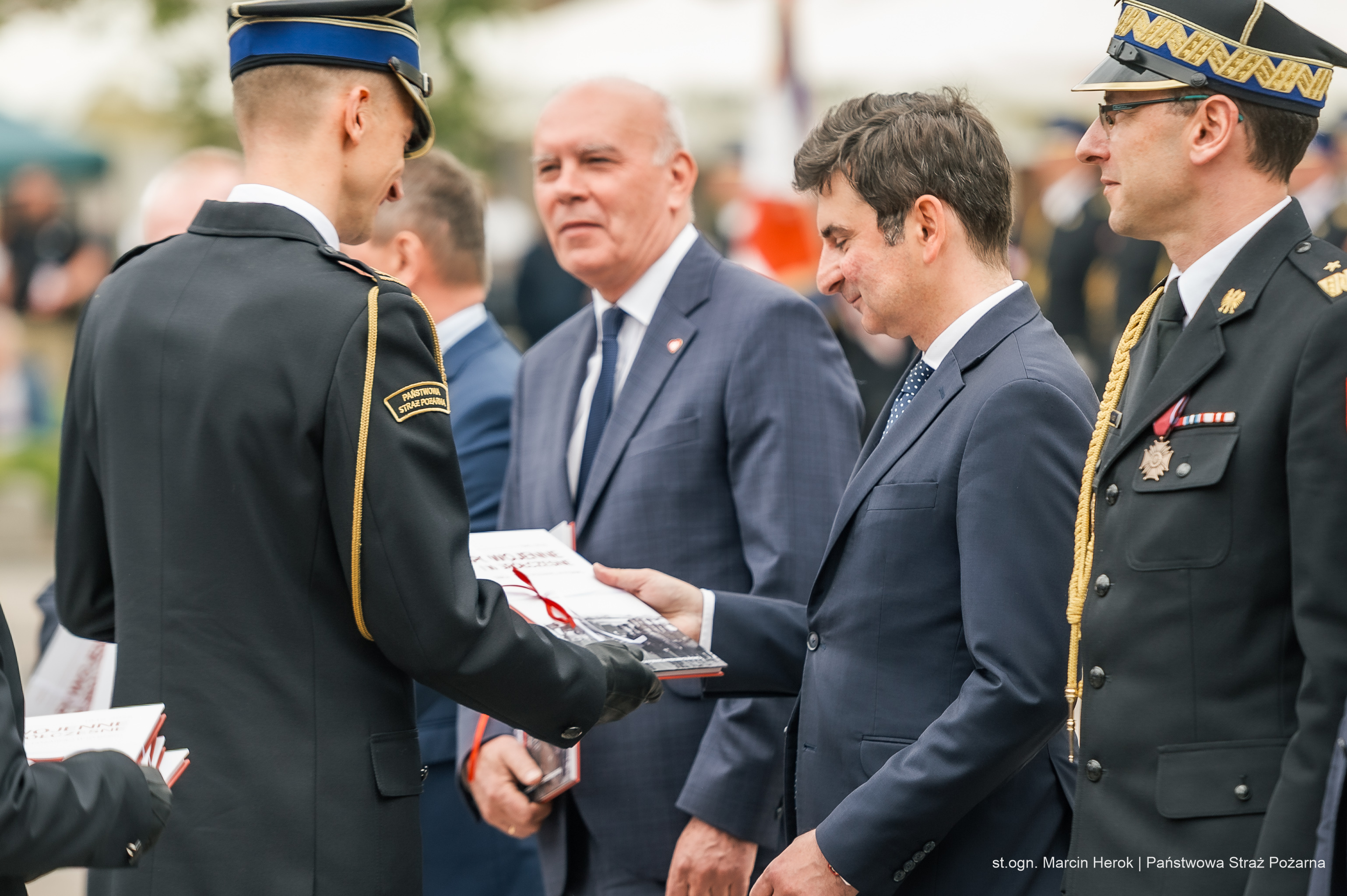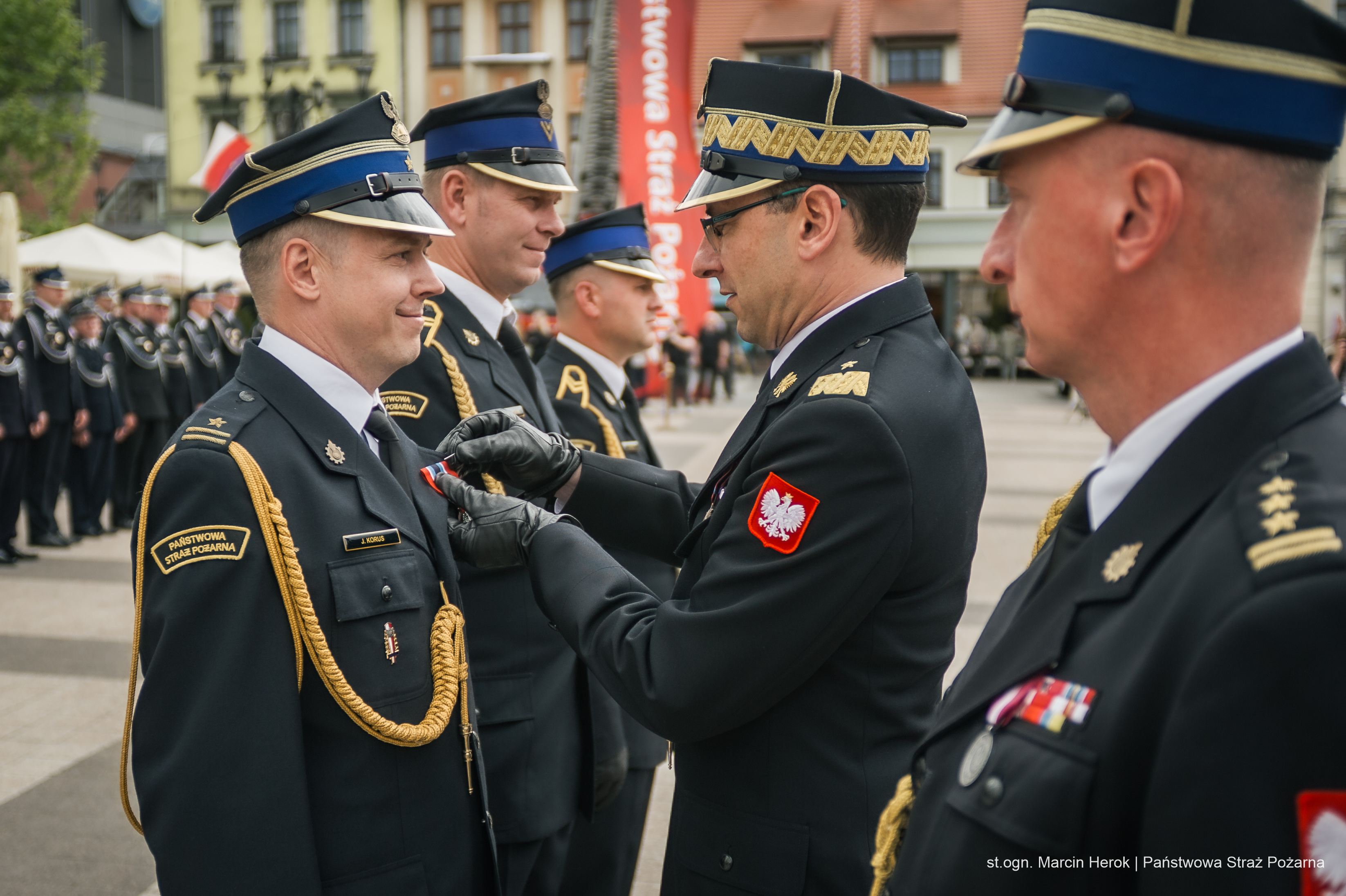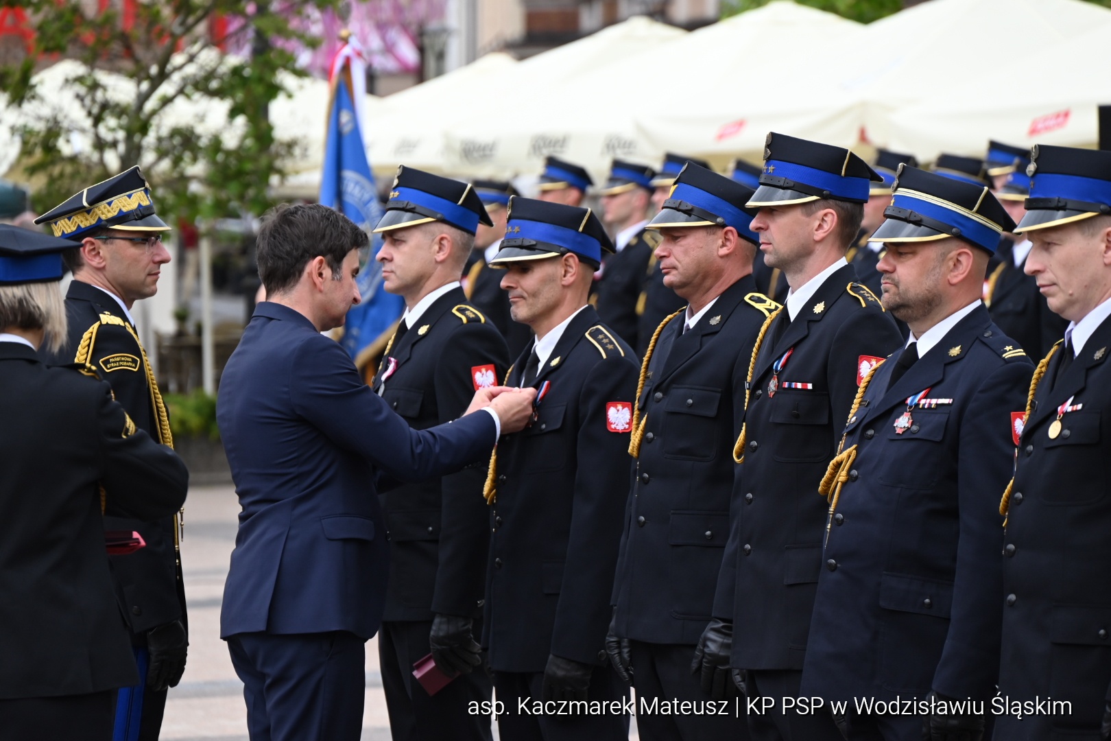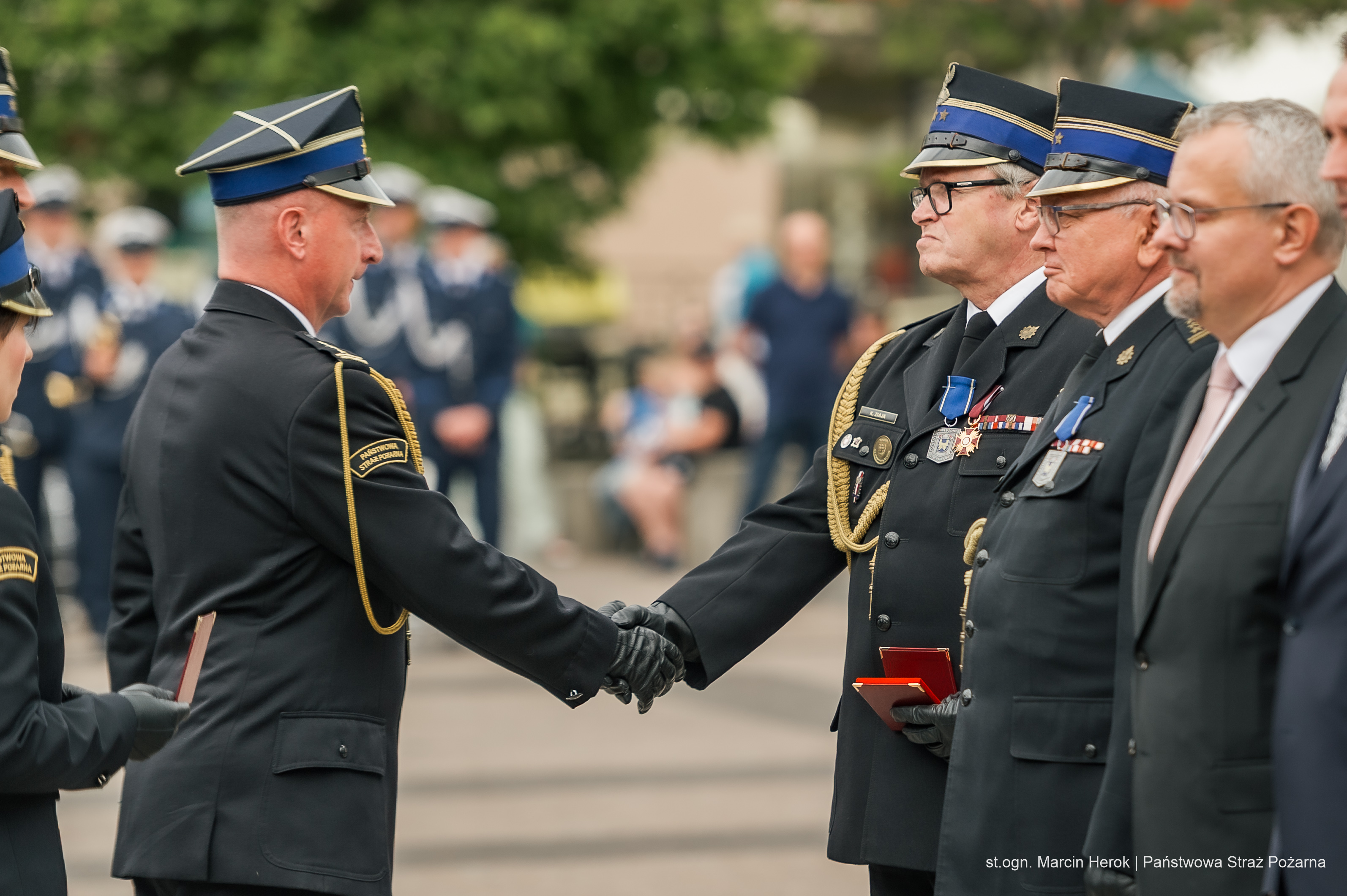Kolejną częścią uroczystości było wyróżnienie 3 funkcjonariuszy PSP odznakami „Zasłużony dla Ochrony Przeciwpożarowej" oraz 3 osób odznakami Świętego Floriana „Za Zasługi dla Społeczności Lokalnej”. Odznaki, w imieniu Ministra Spraw Wewnętrznych i Administracji, wręczyli Komendant Główny PSP nadbryg. Wojciech Kruczek oraz Śląski Komendant Wojewódzki PSP st. bryg. Damian Legierski.