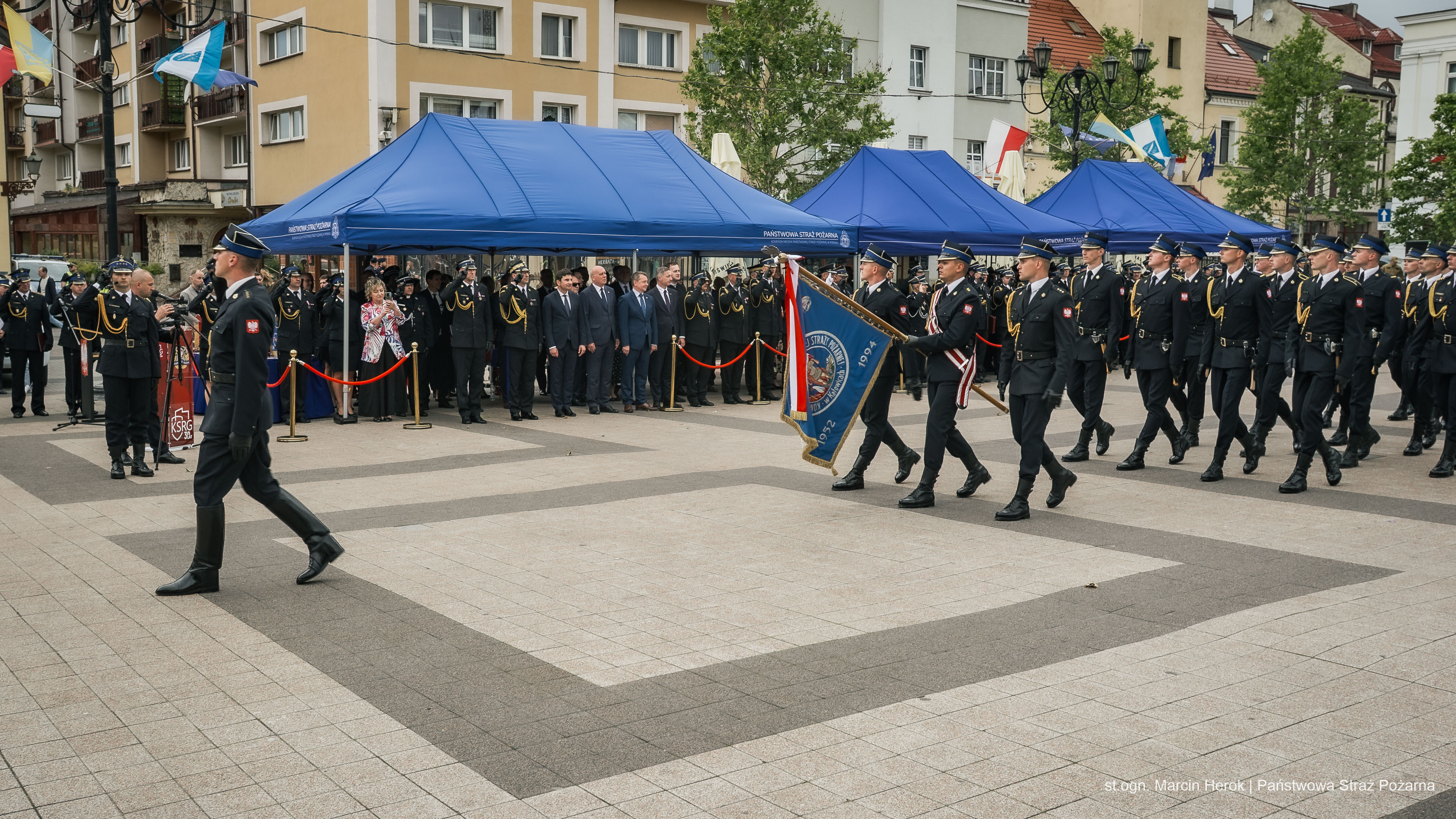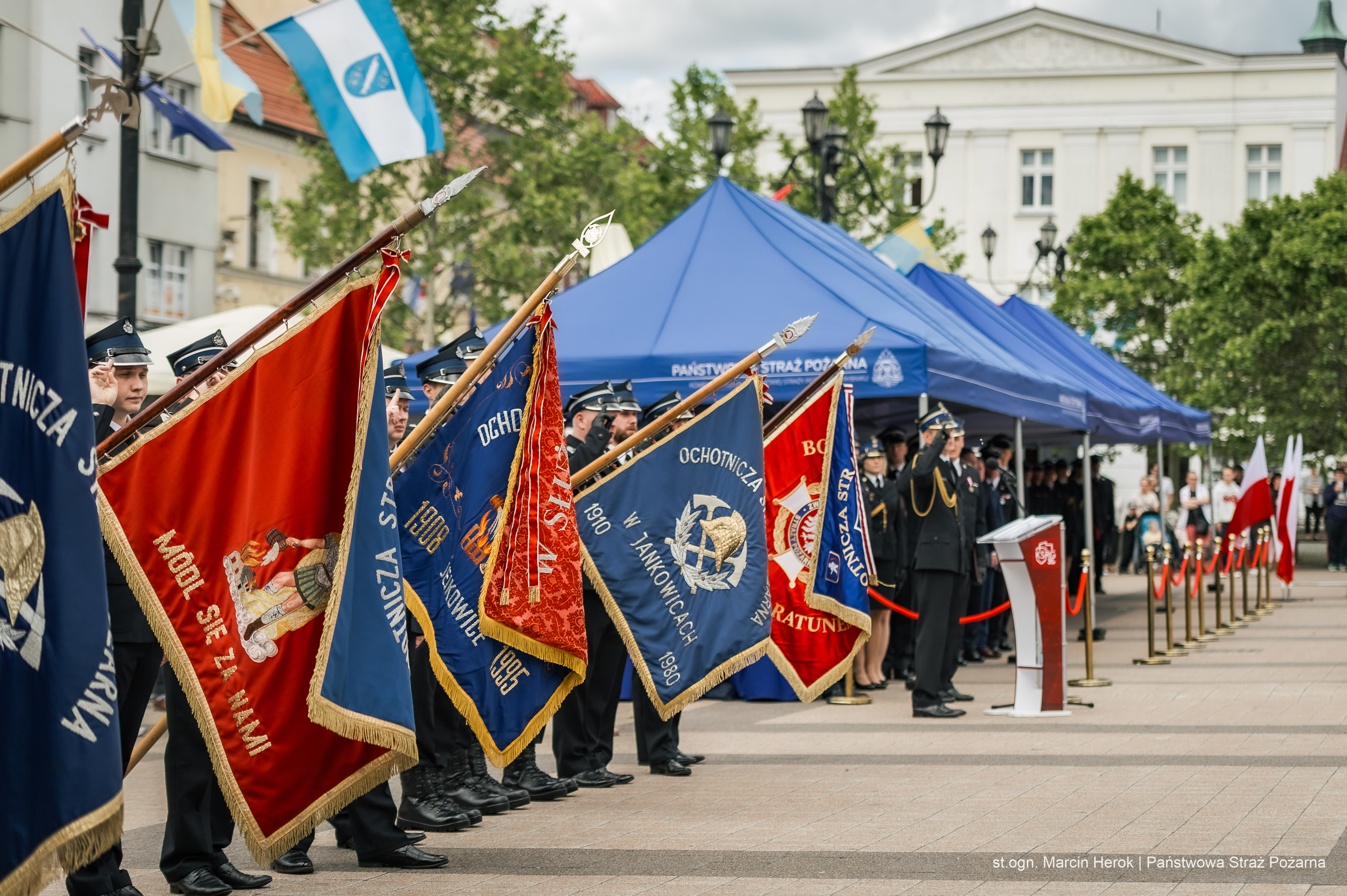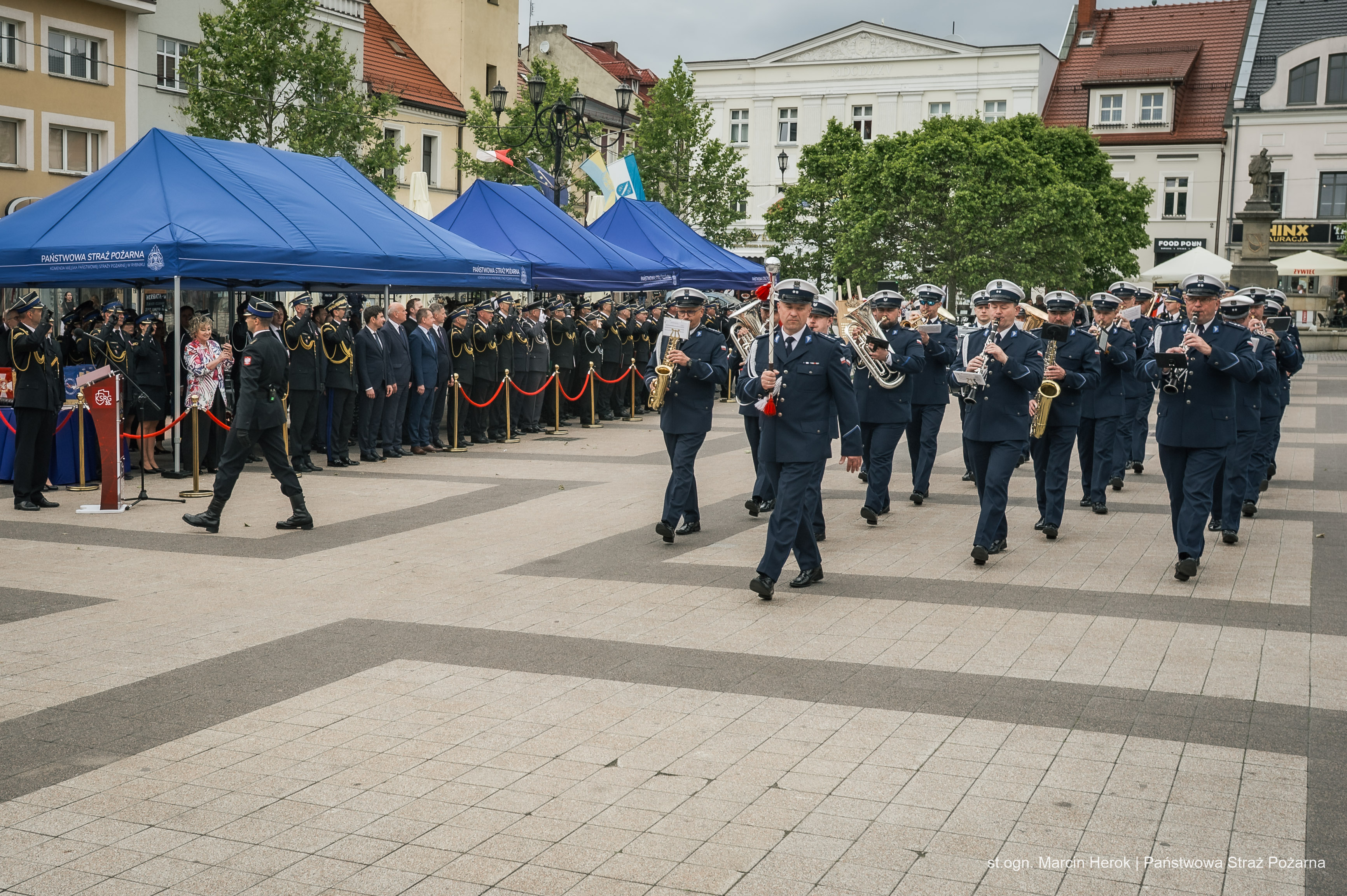 Uroczysty apel rozpoczął się złożeniem meldunku przez dowódcę uroczystości st. kpt. Mateusza Kuśkę, Komendantowi Głównemu PSP nadbryg. Wojciechowi Kruczkowi, który dokonał przeglądu i powitania pododdziałów.