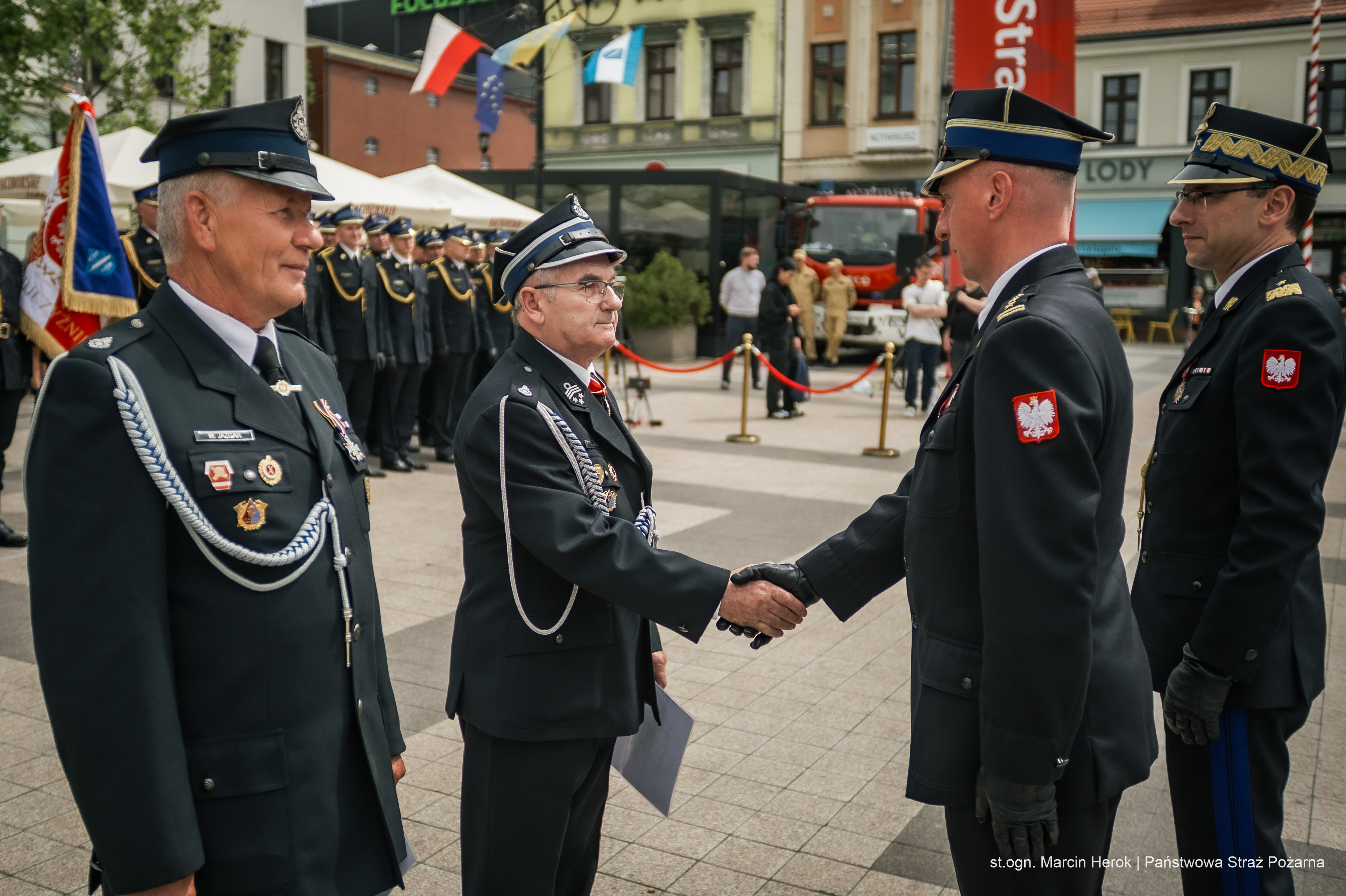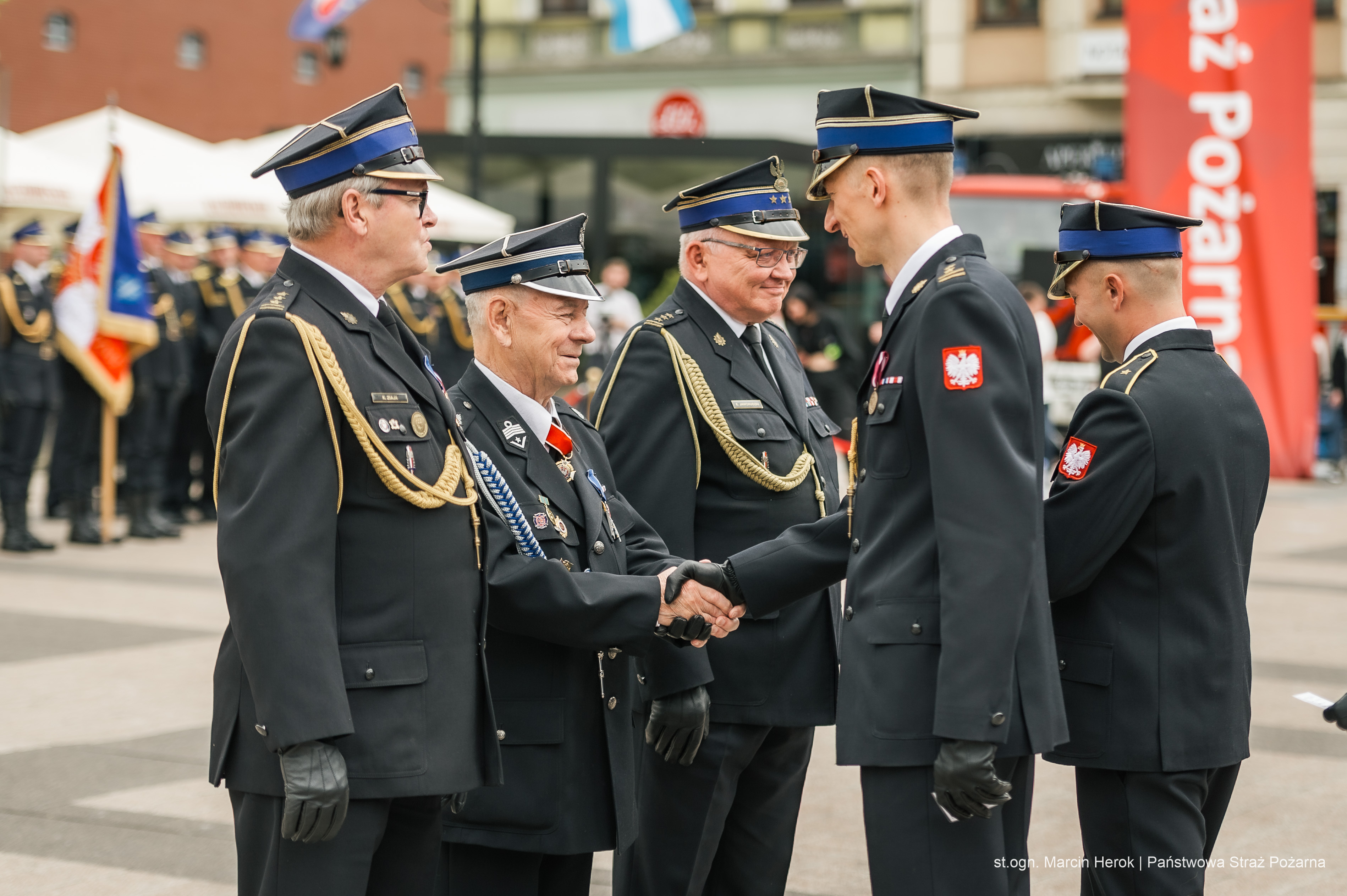 W dalszej części uroczystości, w ramach Obchodów Dnia Strażaka wręczono, nadane przez Prezydenta Rzeczpospolitej Polskiej Krzyże Świętego Floriana – 6 zasłużonym członkom Ochotniczych Straży Pożarnych oraz 26 Medali za Długoletnią Służbę. Wręczenia odznaczeń dokonali Wojewoda Śląski Pan Marek Wójcik oraz Komendant Główny PSP nadbryg. Wojciech Kruczek.