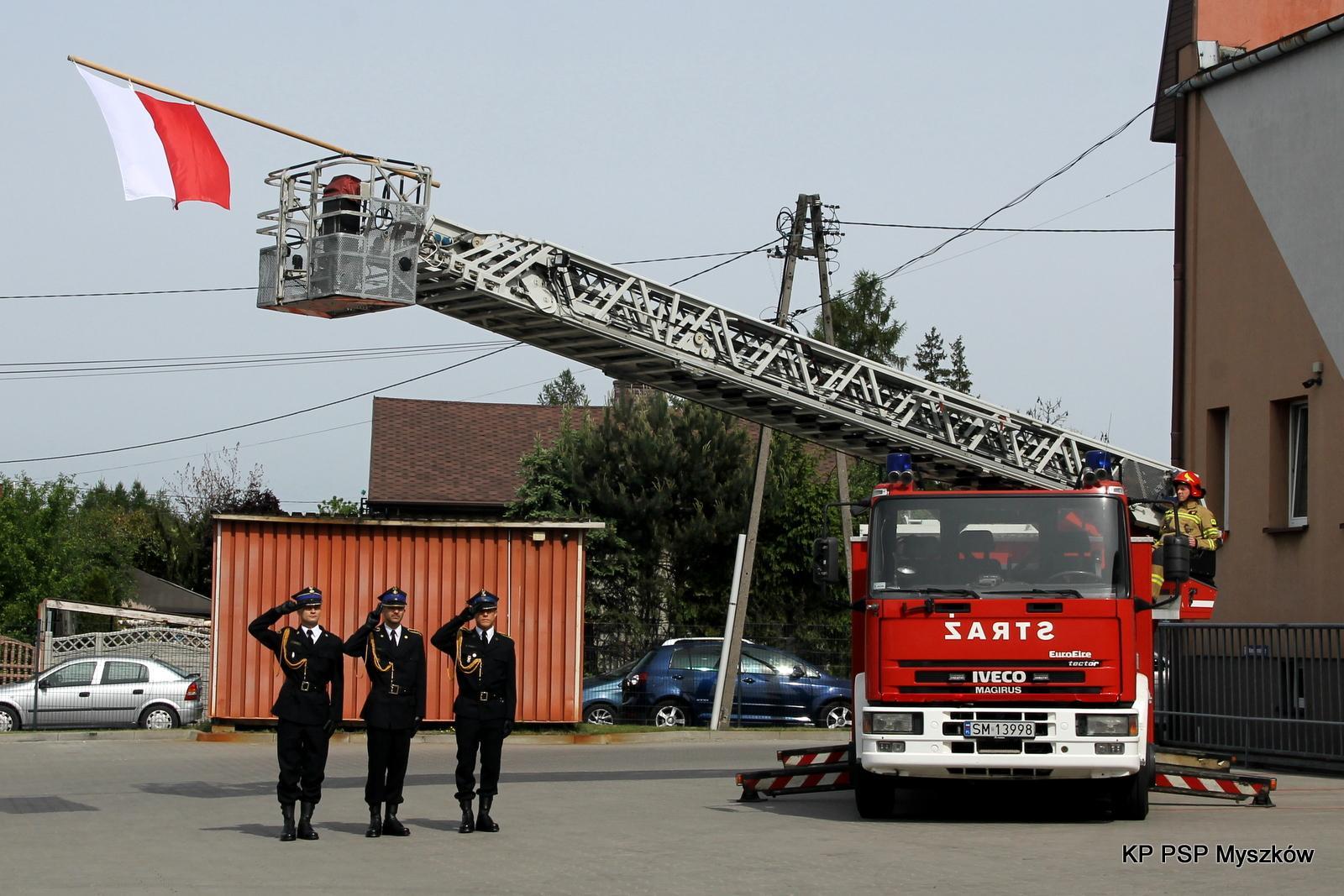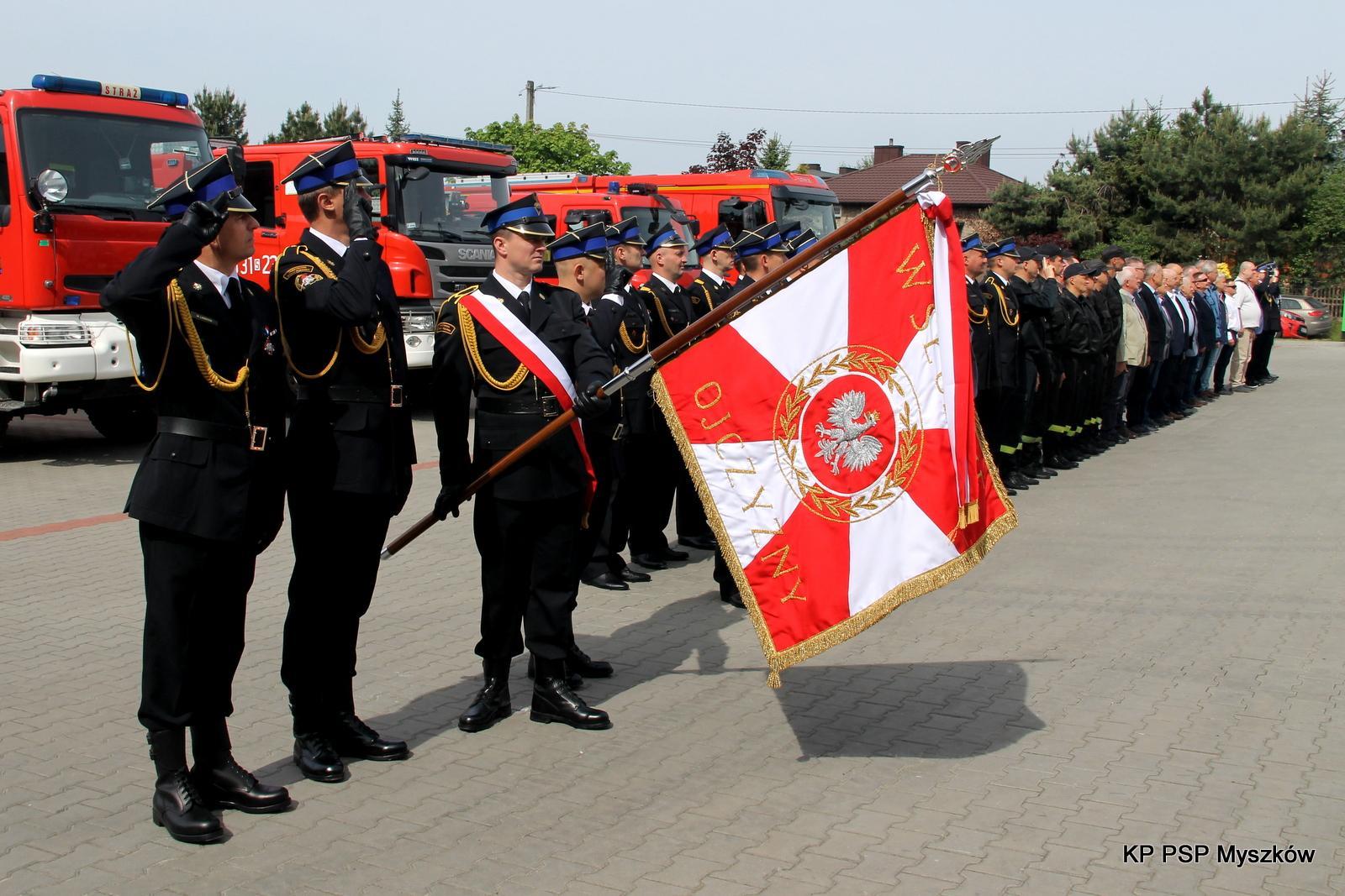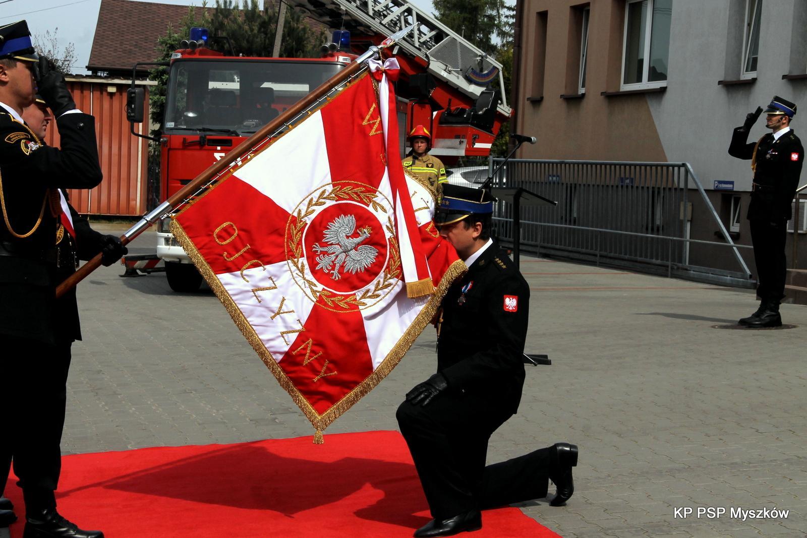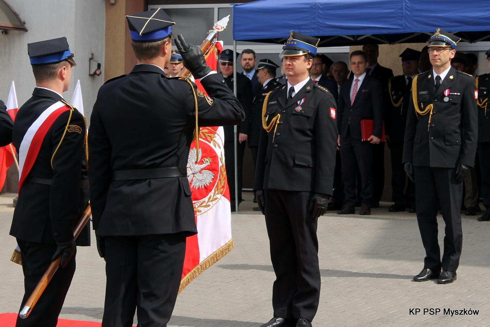 Uroczystość rozpoczęła się od złożenia meldunku Śląskiemu Komendantowi Wojewódzkiemu Państwowej Straży Pożarnej st. bryg. Wojciechowi Kruczkowi przez dowódcę uroczystości kpt. Przemysława Zenderowskiego. Po dokonaniu przeglądu pododdziałów nastąpiło podniesienie flagi państwowej oraz odśpiewanie Hymnu Państwowego. Kolejnym elementem uroczystości było odczytanie aktu powołania st. kpt. Grzegorza Paul na stanowisko Komendanta Powiatowego Państwowej Straży Pożarnej w Myszkowie, który oddał honory sztandarowi Komendy oraz złożył meldunek Śląskiemu Komendantowi Wojewódzkiemu PSP o przejęciu obowiązków. Komendant Powiatowy Państwowej Straży Pożarnej w Myszkowie st. kpt. Grzegorz Paul powitał wszystkich przybyłych gości.