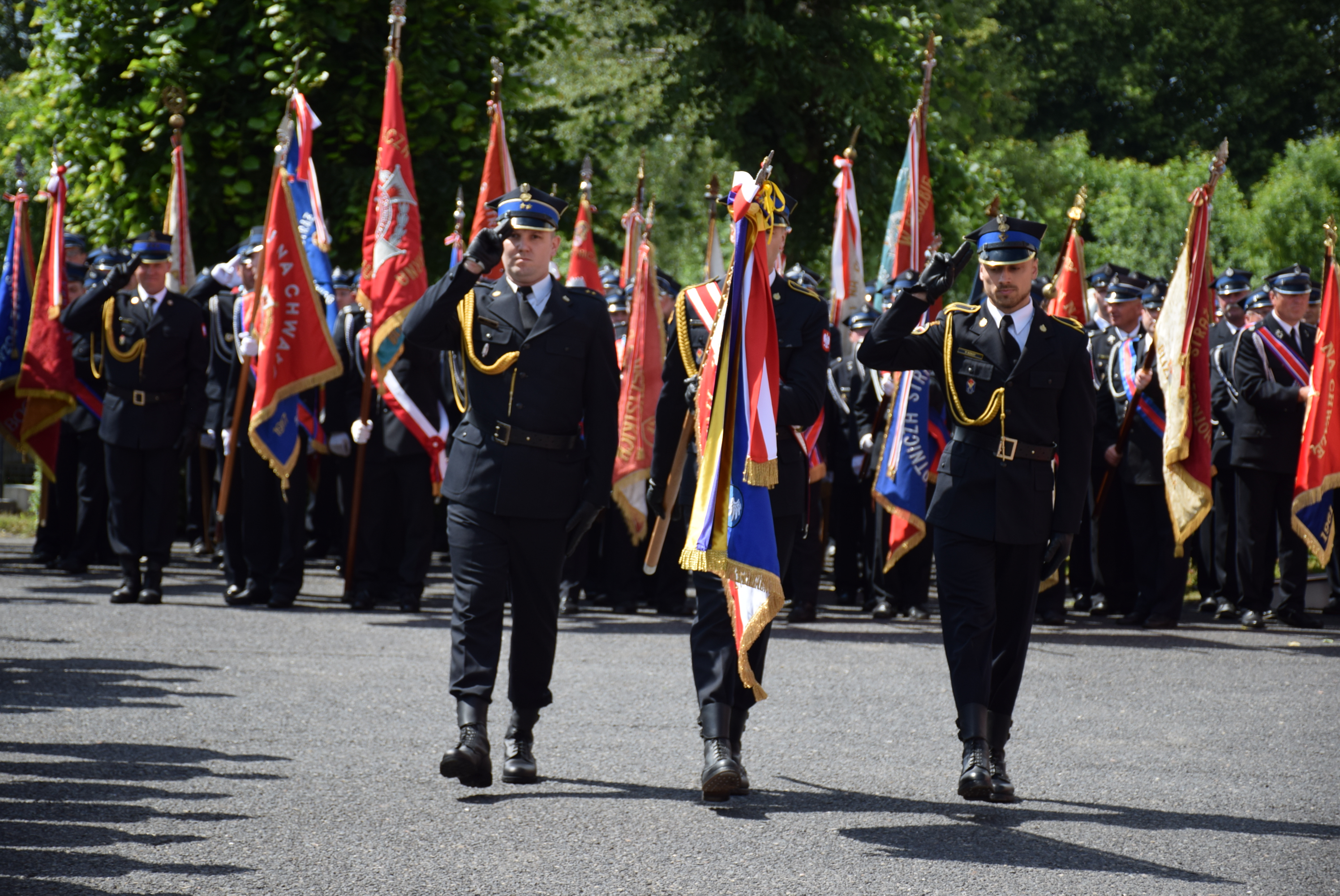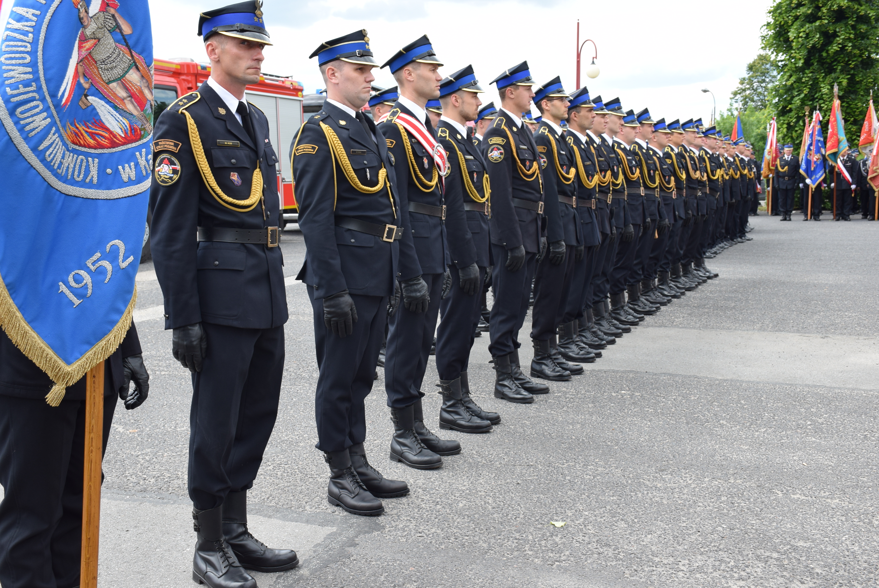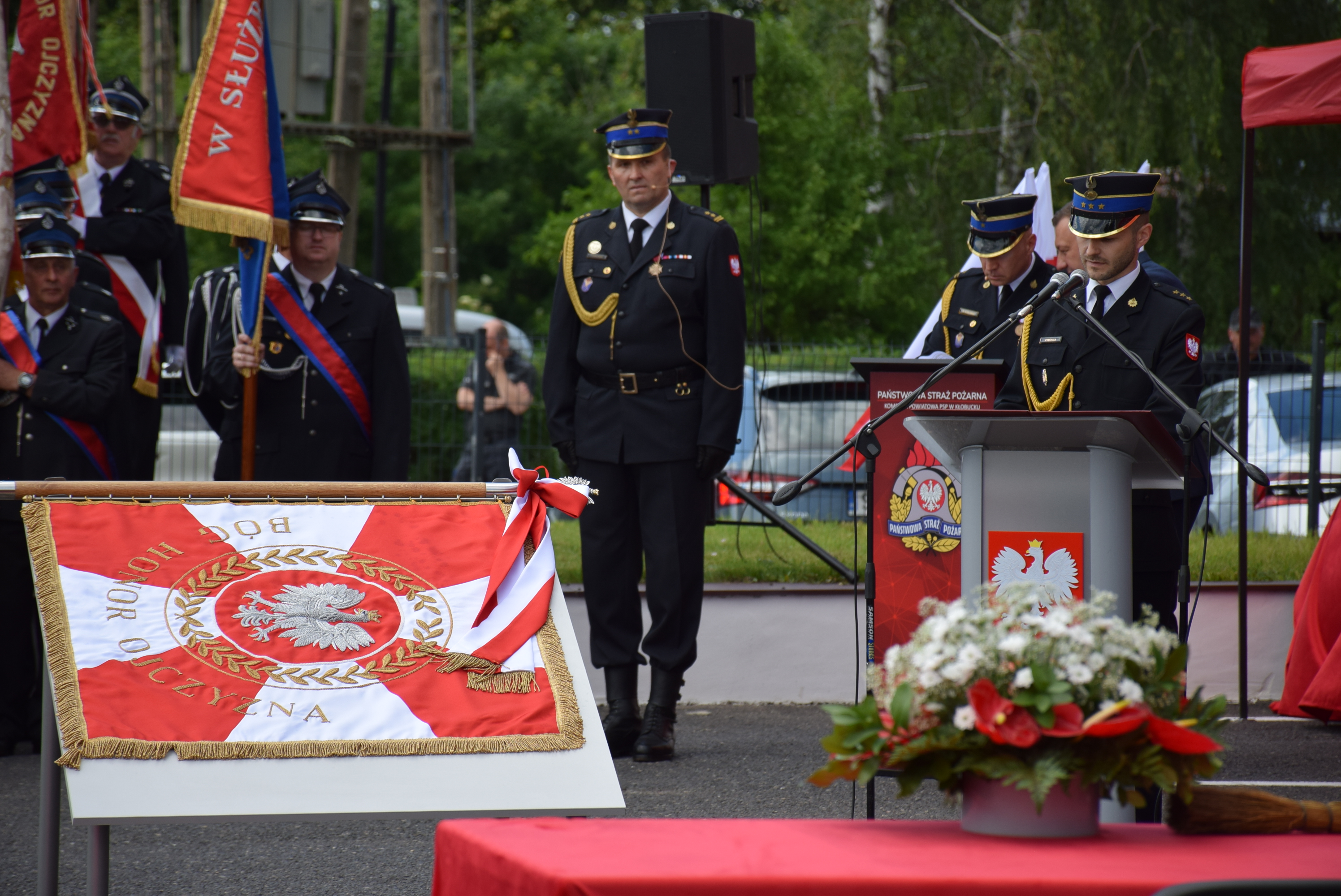Uroczystość uświetnili: Śląska Kompania Honorowa Państwowej Straży Pożarnej wraz z pocztem sztandarowym Komendy Wojewódzkiej Państwowej Straży Pożarnej w Katowicach, poczty sztandarowe Ochotniczych Straży Pożarnych RP z terenu powiatu kłobuckiego oraz Orkiestra Komendy Wojewódzkiej Policji.