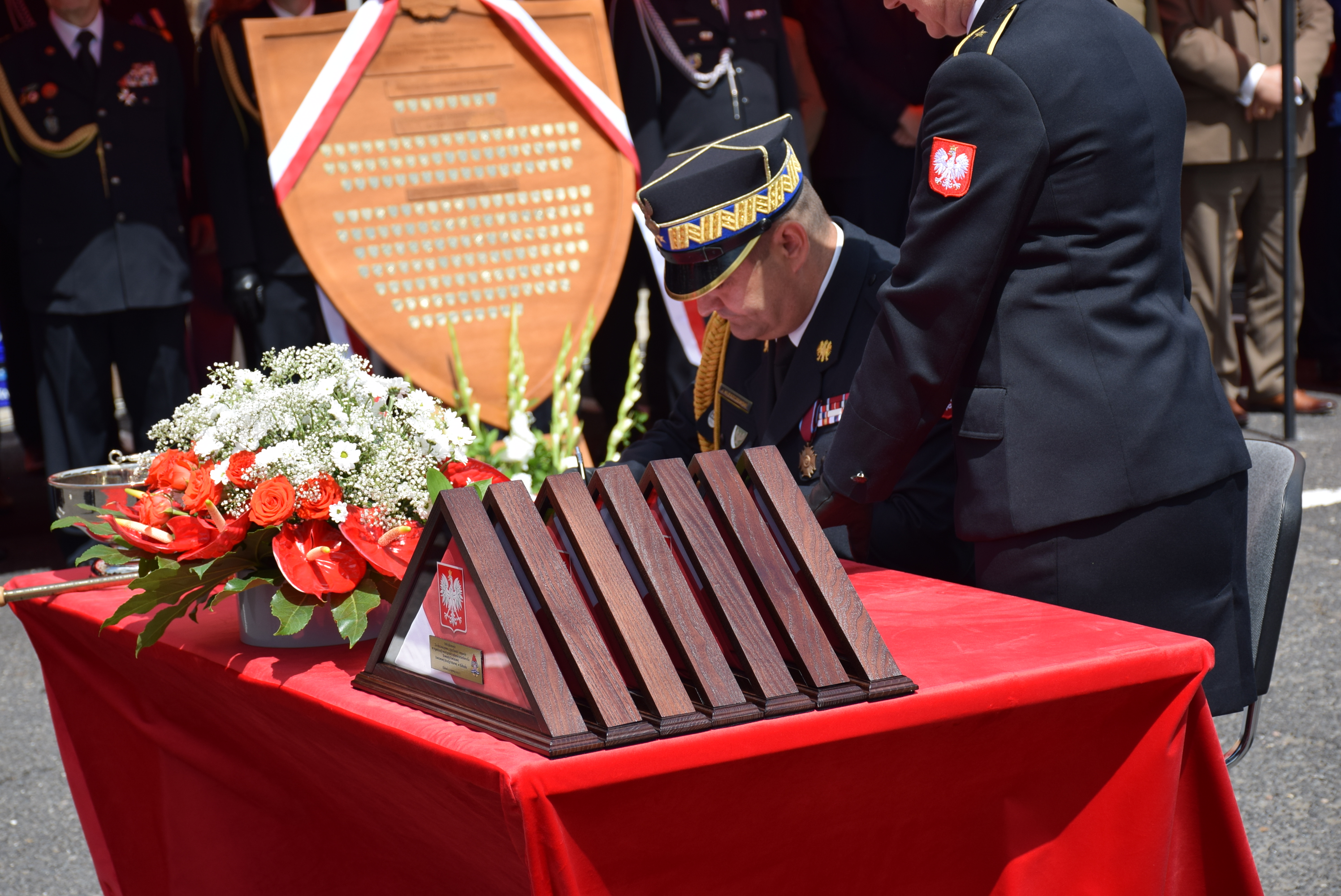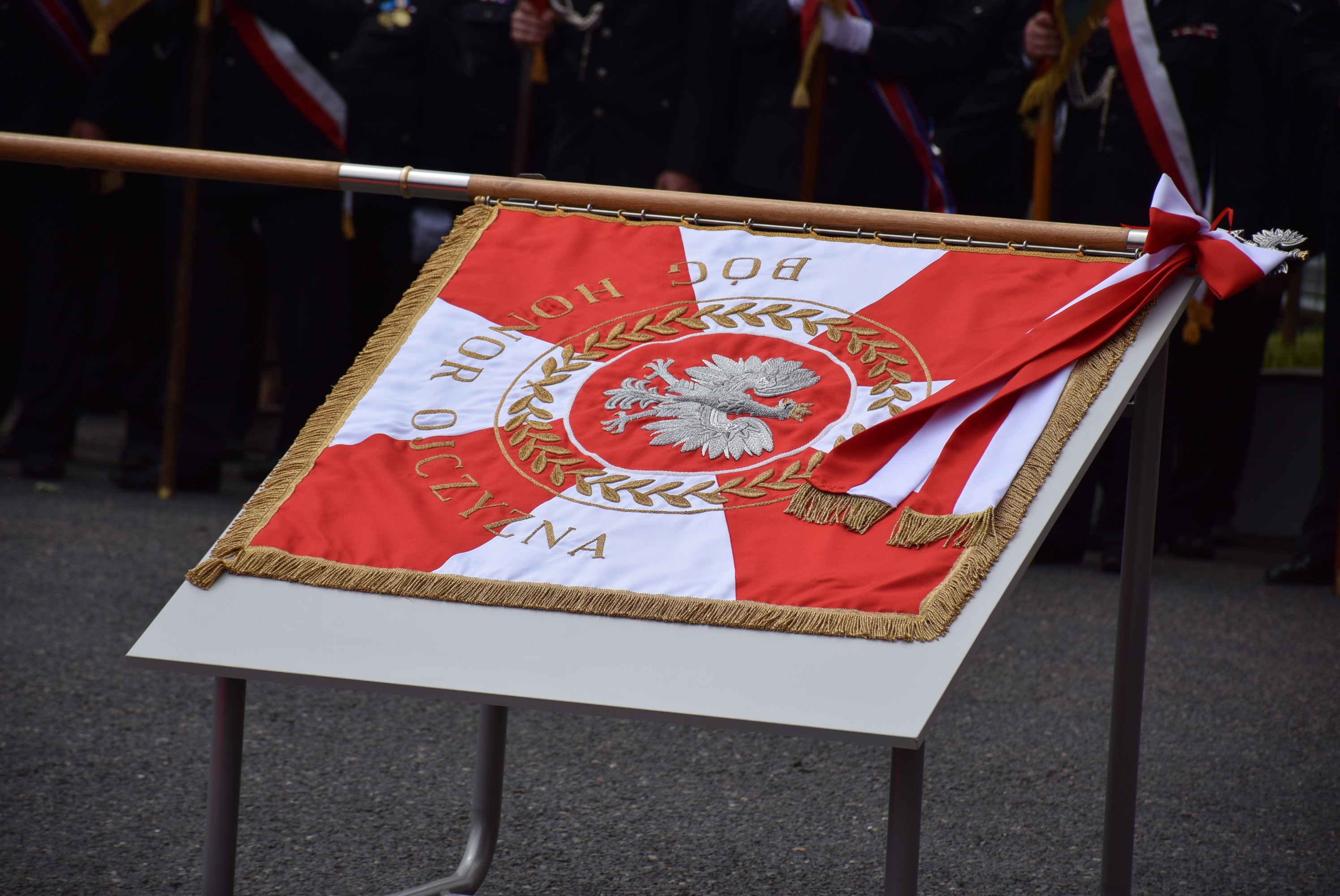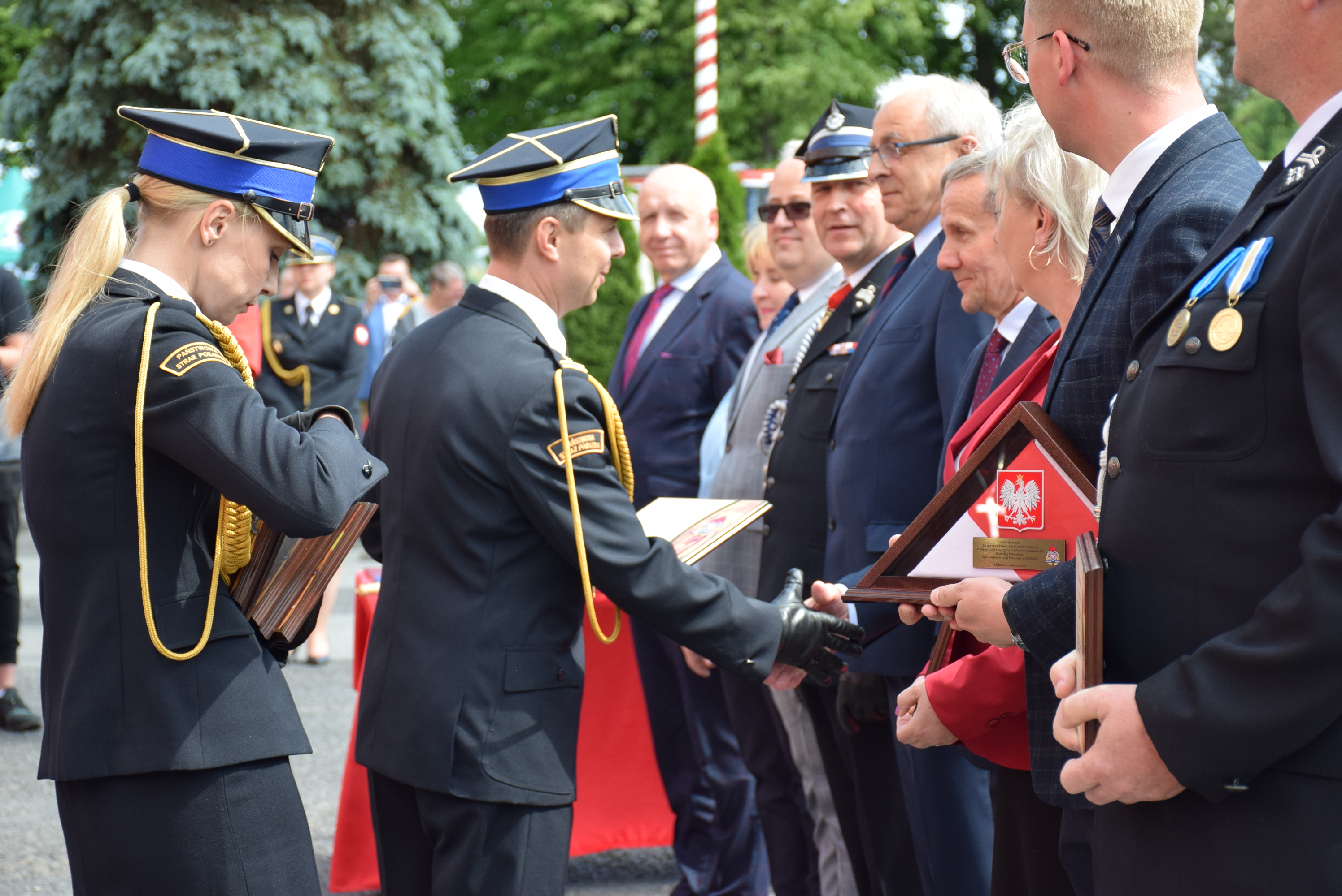Uroczystość uświetnili: Śląska Kompania Honorowa Państwowej Straży Pożarnej wraz z pocztem sztandarowym Komendy Wojewódzkiej Państwowej Straży Pożarnej w Katowicach, poczty sztandarowe Ochotniczych Straży Pożarnych RP z terenu powiatu kłobuckiego oraz Orkiestra Komendy Wojewódzkiej Policji.