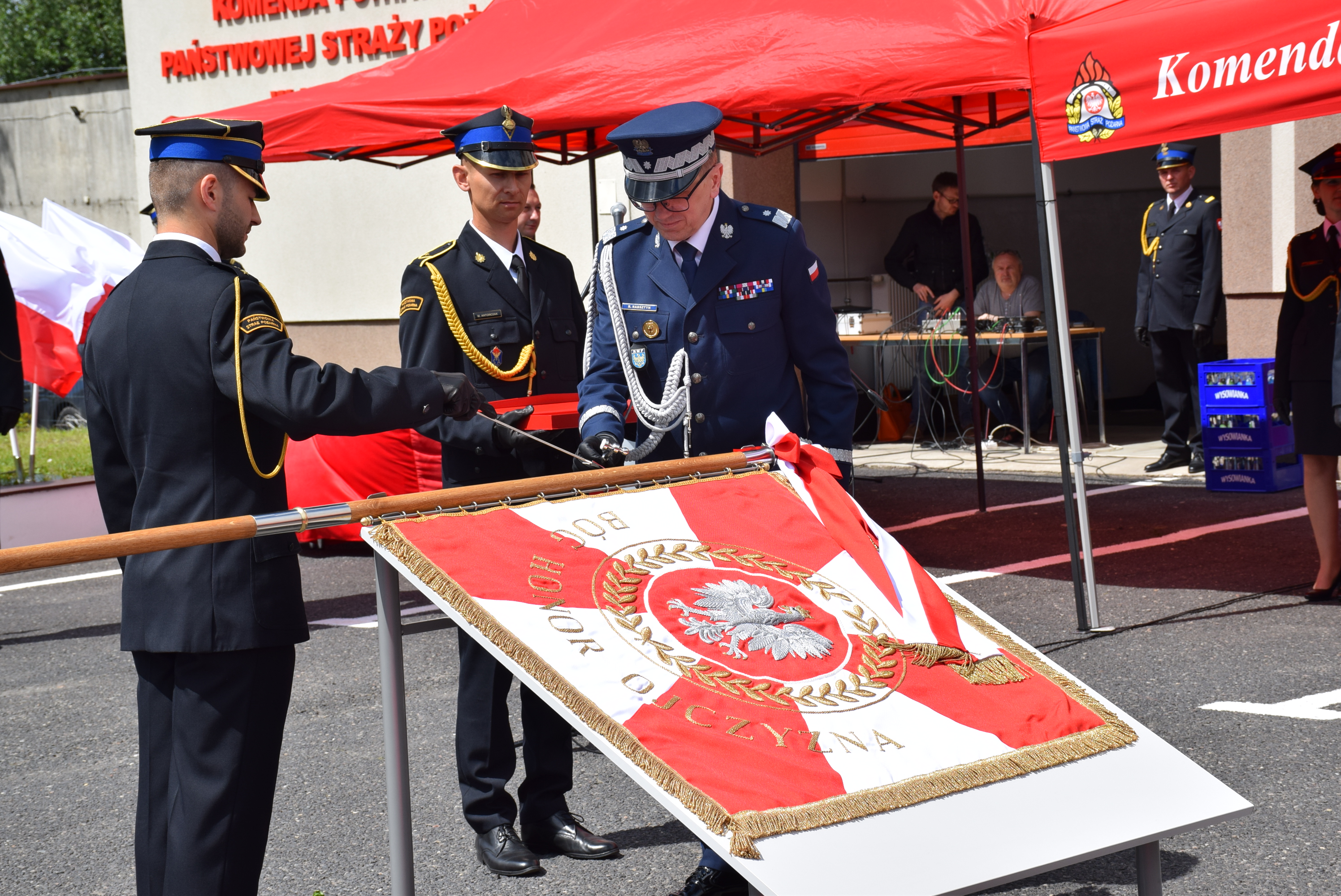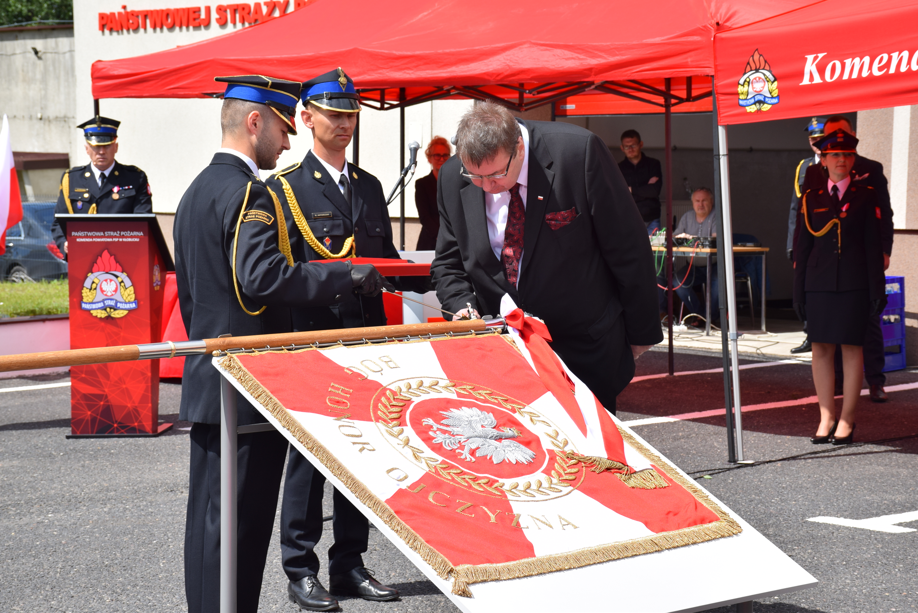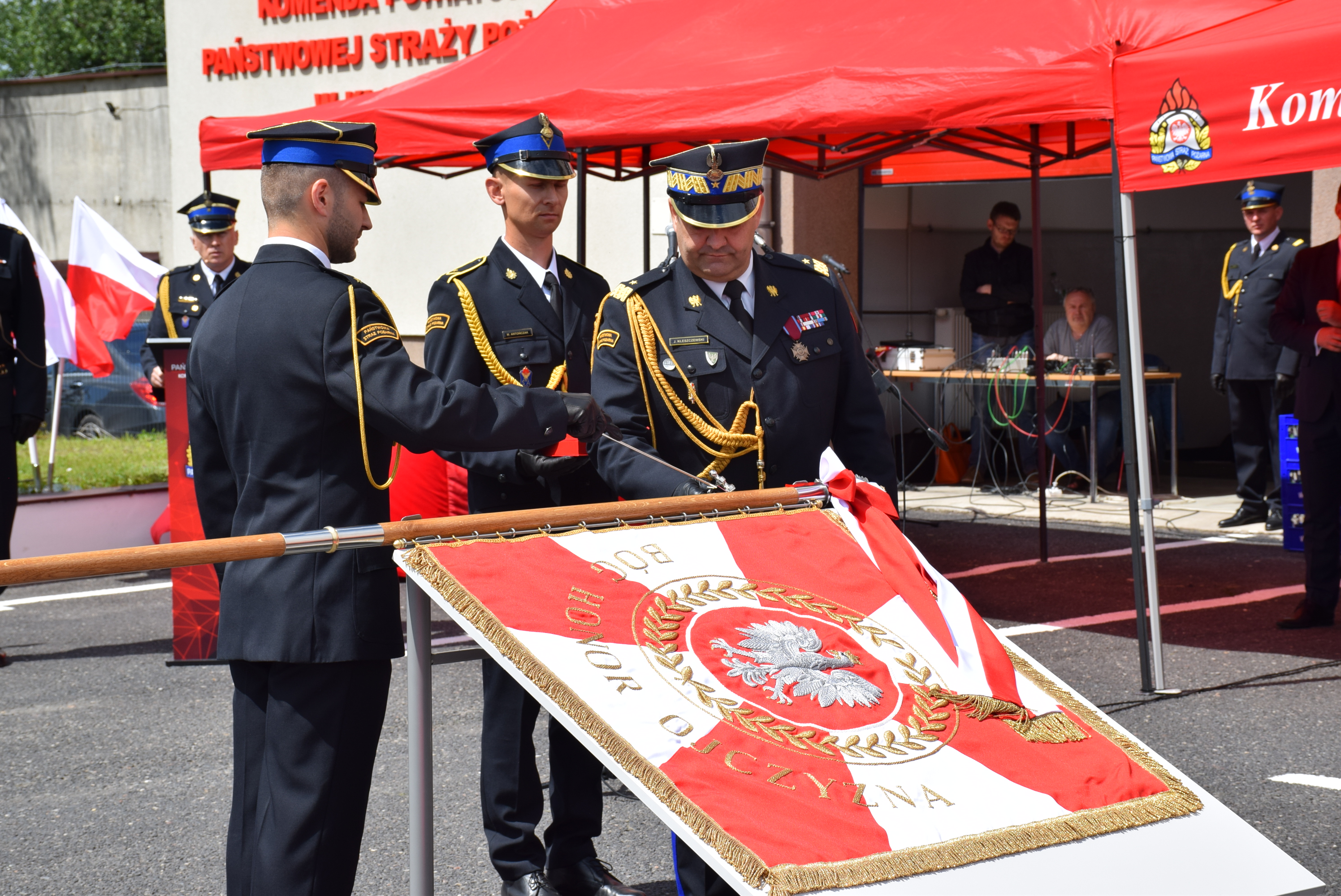 Ceremonia nadania sztandaru została poprzedzona wbiciem pamiątkowych gwoździ w jego drzewiec, wpisami do księgi pamiątkowej oraz błogosławieństwem. W imieniu komendy sztandar przyjął komendant powiatowy PSP Kłobucku mł. bryg. Karol Wers, przekazując go pocztowi sztandarowemu.