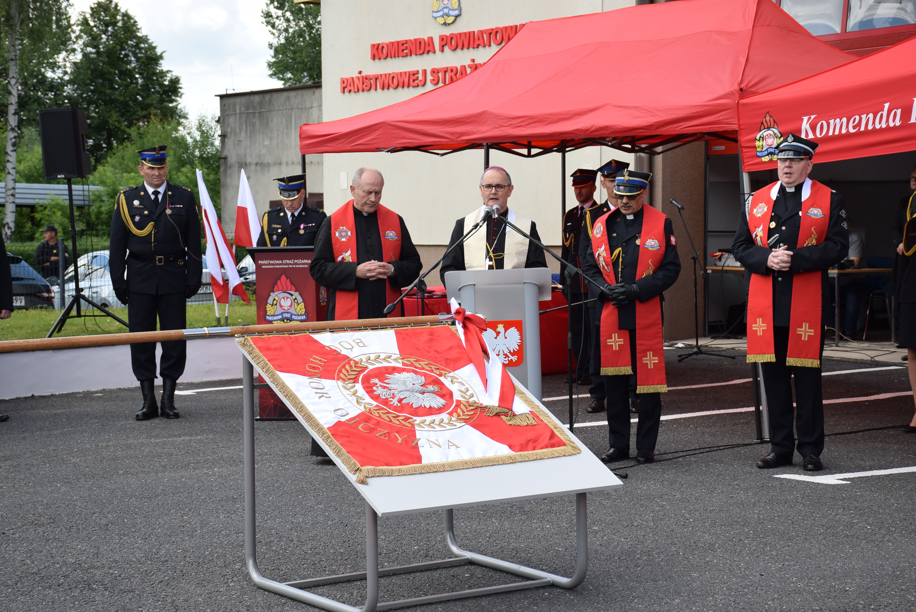 Poświęcenia pojazdów dokonał bp Andrzej Przybylski – Biskup Archidiecezji Częstochowskiej w asyście kapelanów księdza mł. bryg. Adama Glajcara kapelana krajowego strażaków, księdza Sławomira Galasińskiego - kapelana strażaków archidiecezji częstochowskiej oraz księdza Jacka Kołodziejczyka – kapelana kłobuckich strażaków.