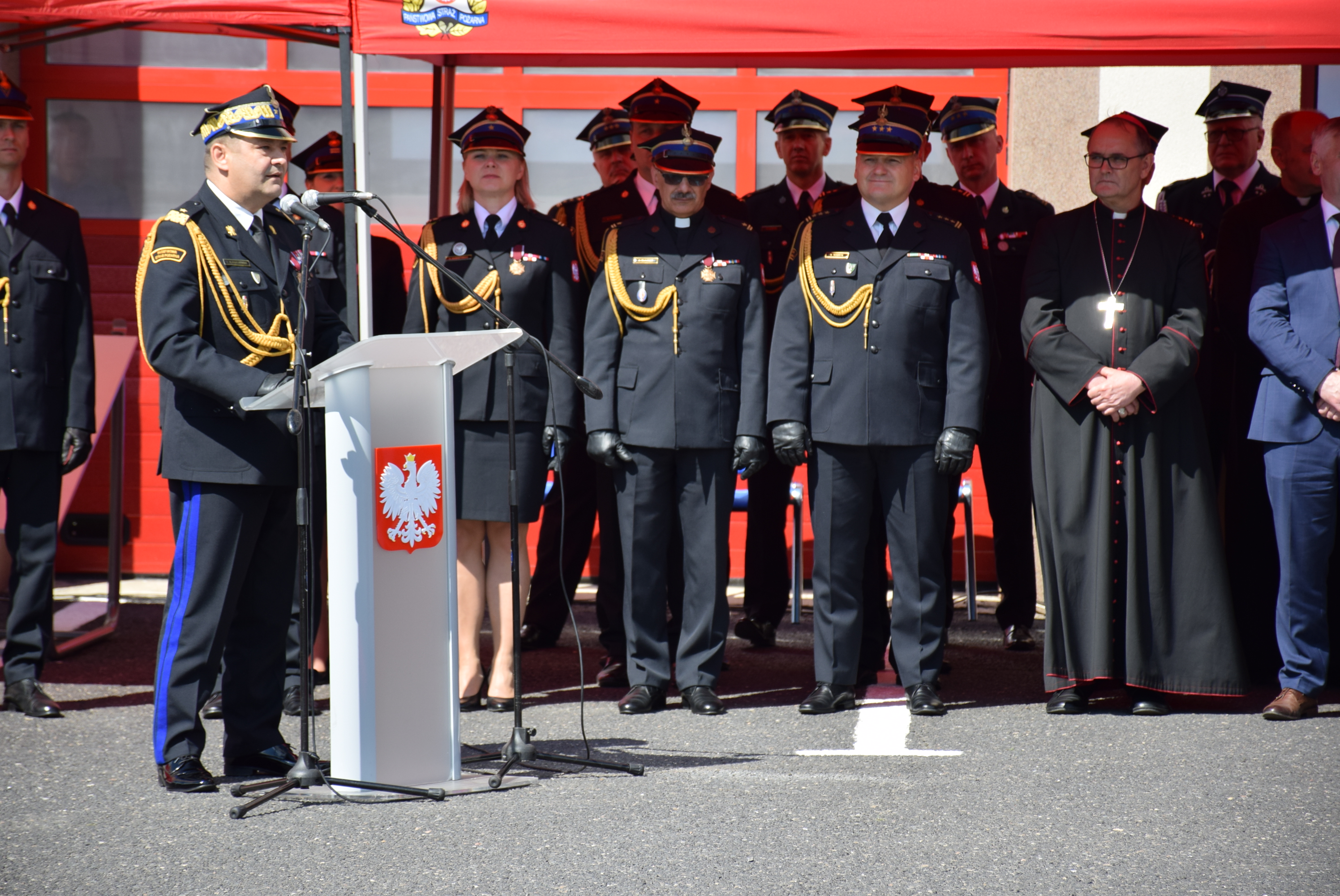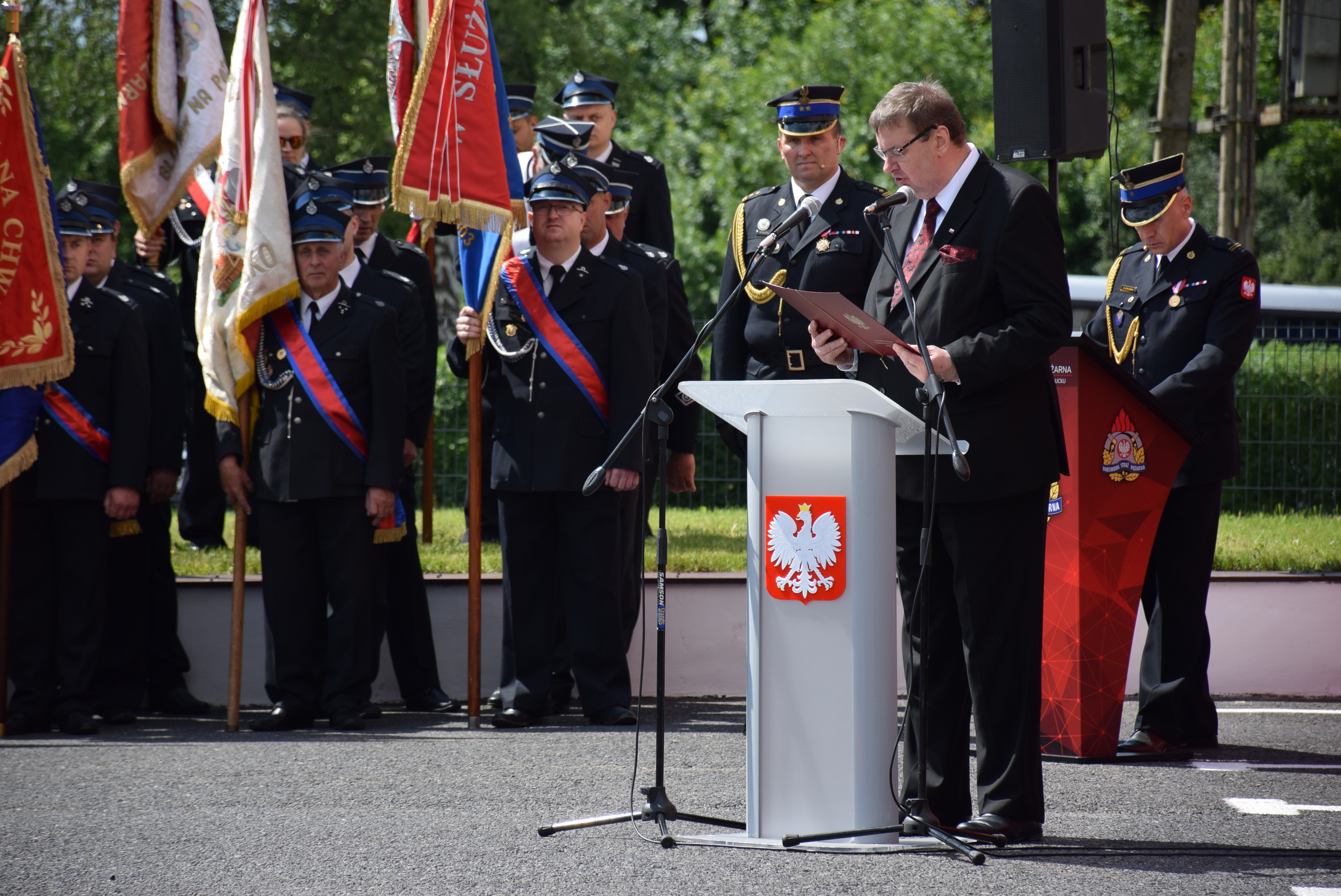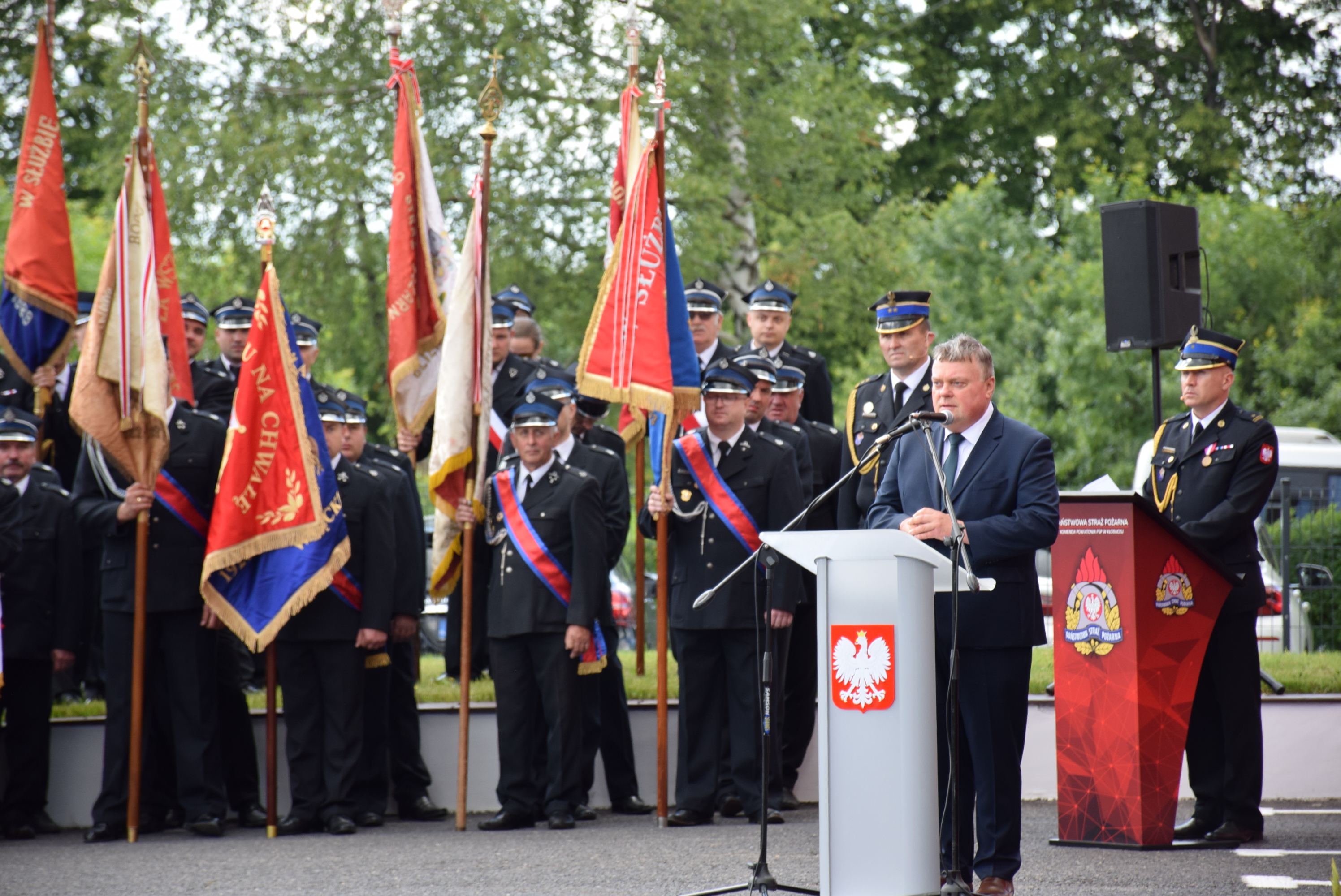 W swoim wystąpieniu śląski komendant wojewódzki PSP nadbryg. Jacek Kleszczewski podkreślił jak ważne są wzajemne wsparcie i szacunek okazywane sobie przez strażaków Państwowej Straży Pożarnej i Ochotniczych Straży Pożarnych, którzy zawsze stoją ramię w ramię zarówno podczas akcji jak i uroczystości i wspólnie dbają o bezpieczeństwo obywateli.