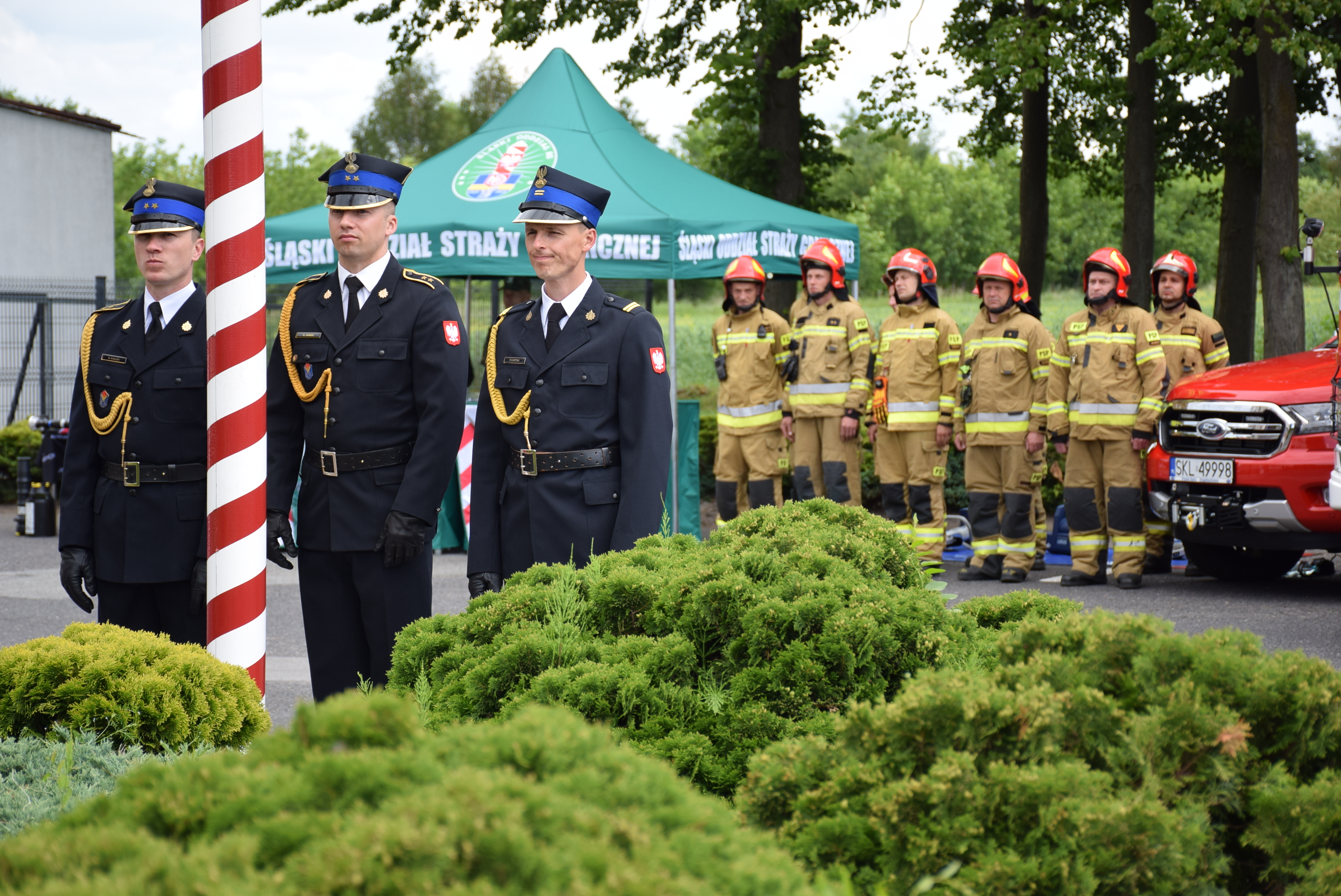 Uroczystości rozpoczęły się od złożenia meldunku śląskiemu komendantowi wojewódzkiemu PSP nadbryg. Jackowi Kleszczewskiemu, który dokonał przeglądu i powitania pododdziałów. Następnie minutą ciszy uczczono wszystkich zmarłych strażaków, górników Kopalni Węgla Kamiennego „Pniówek” i „Zofiówka” oraz ofiary wojny w Ukrainie.