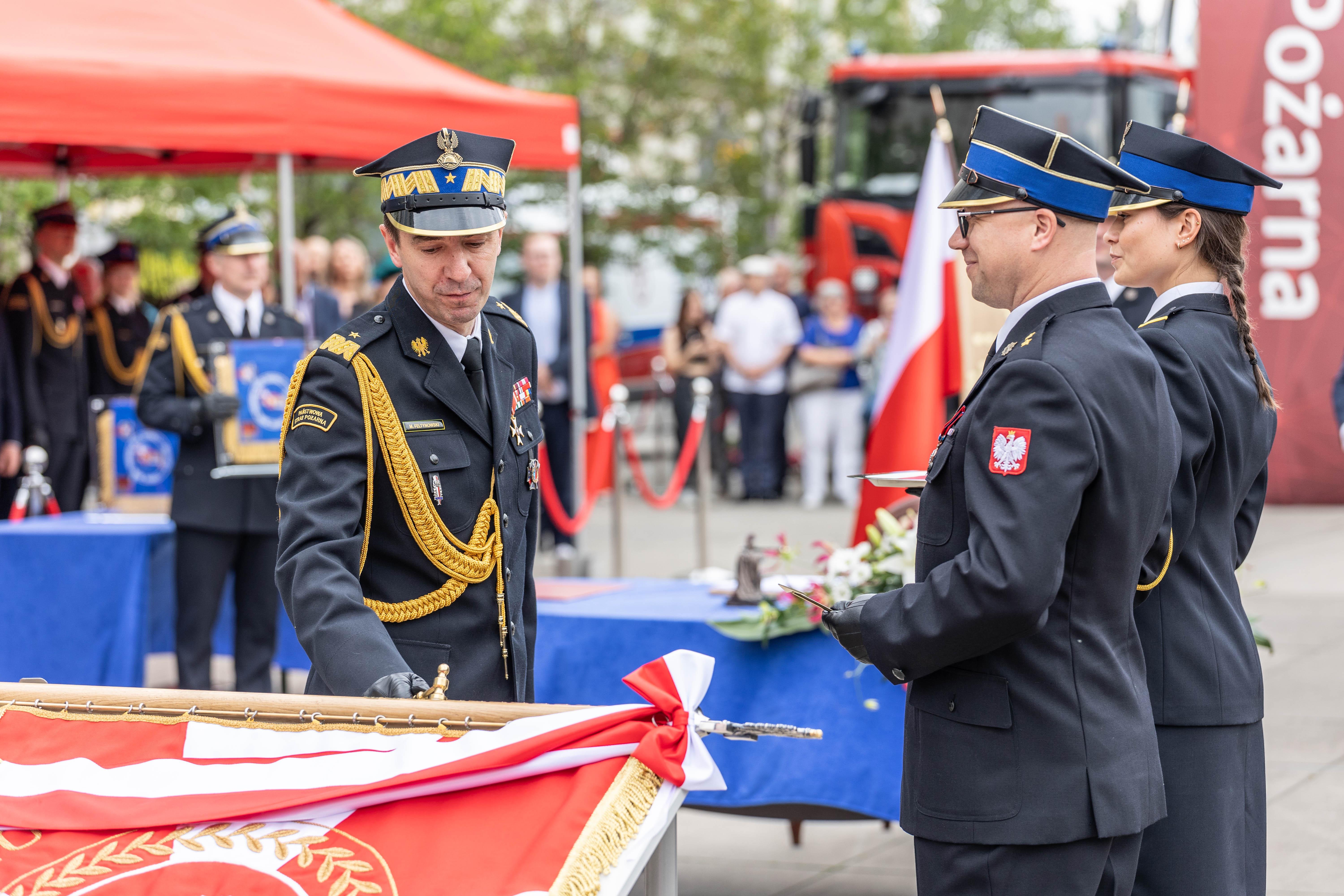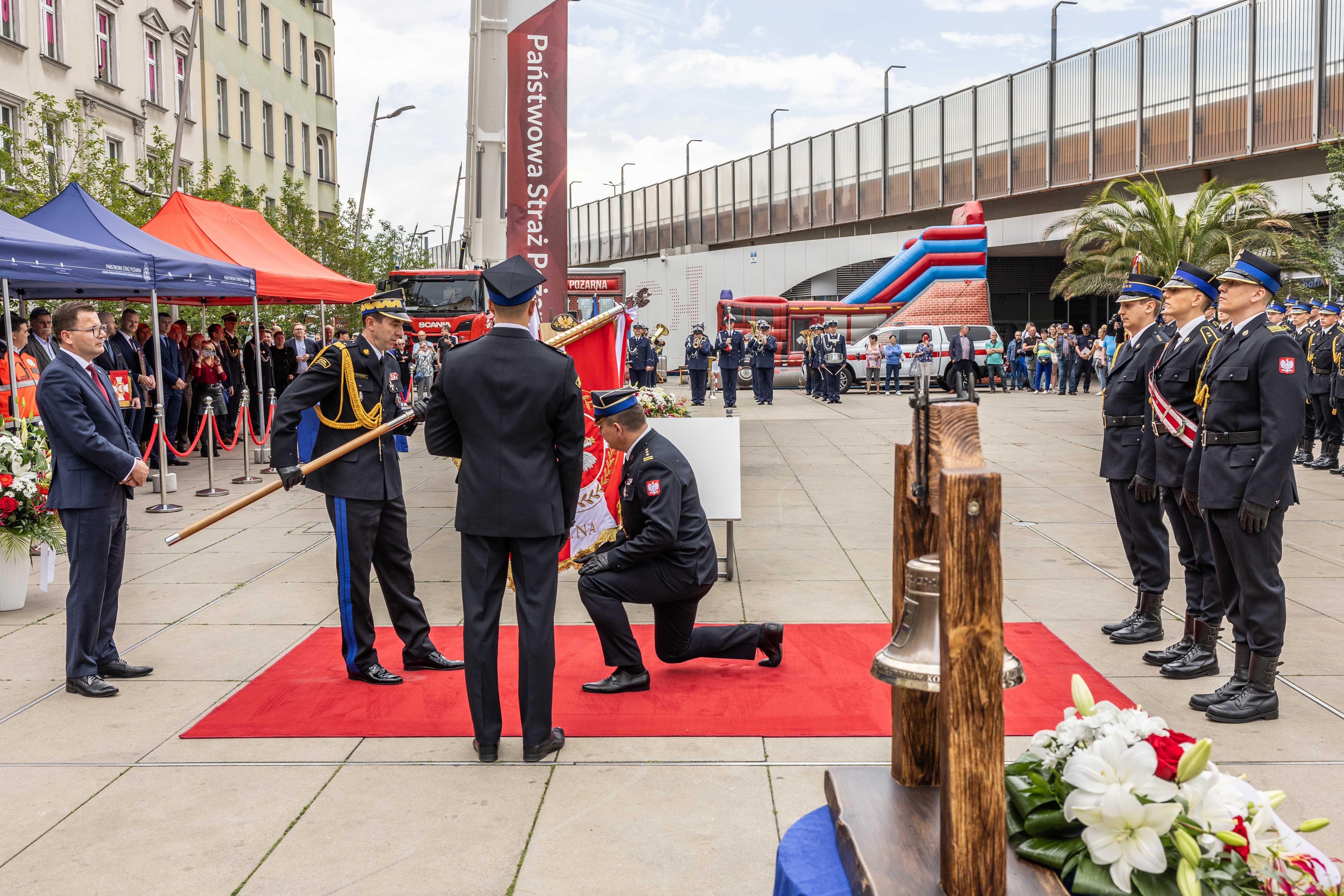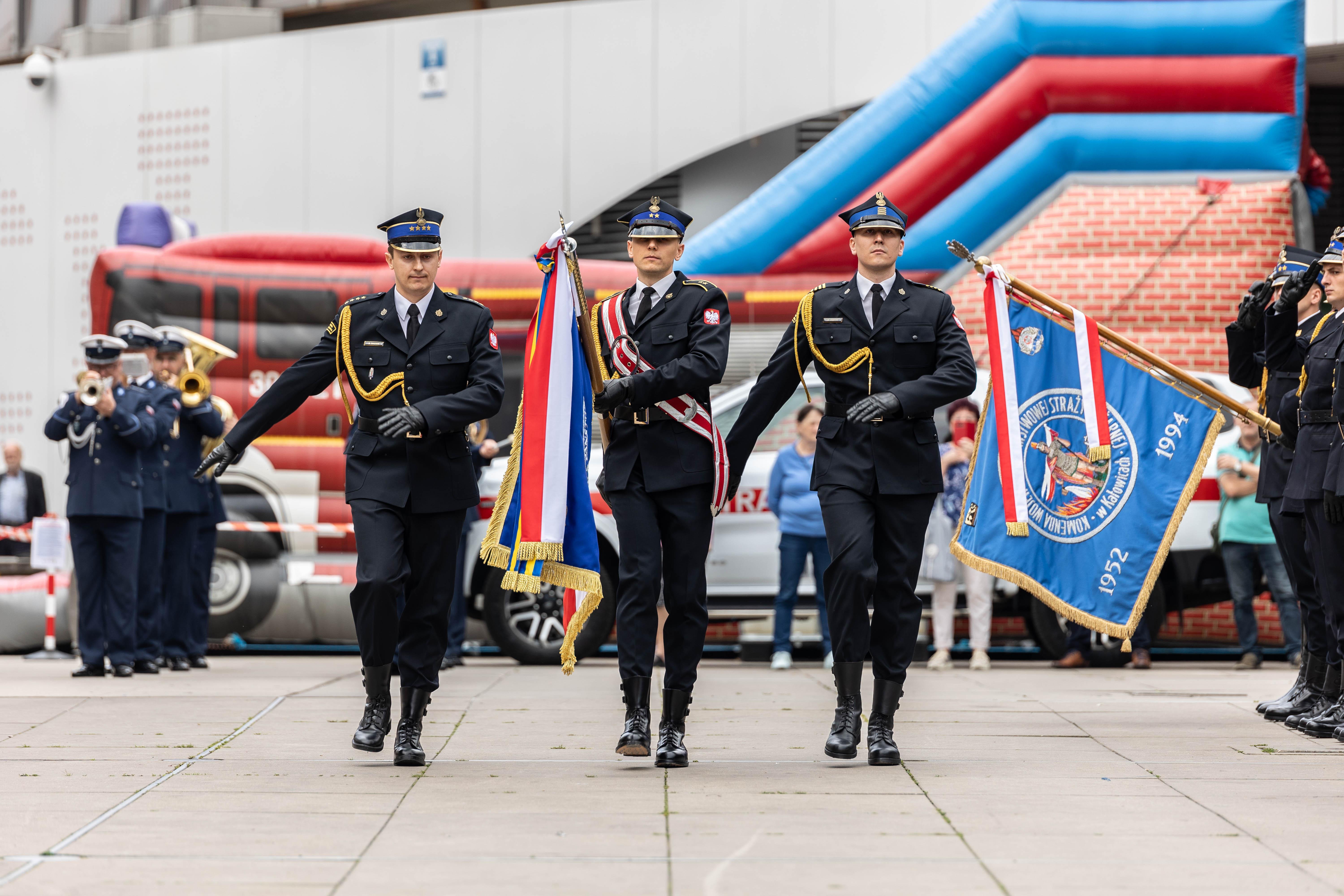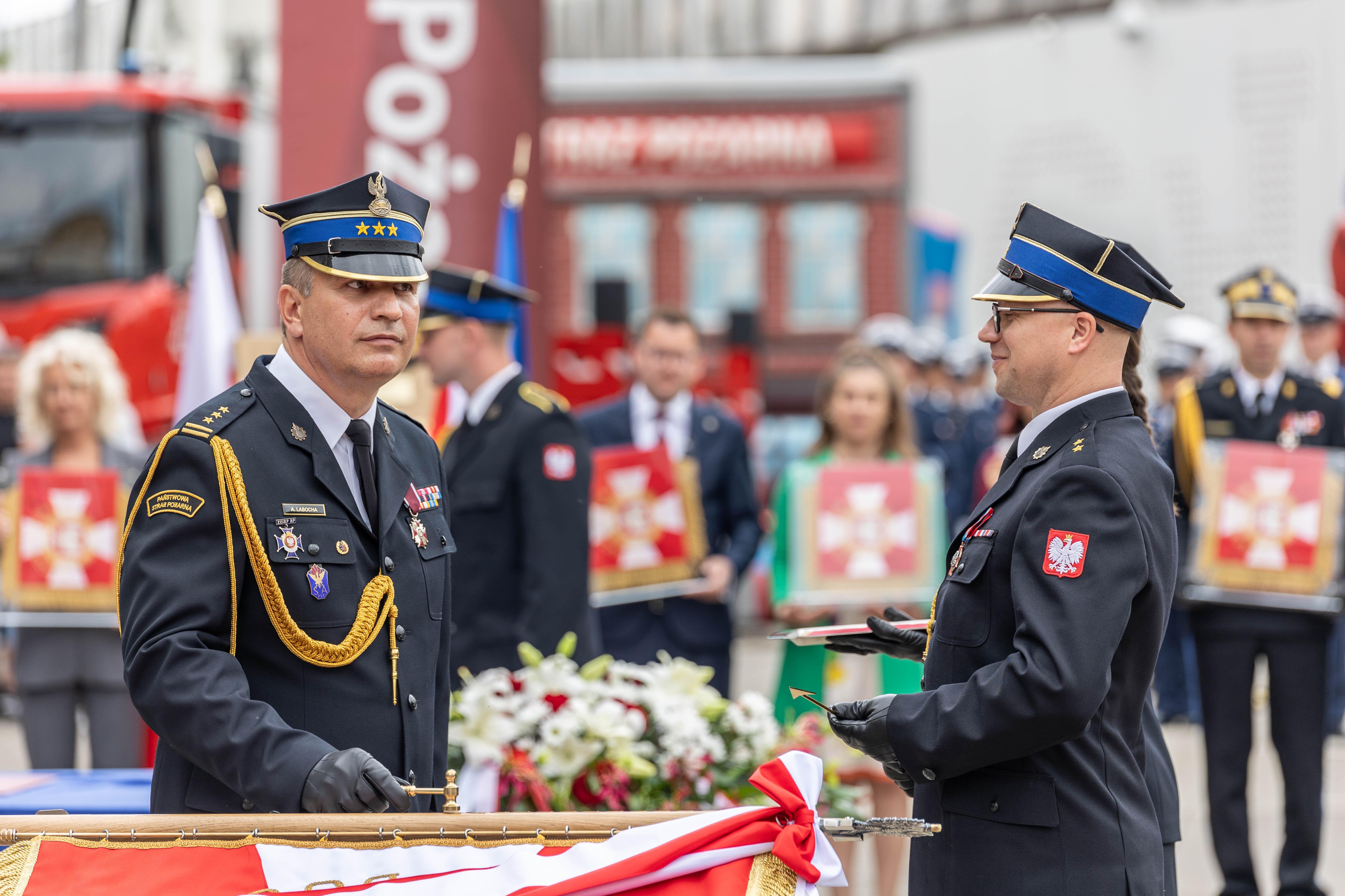W imieniu Komendy sztandar przyjął Komendant Miejski Państwowej Straży Pożarnej w Chorzowie st. bryg. Arkadiusz Labocha, przekazując go pocztowi sztandarowemu Komendy.