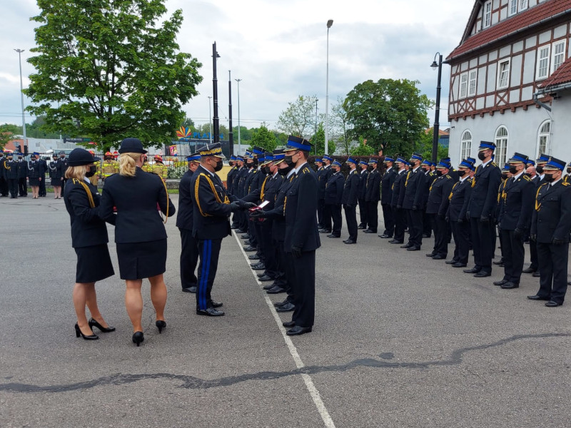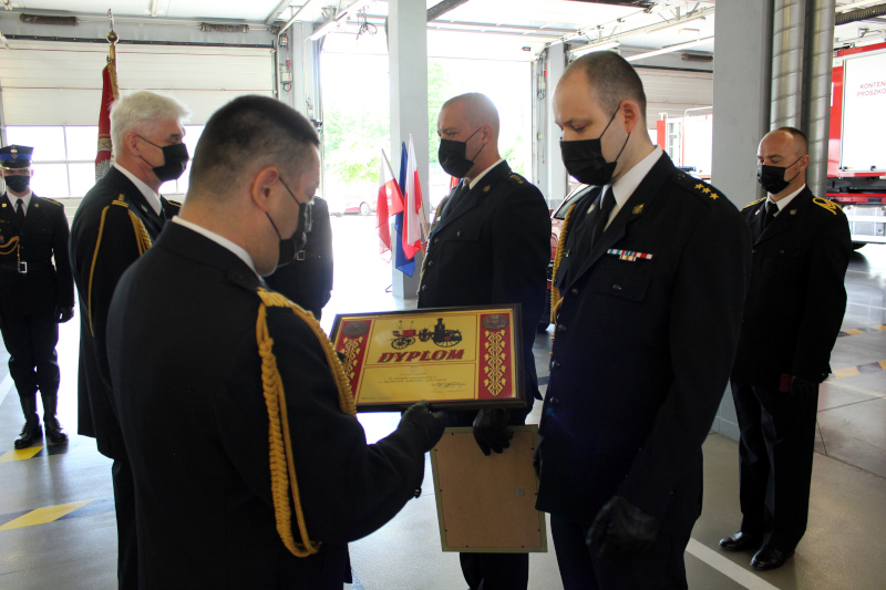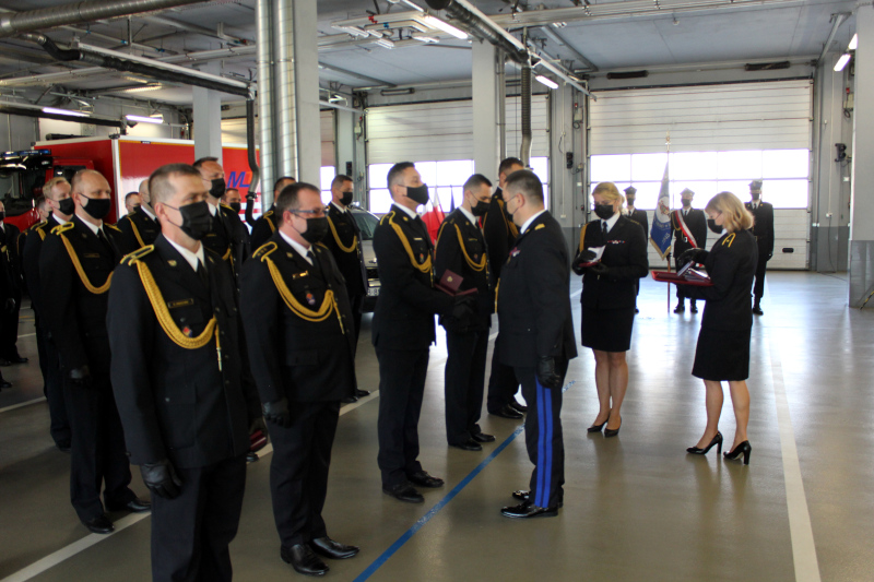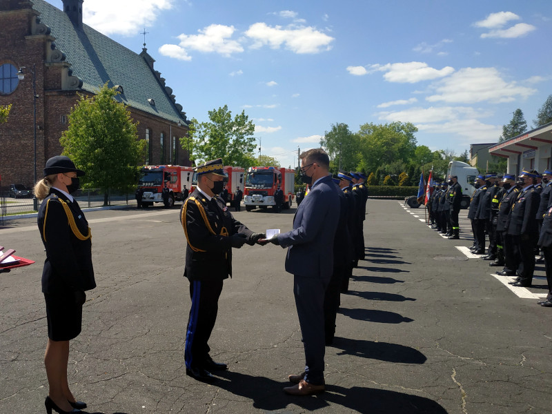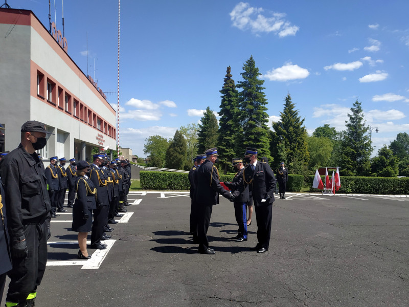 W trakcie uroczystości wręczono złote, srebrne i brązowe Medale za Długoletnią Służbę, przyznane przez Prezydenta Rzeczpospolitej Polskiej 172 funkcjonariuszom i pracownikom cywilnym. 21 strażaków odznaczono złotymi srebrnymi oraz brązowymi Odznakami „Zasłużony dla Ochrony Przeciwpożarowej". Do wyższych stopni służbowych awansowano 21 oficerów, 22 aspirantów i 80 podoficerów. Za wzorową postawę i wysokie osiągnięcia w realizacji zadań służbowych Dyplomem Komendanta Głównego Państwowej Straży Pożarnej wyróżniono 5 funkcjonariuszy. Odznaczenia, awanse na wyższe stopnie służbowe oraz dyplomy wręczył Śląski Komendant Wojewódzki PSP nadbryg. Jacek Kleszczewski.