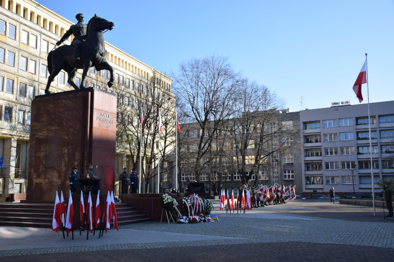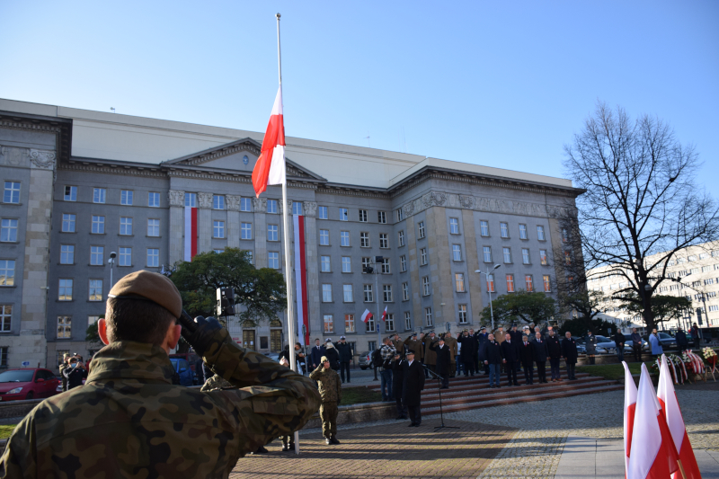 Uroczystości związane z obchodami Narodowego Święta Niepodległości rozpoczęły się na Placu Bolesława Chrobrego w Katowicach, gdzie po podniesieniu flagi państwowej i odegraniu hymnu, odczytano apel pamięci i oddano salwę honorową.