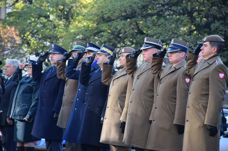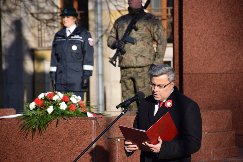 Okolicznościowe przemówienie wygłosił Wojewoda Śląski Pan Jarosław Wieczorek – „… Po wielu latach niewoli, 11 listopada 1918 roku, prysły kordony i nadeszła upragniona wolność. O tę niepodległość walczyły całe pokolenia Polaków. (…) W dniu obchodów Święta Niepodległości wyrażamy wdzięczność i szacunek wobec wszystkich bohaterów, dzięki którym dzisiaj możemy żyć w wolnym kraju i cieszyć się Polską Niepodległą. (…) Niech to Nasze wspólne świętowanie będzie hołdem złożonym wszystkim tym, którzy walczyli w imię Polski Niepodległej. …”.