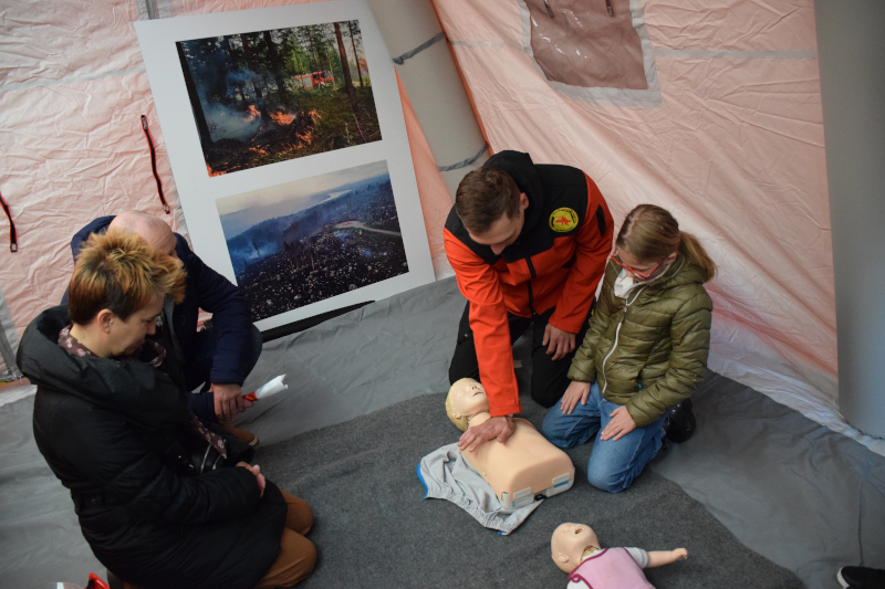 Specjalistyczna grupa ratownictwa wysokościowego zaprezentowała używane przez nią pojazdy, pokaz ratownictwa wysokościowego oraz sprzętu używanego w akcjach ratowniczych z wykorzystaniem technik alpinistycznych. W namiocie strażacy - ratownicy medyczni na fantomach szkolili dzieci i dorosłych z zakresu udzielania pierwszej pomocy.