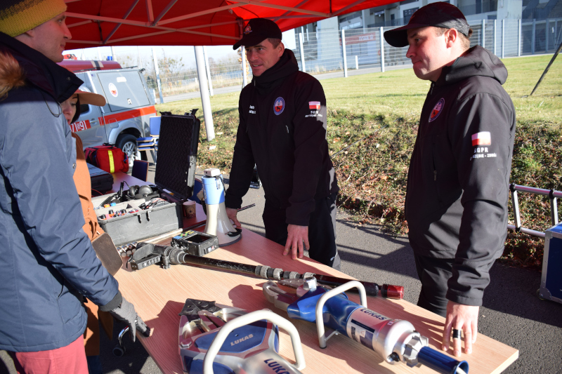 Kolejną atrakcją były także psy ze specjalistycznej grupy poszukiwawczo-ratowniczej, geofon i kamera wziernikowa - sprzęt używany do lokalizacji ludzi zasypanych w gruzowiskach oraz tachimetr do sprawdzania stabilności konstrukcji budynku.