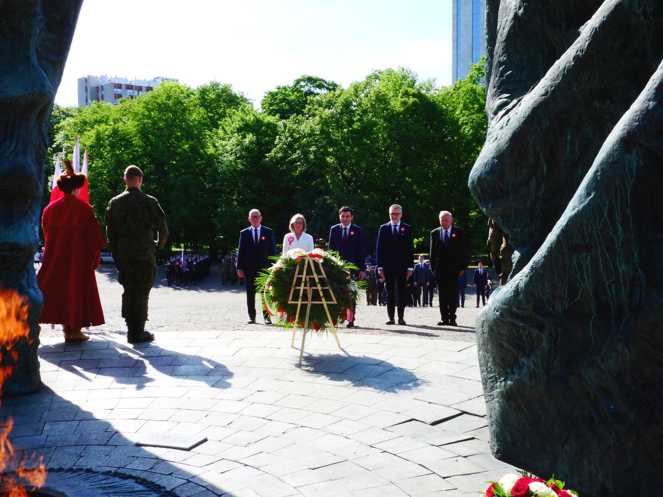 Następnie okolicznościowe przemówienie wygłosił Wojewoda Śląski Pan Marek Wójcik - "...Nowatorstwo Konstytucji 3 Maja doprowadziło do tego, że wiele pokoleń Polaków budowało swoją tożsamość narodową w oparciu o pamięć o tym wielkim dziele Sejmu Czteroletniego. Konstytucja stała się mitem założycielskim dla nowoczesnego państwa polskiego – powiedział Wojewoda Marek Wójcik. – Dziś oddajemy hołd również bohaterom III Powstania Śląskiego, naszym przodkom, którzy mieli odwagę poświęcić wszystko i walczyć o swoje marzenie, marzenie o Polsce..."– podkreślił wojewoda.