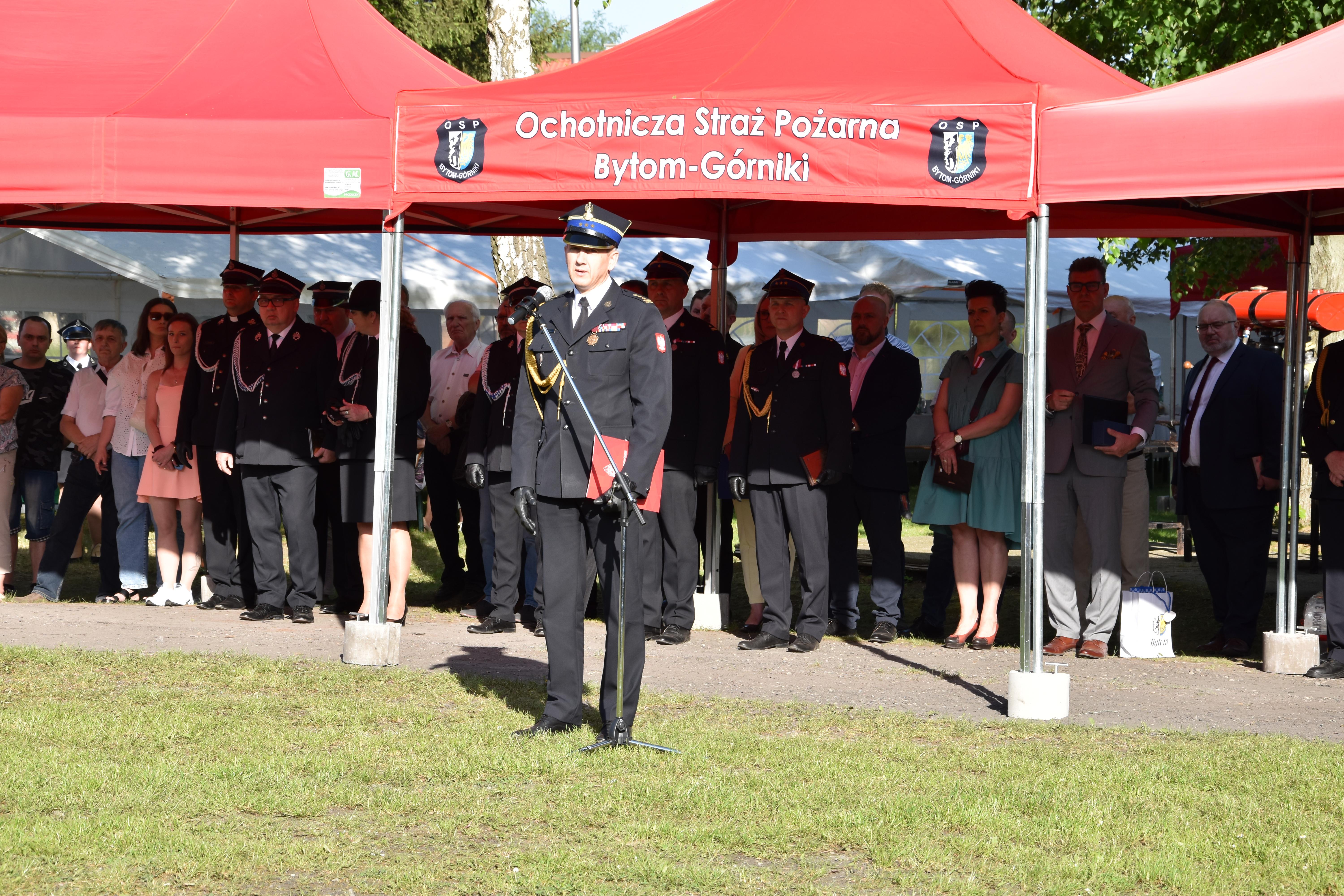 Uroczystość poprowadził Prezes OSP Bytom - Górniki dh Mateusz Ciuraj, który powitał przybyłych na uroczystość gości, a następnie przedstawił dzieje OSP Bytom – Górniki, w formie krótkiego rysu historycznego.