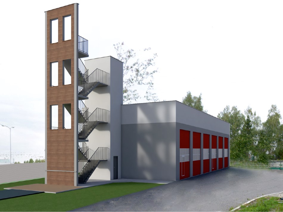 W ramach inwestycji wykonano między innymi rozbiórkę nieczynnej stacji paliw oraz budynku agregatu, w miejsce których powstał budynek garażu z 6 stanowiskami i suszarnią węży a także wspinalnią zewnętrzną, otwartą klatką schodową oraz instalacjami wewnętrznymi i zewnętrznymi.