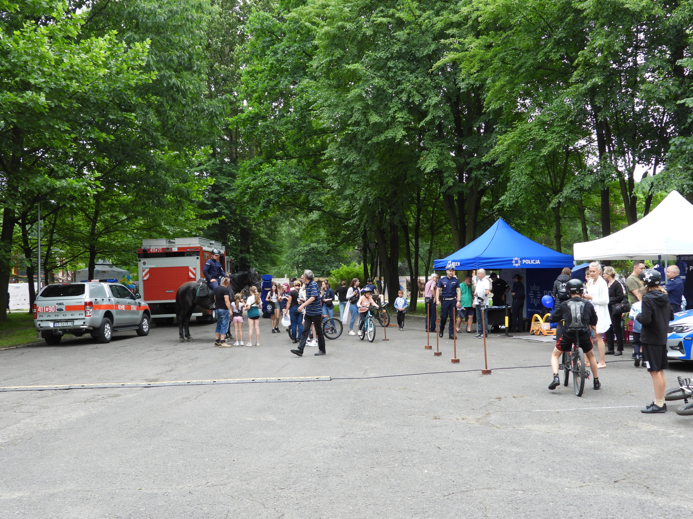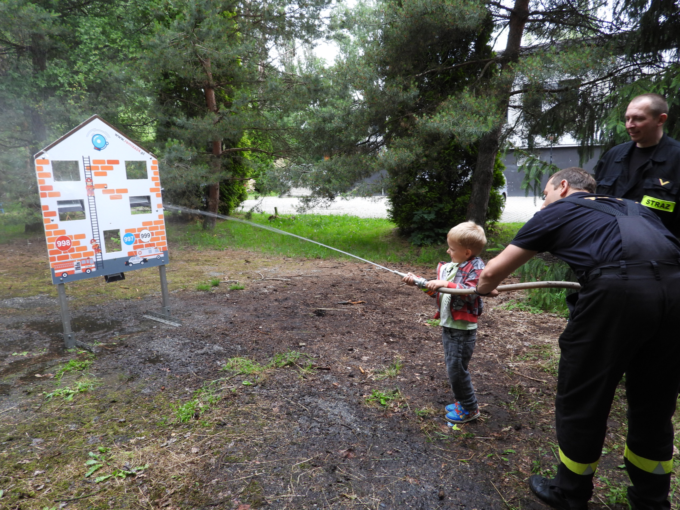 Na pikniku nie zabrakło też stanowisk, gdzie najmłodsi mieli możliwość sprawdzenia swoich „strażackich” umiejętności w formie zabawy: kolejki tyrolskiej oraz przejścia po elastycznej linie (slacline), przygotowanych przez strażaków z Komendy Powiatowej PSP w Tarnowskich Górach, a także domku z ognikami, które dzieci strącały przy pomocy wody z hydronetki. Przez cały czas trwania pikniku jego uczestnikom towarzyszyła maskotka straży pożarnej Pies-Żarek.