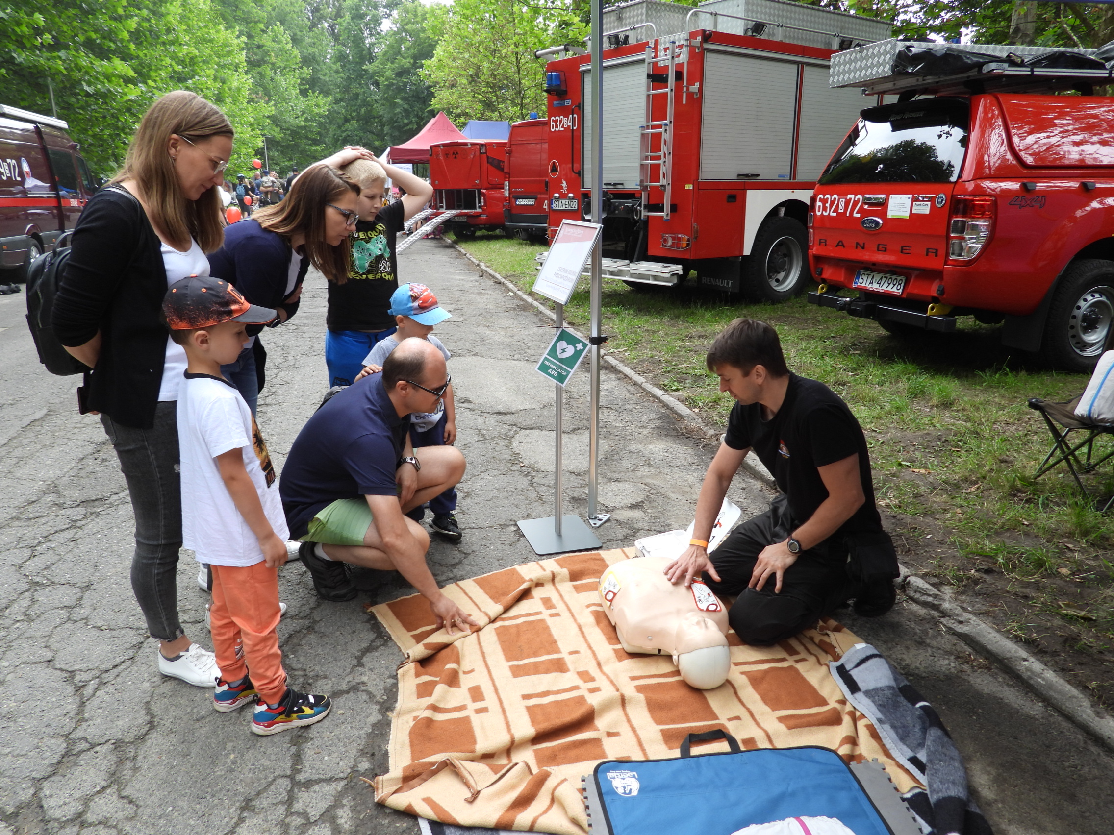 Oprócz pokazów, które cieszyły się dużym zainteresowaniem uczestników pikniku Państwowa Straż Pożarna przygotowała również stoiska tematyczne. Stanowisko interaktywne z profilaktyki i edukacji społecznej Komendy Wojewódzkiej PSP w Katowicach oraz Centrum Edukacji Przeciwpożarowej Komendy Miejskiej PSP w Chorzowie, ze stanowiskiem ratownictwa medycznego, gdzie każdy z uczestników mógł nauczyć się udzielania pierwszej pomocy i samodzielnie przeprowadzić resuscytację krążeniowo-oddechową na fantomie pod okiem strażaka-ratownika, a także nauczyć się korzystania z defibratora AED. Wszyscy, którzy przeszli takie szkolenie otrzymywali pamiątkowe gadżety.