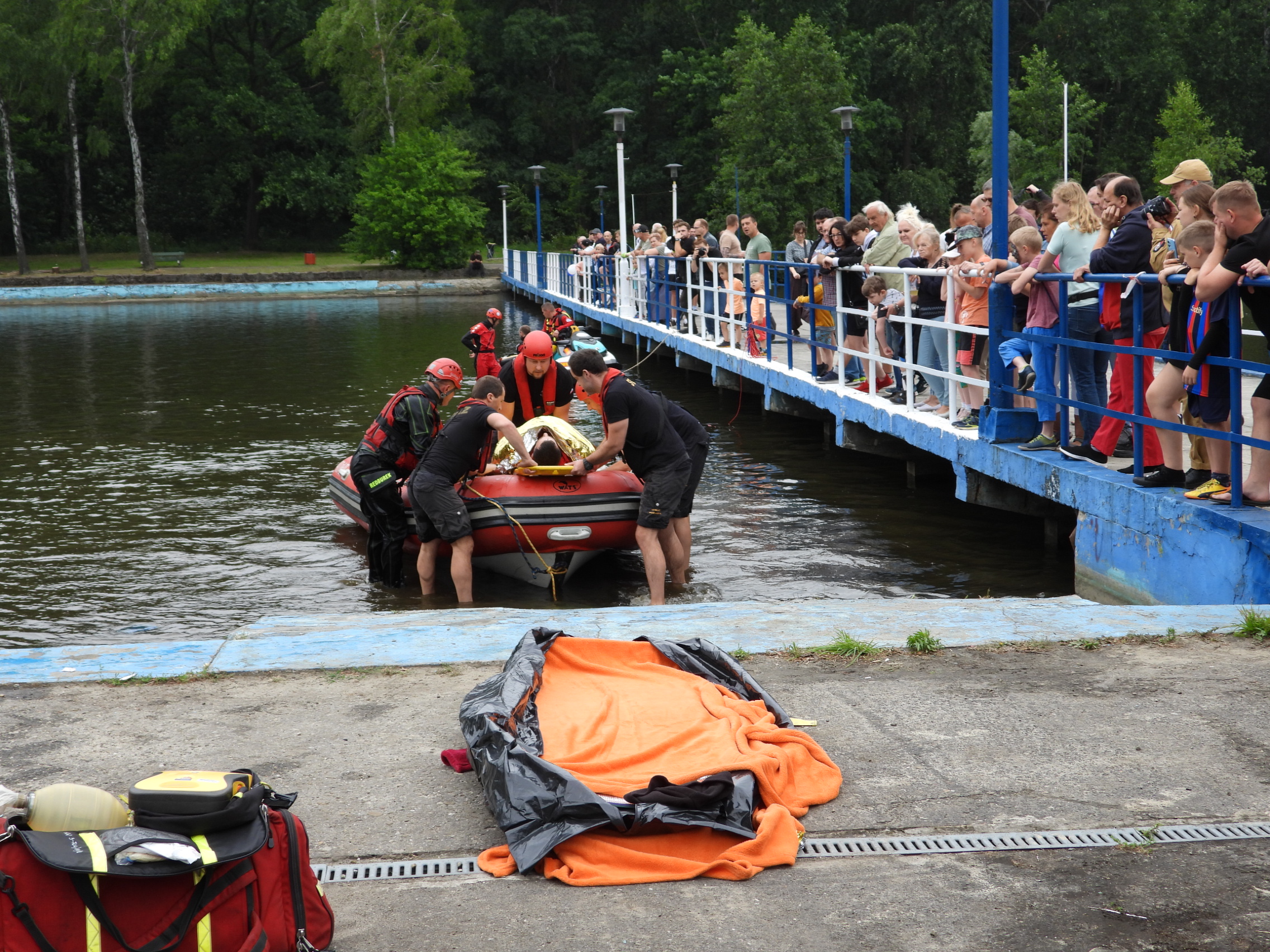 Jedną z nich były pokazy przygotowane przez specjalistyczne grupy ratownicze z jednostek PSP województwa śląskiego, prezentujące sprzęt i techniki ratownicze oraz umiejętności śląskich strażaków. Jako pierwsza, pokaz przeprowadziła specjalistyczna grupa ratownictwa wodno – nurkowego z Komendy Miejskiej PSP w Bytomiu, prezentująca sprzęt oraz techniki podejmowania osób z wody. Następnie specjalistyczna grupa ratownictwa wysokościowego z Komendy Powiatowej PSP w Tarnowskich Górach, w widowiskowy sposób zaprezentowała pokaz technik alpinistycznych - zjazd na linie z kosza samochodu specjalnego z podnośnikiem hydraulicznym Bronto Skylift z Komendy Miejskiej PSP w Chorzowie. Jest to najwyższy podnośnik w województwie - o wysokości ratowniczej 68 metrów.
