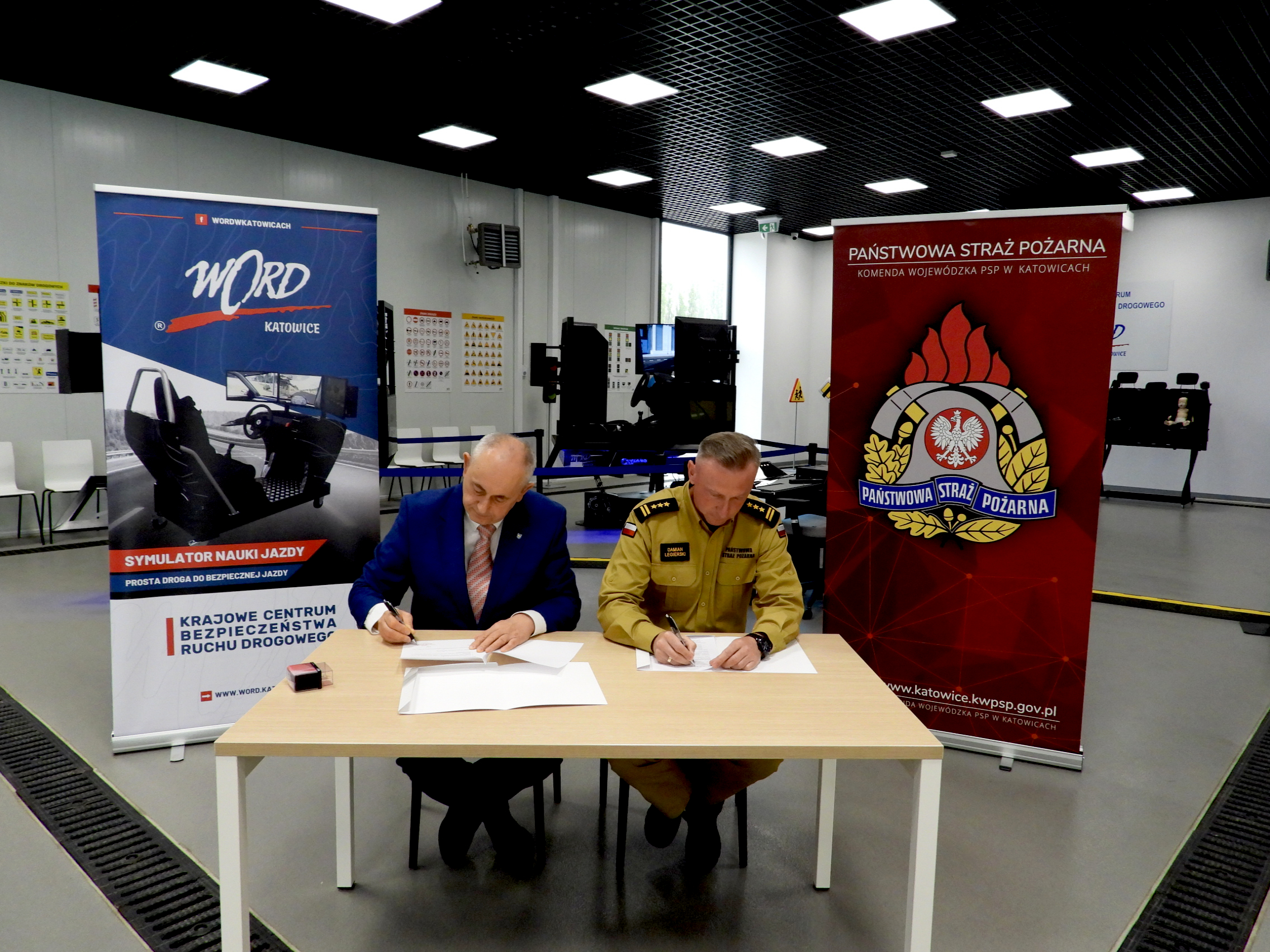 Porozumienie o współpracy pomiędzy Komendą Wojewódzka PSP w Katowicach a Wojewódzkim Ośrodkiem Ruchu Drogowego w Katowicach